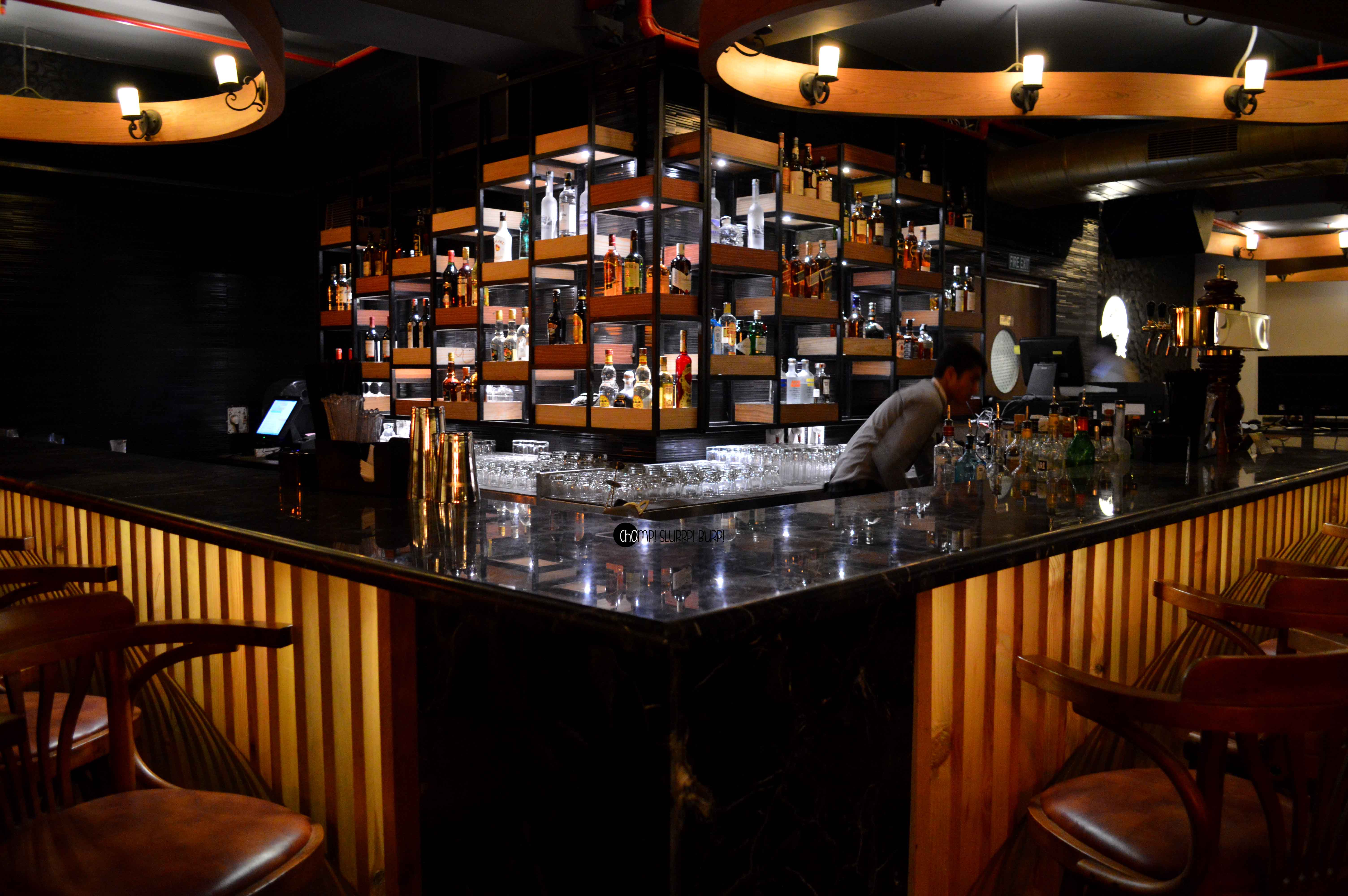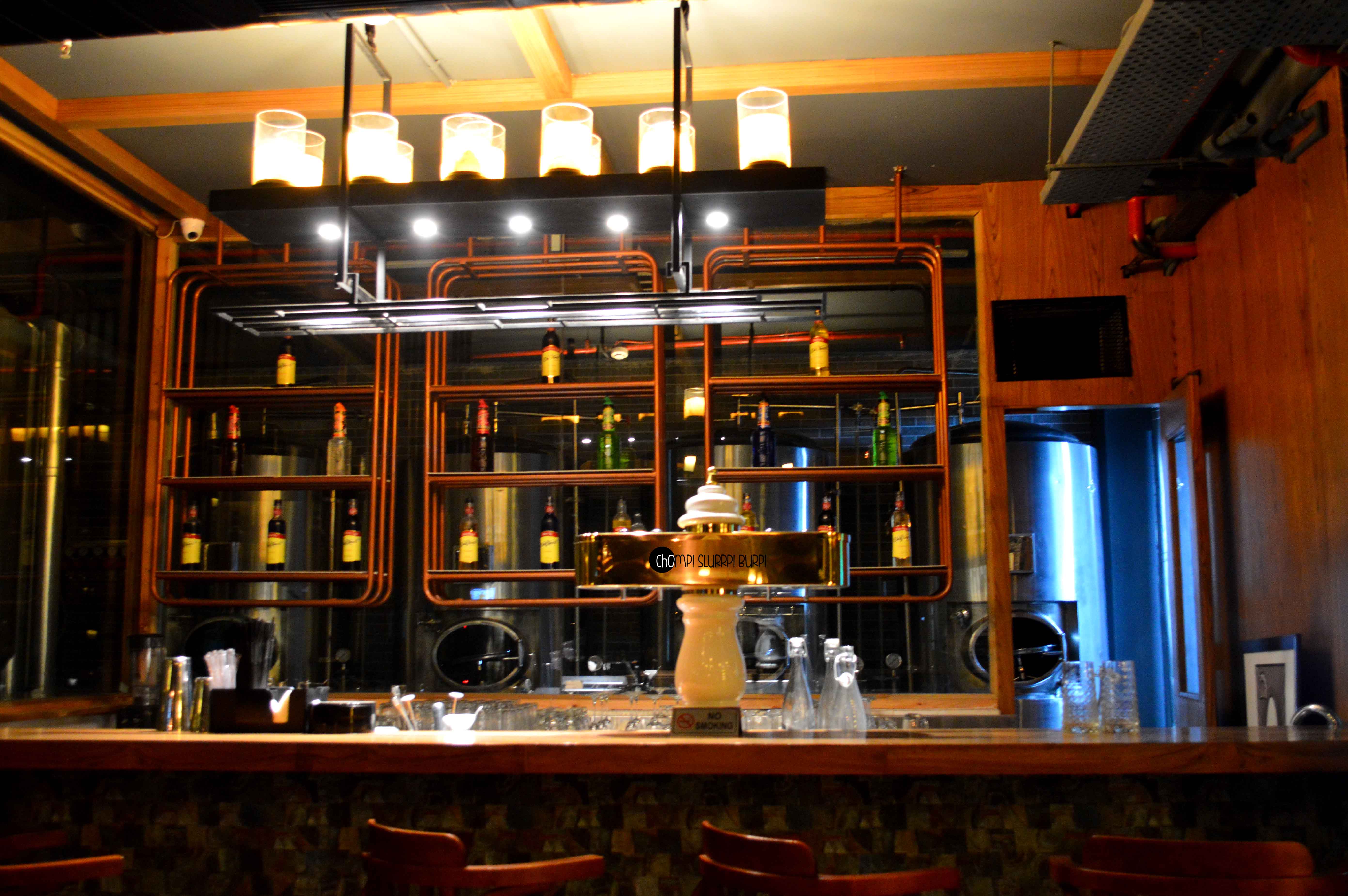 A standalone located away from the bustle and gaggle of the Sector 29 main market. Although built on similar lines housing a brewery, After Stories differs with its quaint location, beautiful open seating and a sense of luxurious swagger. Plush leather couches, textured walls, dim lighting and a magnificent bar. The center piece that runs through the floors is vaguely reminiscent of a giant candle holder.