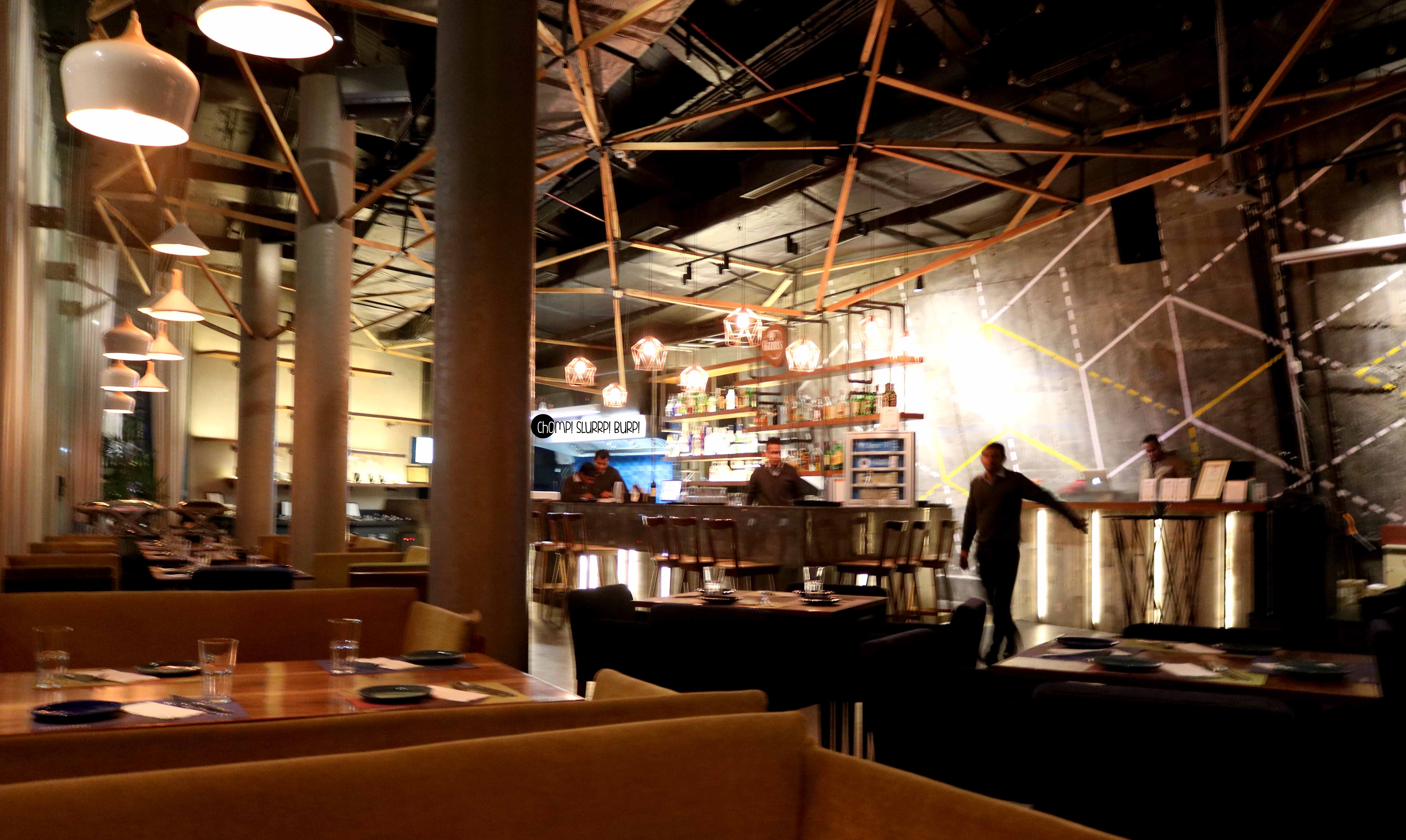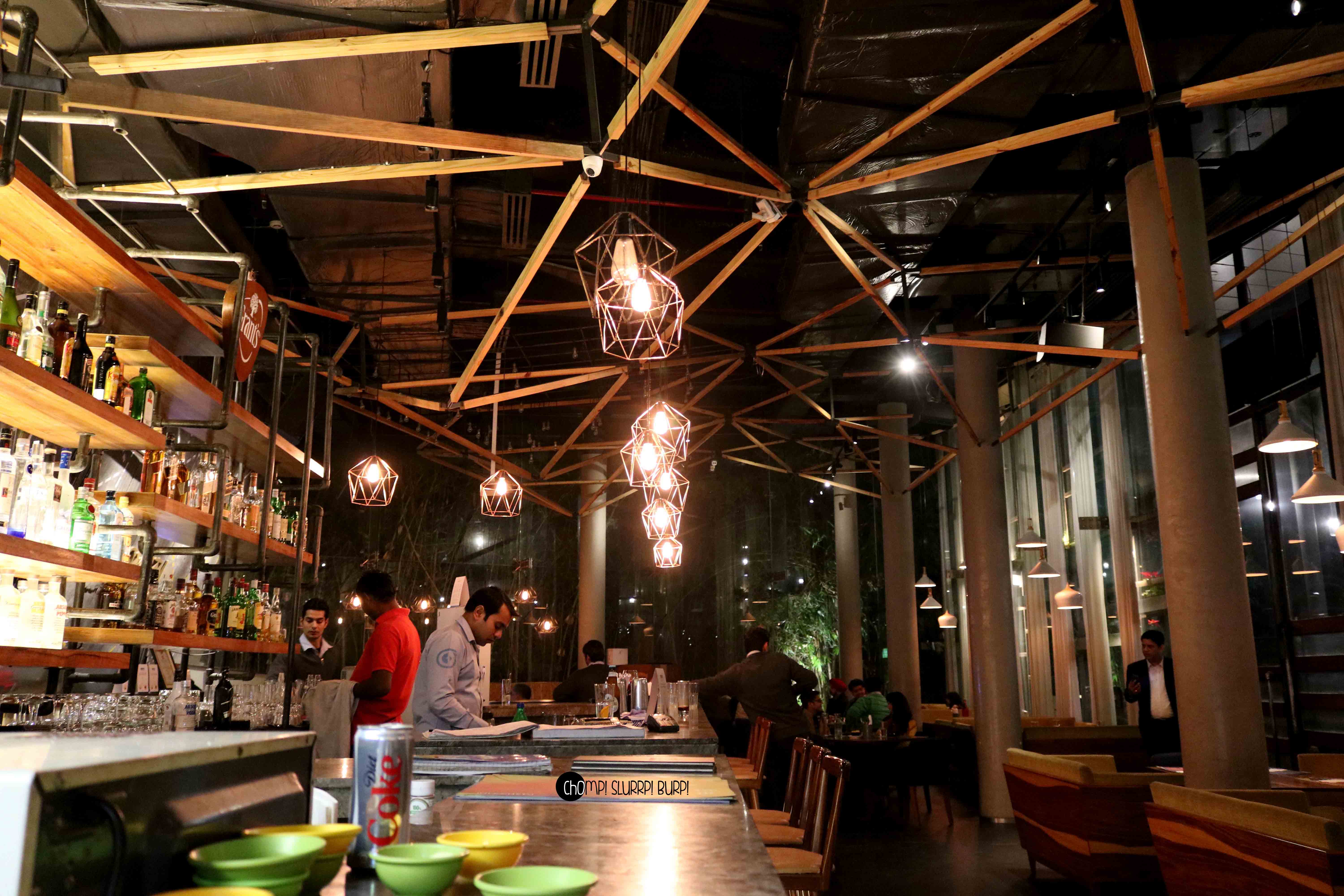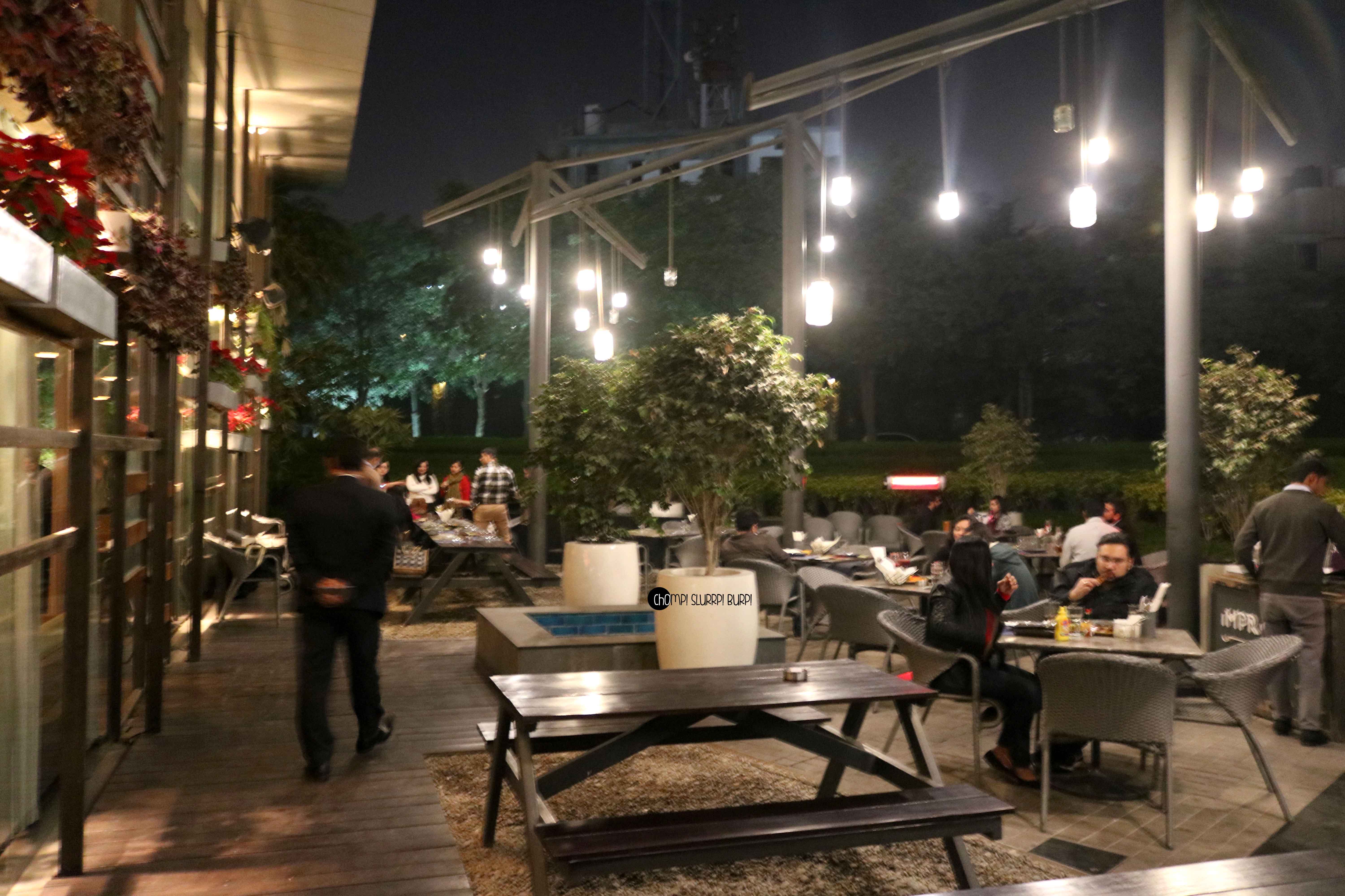 Tucked away in the midst of skyscrapers, corporate offices and mounds of cement is a hidden gem of a place – IMPROMPTU – with a smashing outdoor seating area and a lavish insides. A very rustic themed place with bunker lunch tables and intermingling light fixtures outside and the inside with plush couches, toned down lighting and the big glass walls and gorgeous greens adding to the decor.