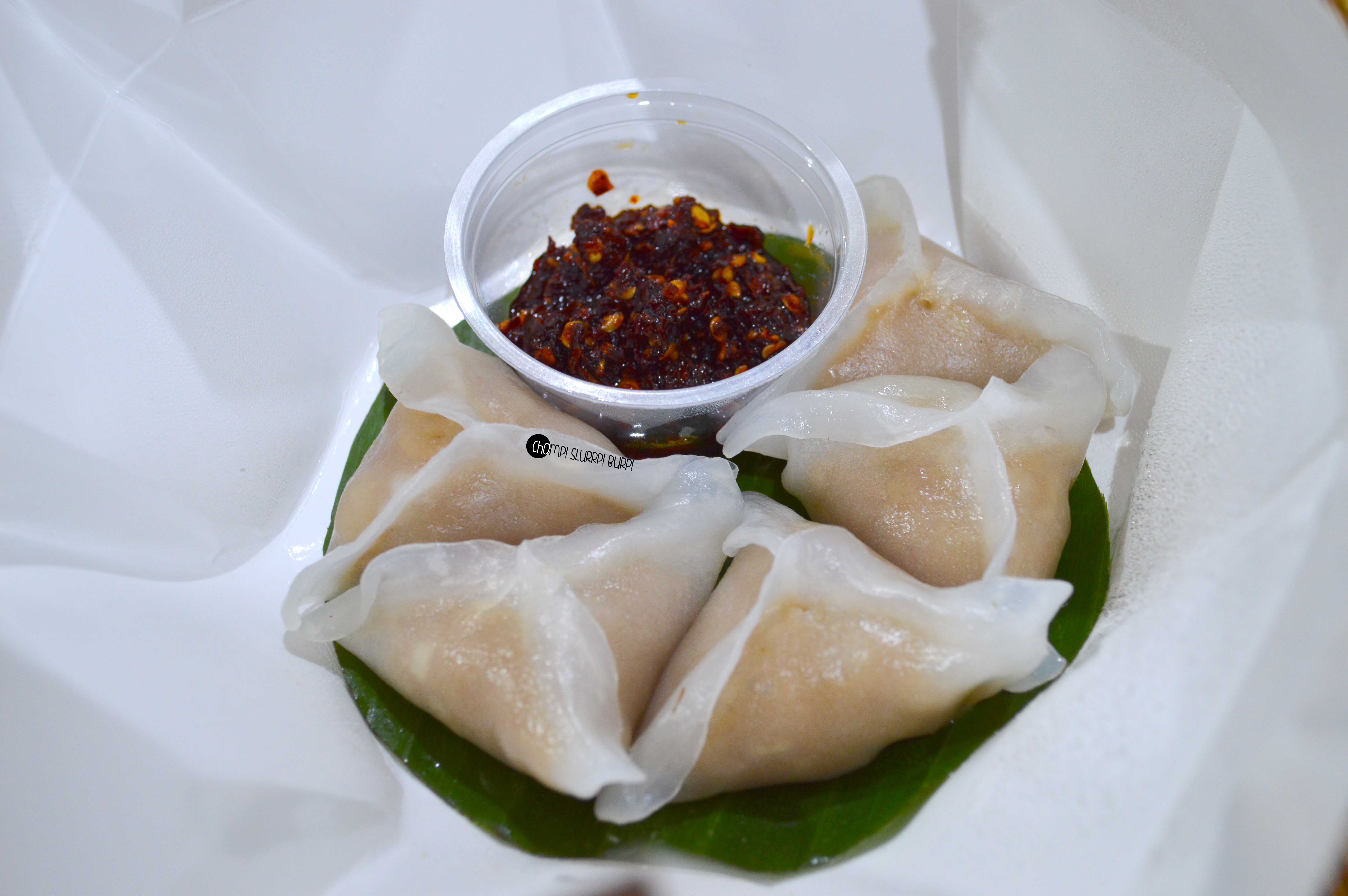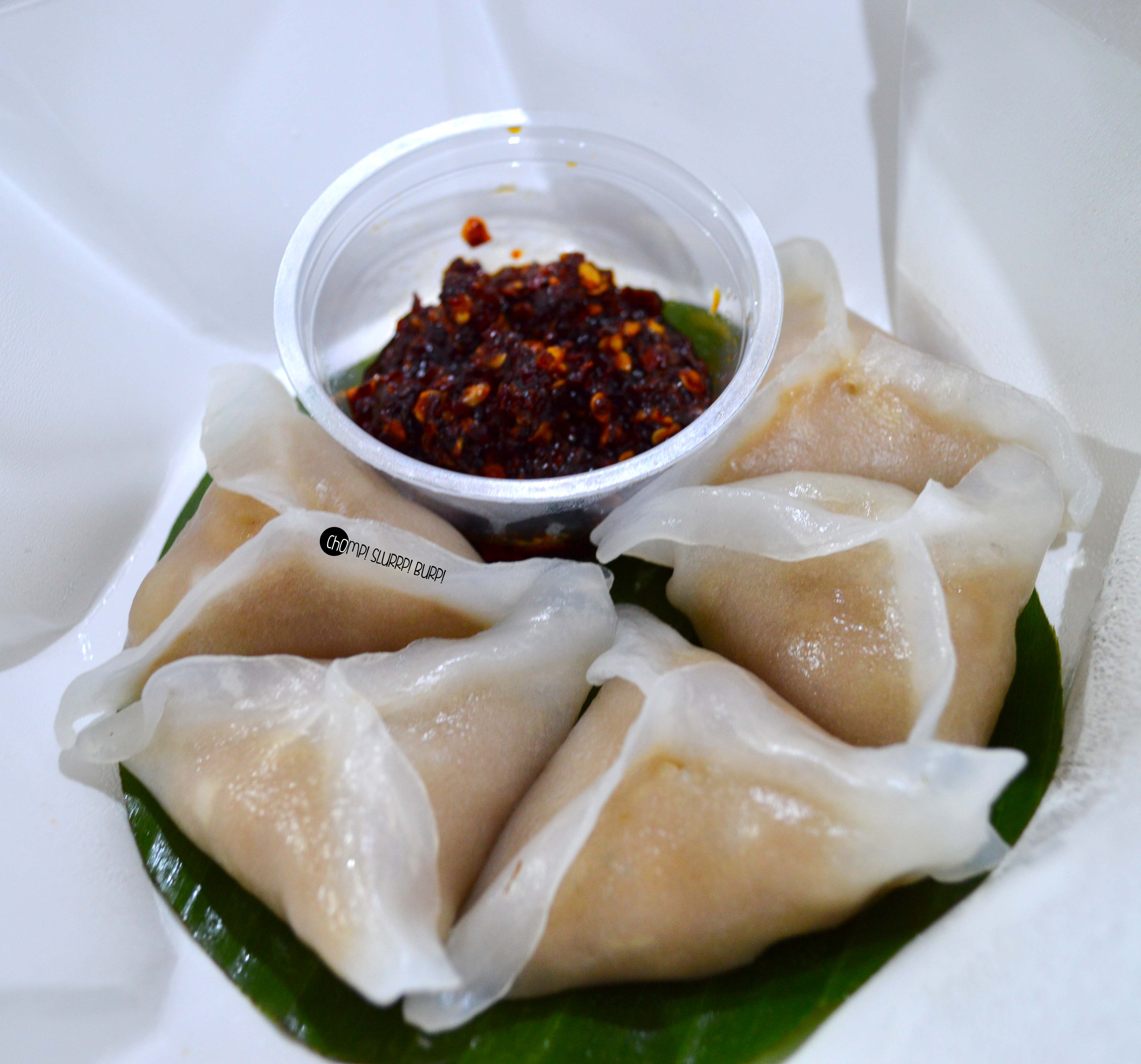 Chicken scallion dumplings – this was by far the fanciest dumpling packaging I have ever come across – translucent, slightly sticky skin stuffed with minced chicken. Team it up with the burnt garlic dip and oh, heaven!