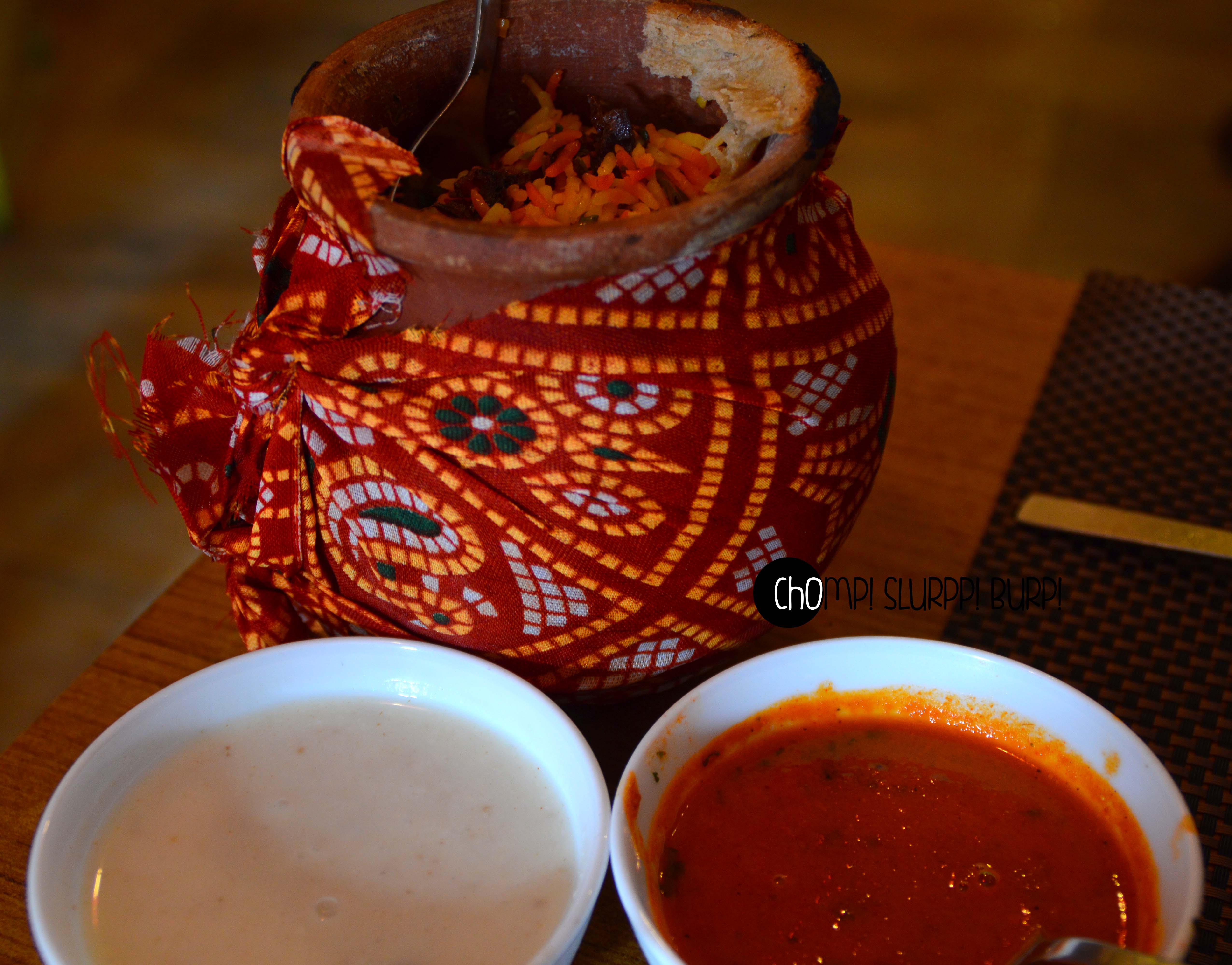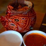 Coming to the glorious biryani – it was served in an earthen pot covered with a gorgeous traditional red muslin with gravy and burrani raita. The subtle gusto of the rice slow cooked with the chicken was ambrosial. The chicken was extremely tender and succulent. The raita went very well cooling off the steaming hot biryani. The gravy however could have been slightly more spicier but never the less, you can not miss the biryani for the world!