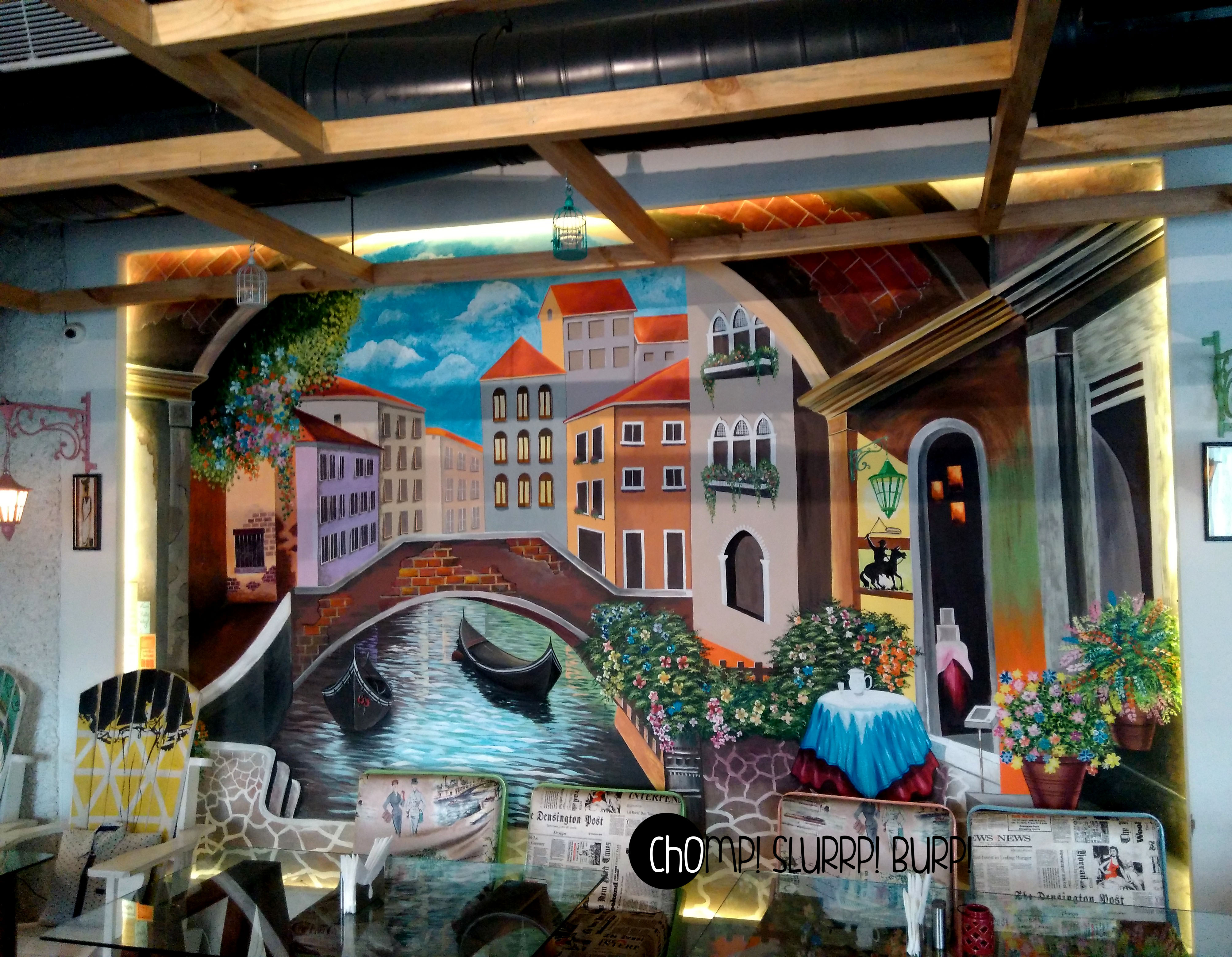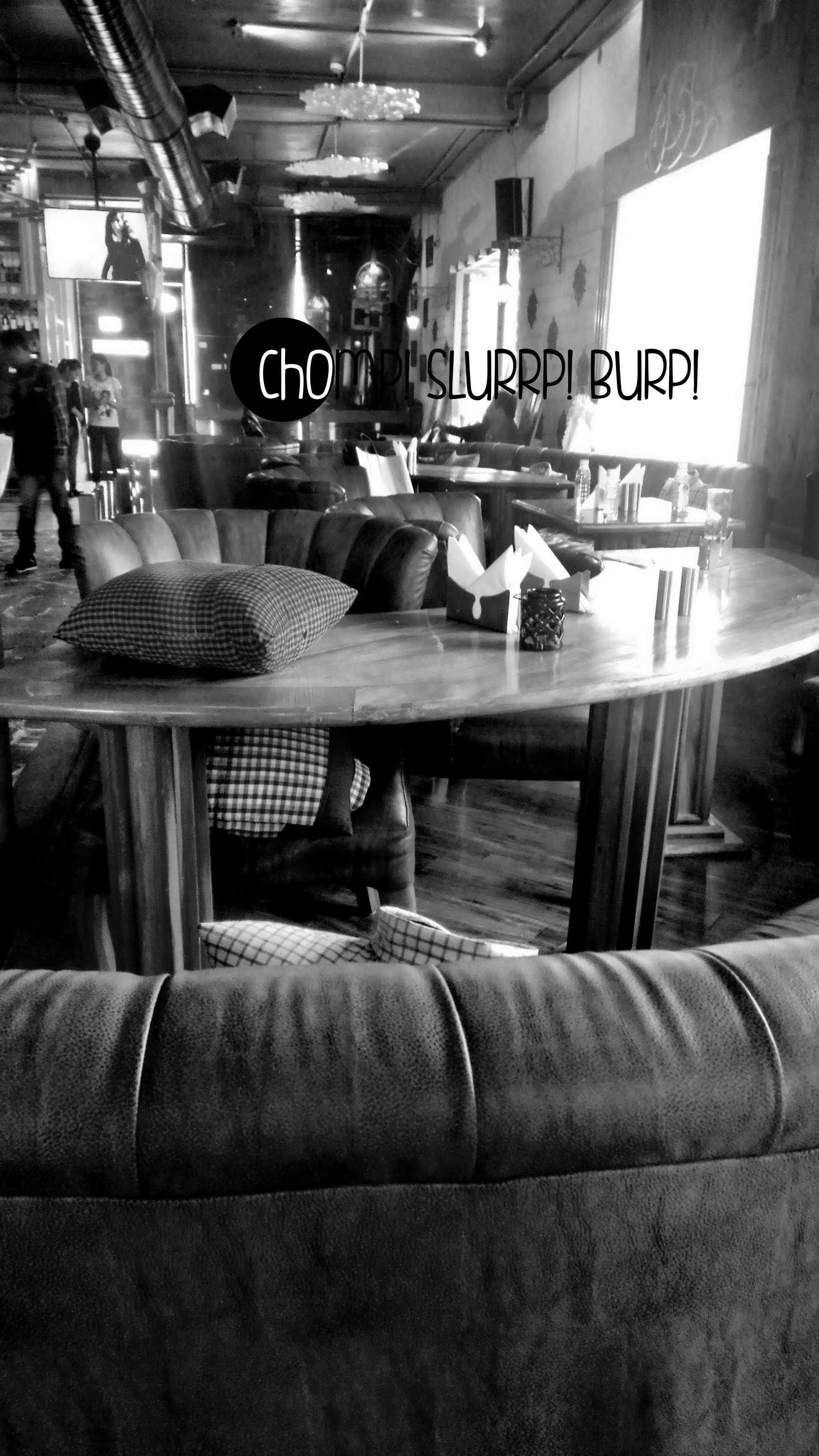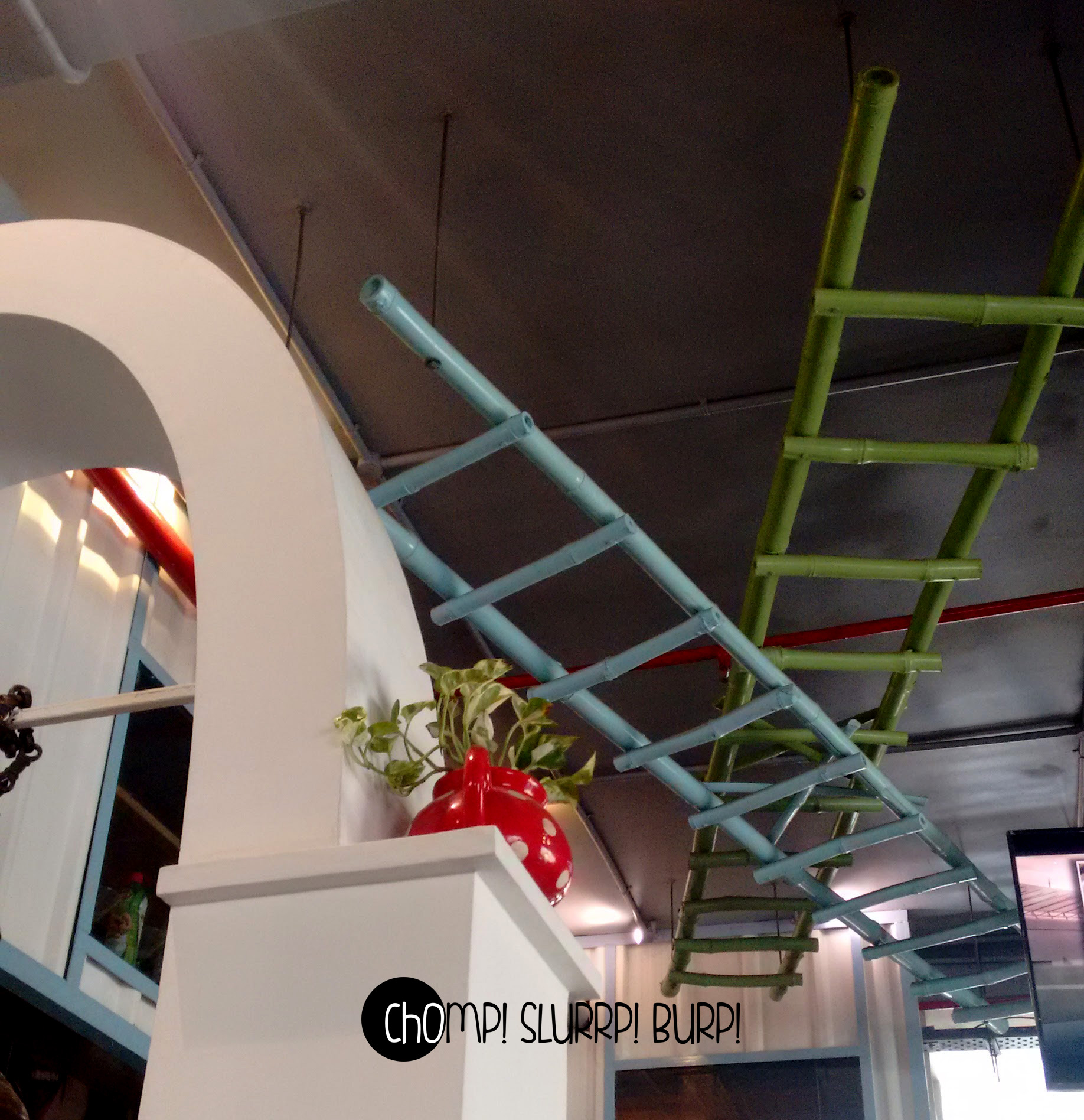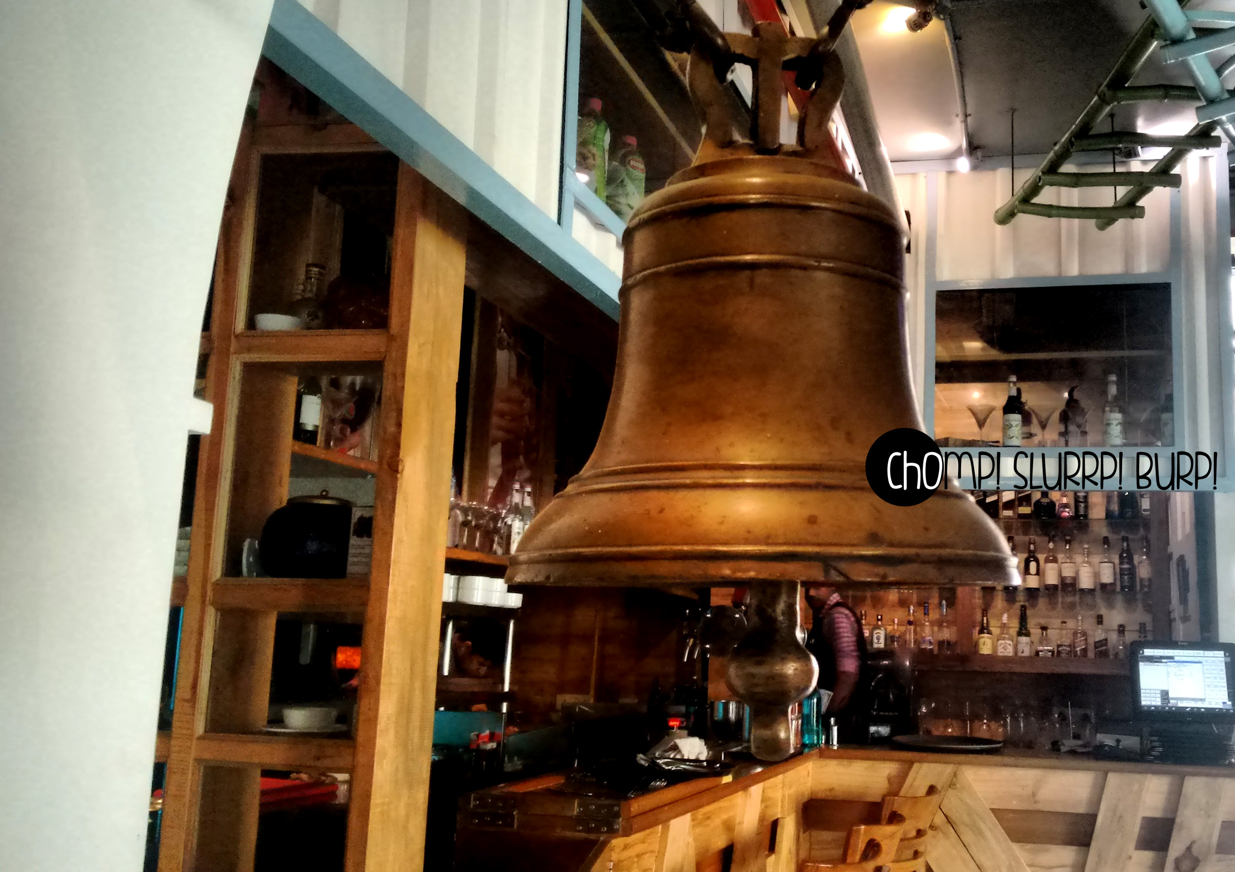 A standalone building with an eating area on the ground floor, a clubbing area in the basement and the brewery on the first floor. Towards their left, they have a garden with painted bicycles and white garden chairs. The ambiance inside is an exquisite amalgamation. Circular couches, glass top tables, chairs made up of painted suitcases with printed cushion tops. They have a glass wall with quirky quotes written in bright colours. A white textured wall holds lighted lamps. White, flowy curtains complementing this wall hang around the windows. There is a faux tree with bird cages hanging from its branches. A more interesting seating option is the cushioned canoe (which immediately made me think of that’s exactly how Joey and Chandler should have put theirs to use. :P) The place is full of interesting props and you will not have a riot spotting each one of them – my favourites – the shirt dressed cushions and the beer pong cap which reminded me of the one owned by Seeley Booth from popular TV show, BONES.