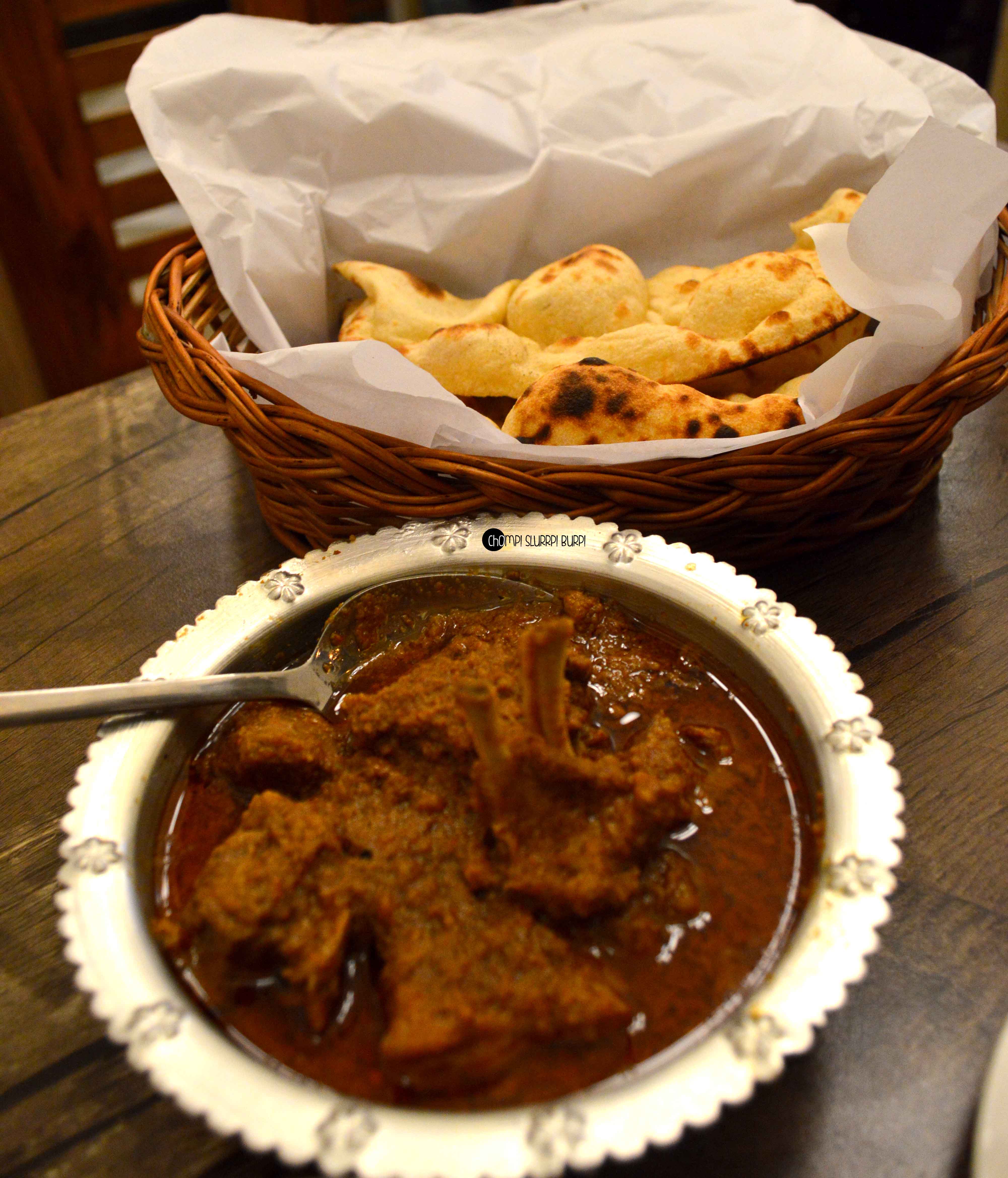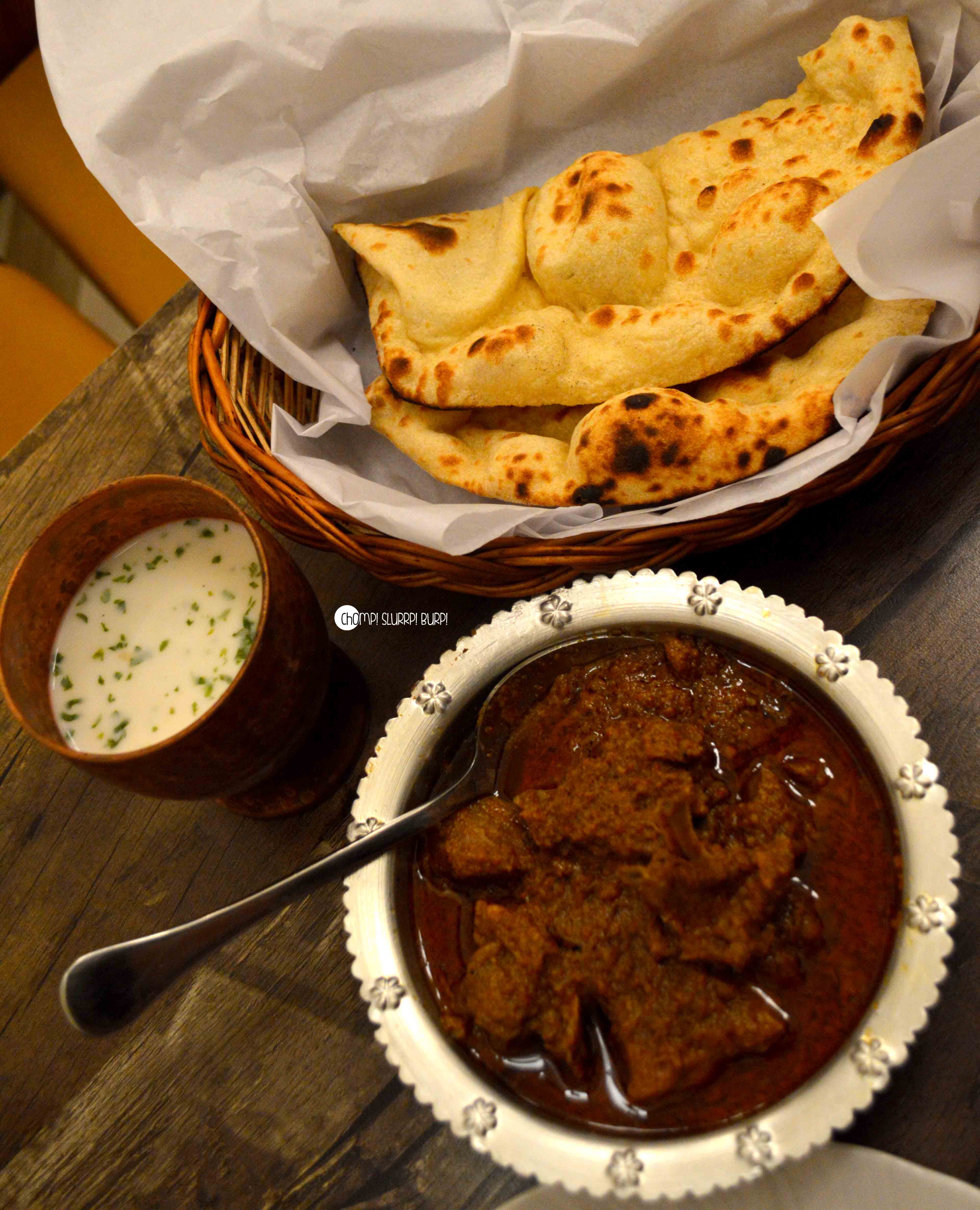 Mutton biryani is one of the most crafty preparations – made differently in all the different regions – I myself prefer the subtle flavored Awadhi/Lucknowi biryani vis-a-vis the more power packed Hyderabadi biryani. This one was laced with rose water and kewra and cooked with mutton chunks on dum. Served with the cool burrani raita, which added to the flavors.