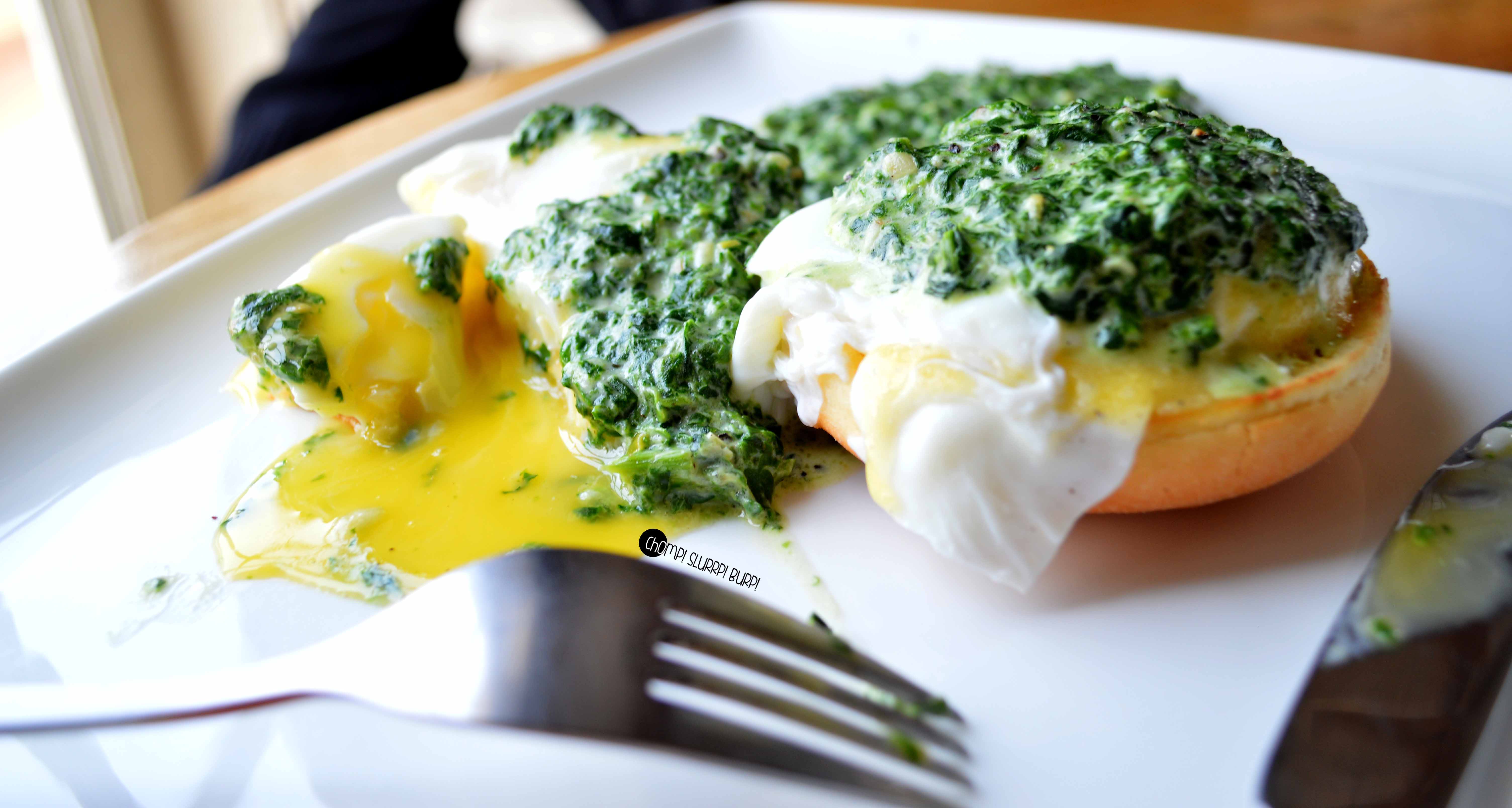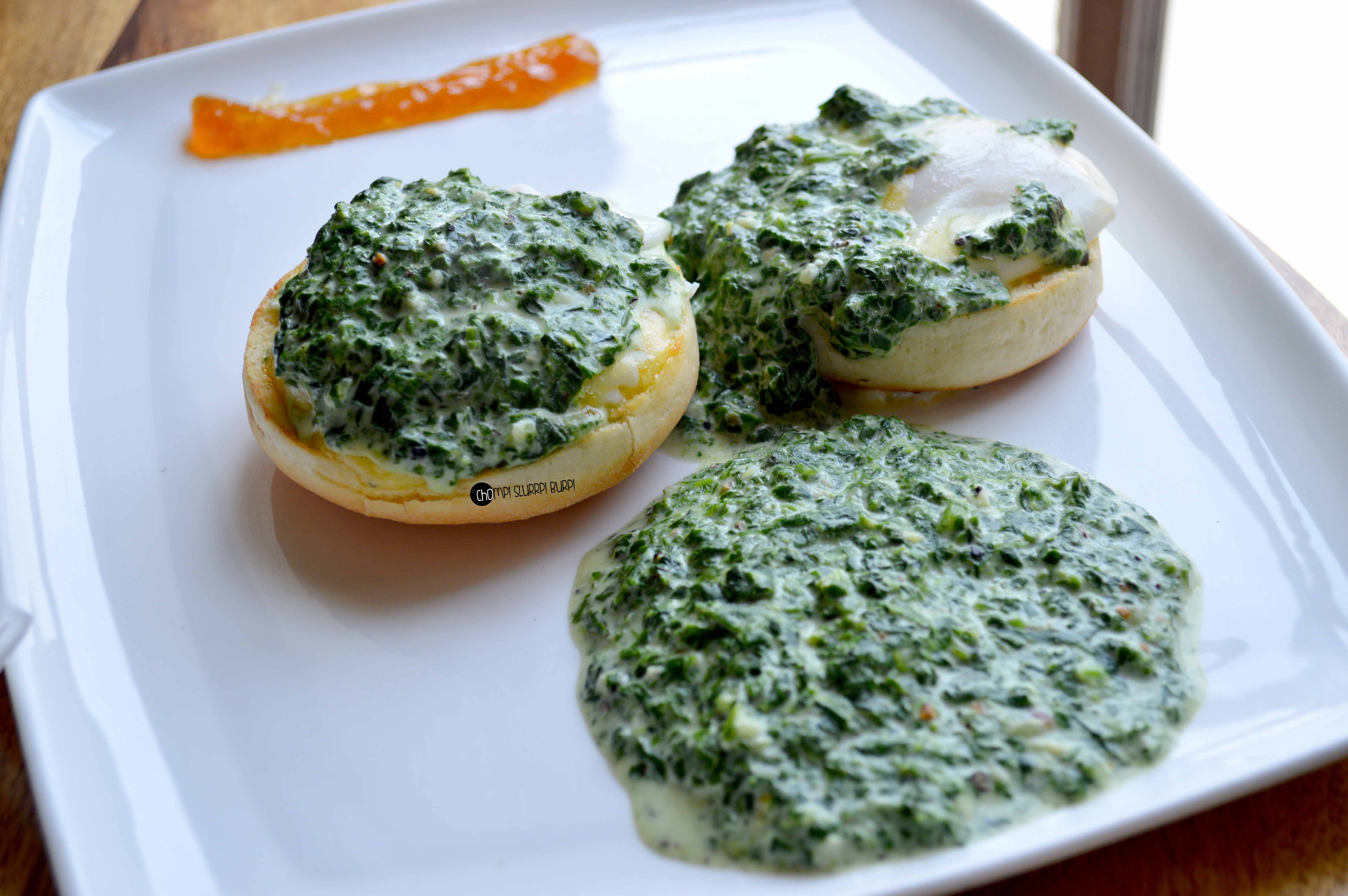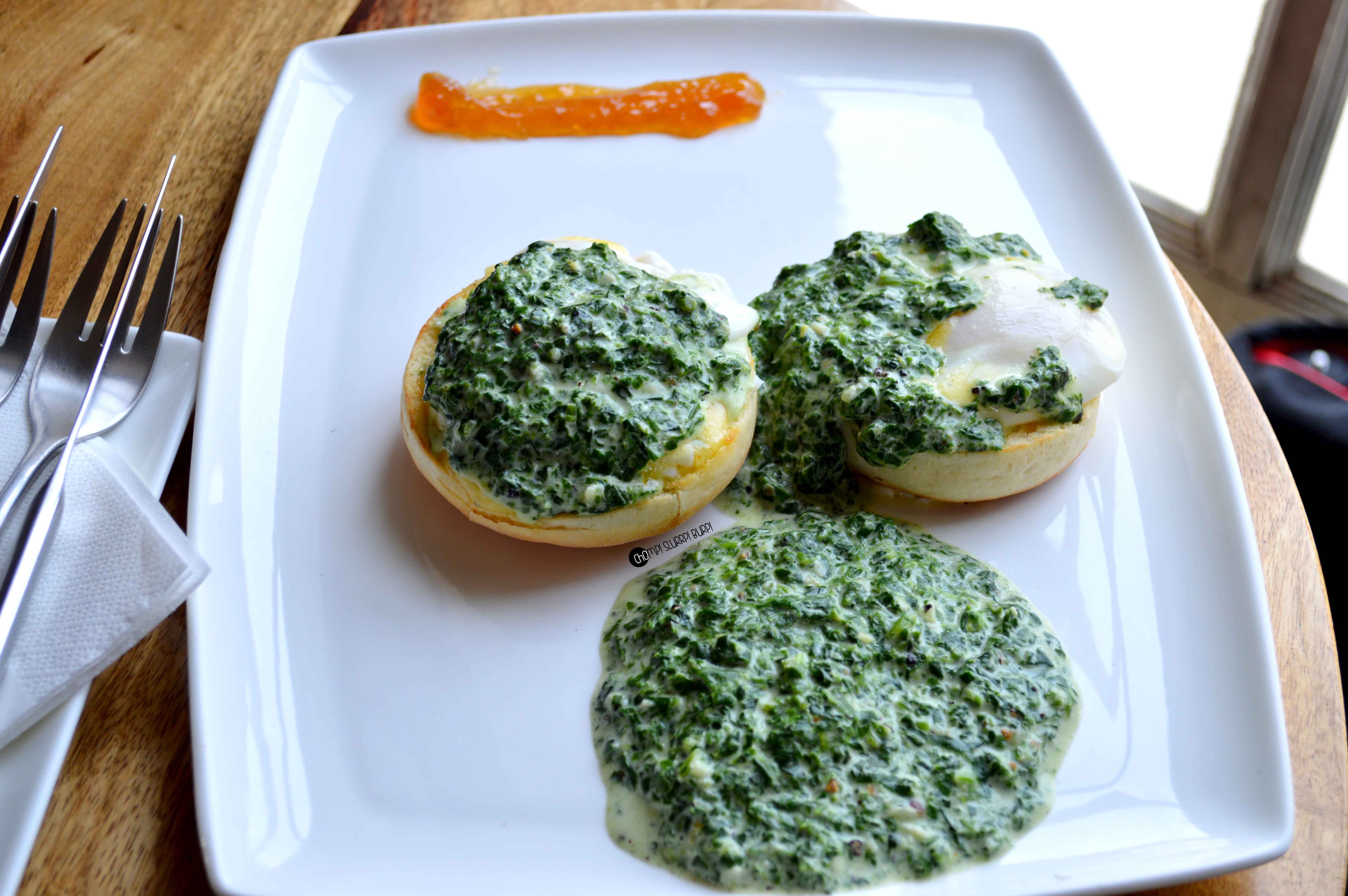 Pieters Eggs Benedict with creamed spinach and hollandaise. Poached eggs on a breakfast muffin, topped generously with creamed spinach and hollandaise sauce with creamed spinach on the side and orange marmalade. The creamed spinach surprisingly enough was such an addictive flavor that one bite just wouldn’t suffice. The eggs were a tad on the runny side but a marvellous preparation over all.