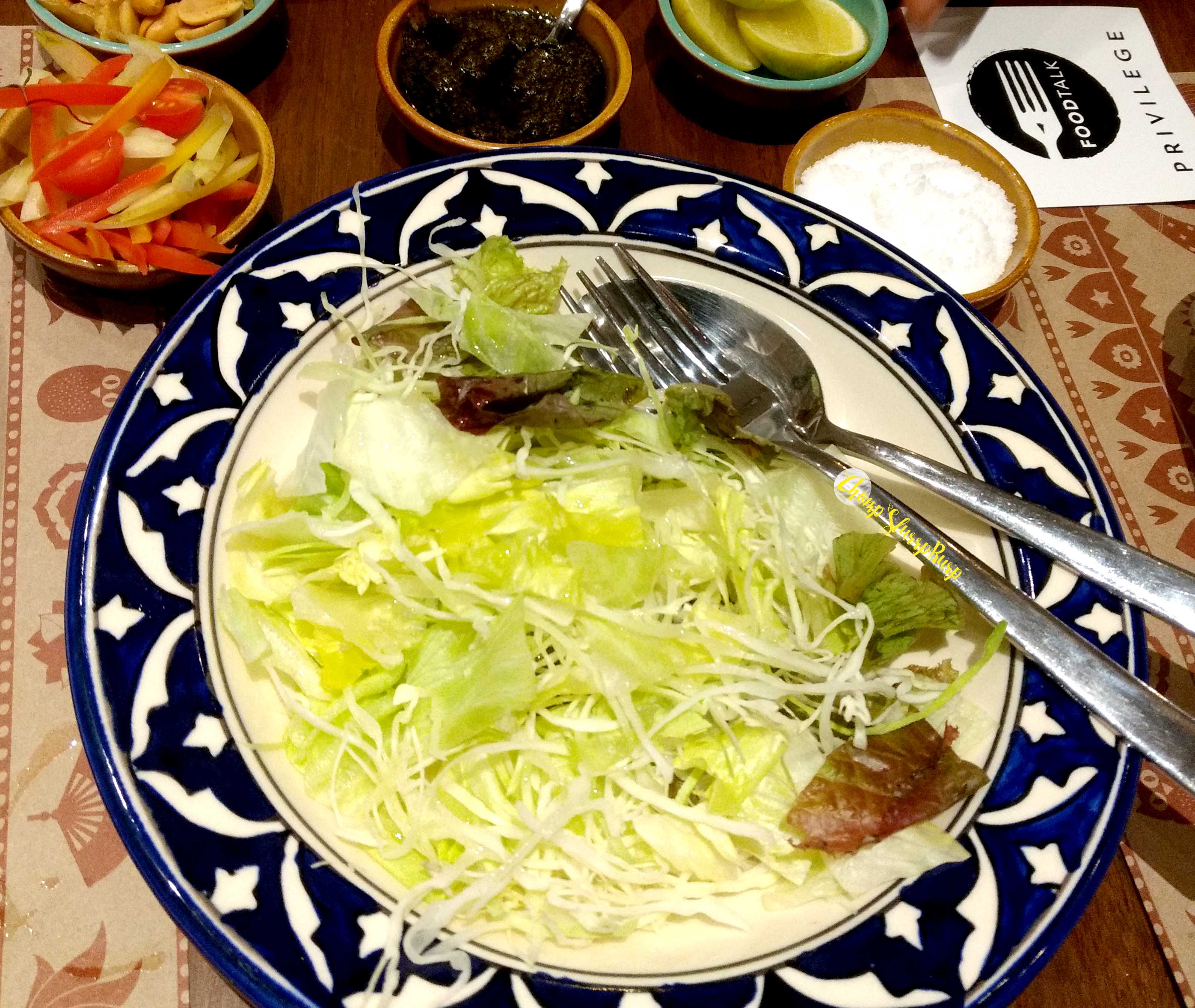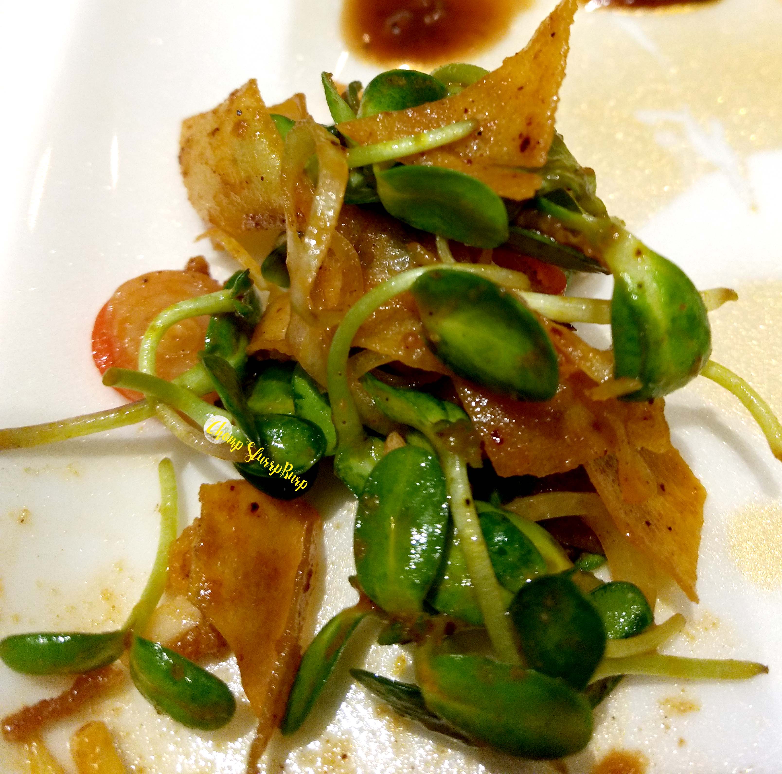 The tasting menu carefully spanned over salads, appetizers, lots of versions of their incredible Khow Suey preparations and desserts. We started with a sunflower leaves salad with crispy wheat flakes and a tea leaf DIY salad which comes with a variety of condiments and a fresh tea leaf paste.