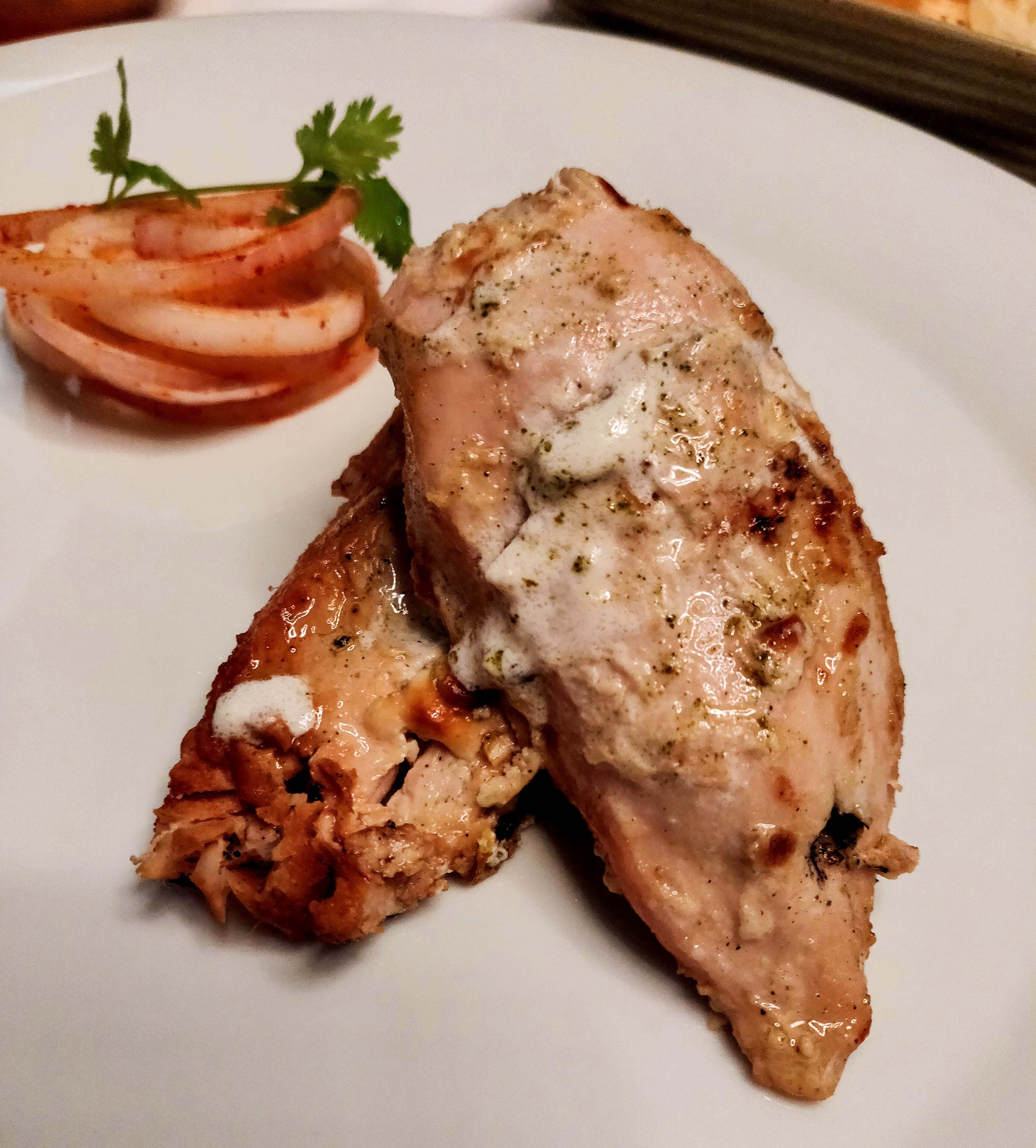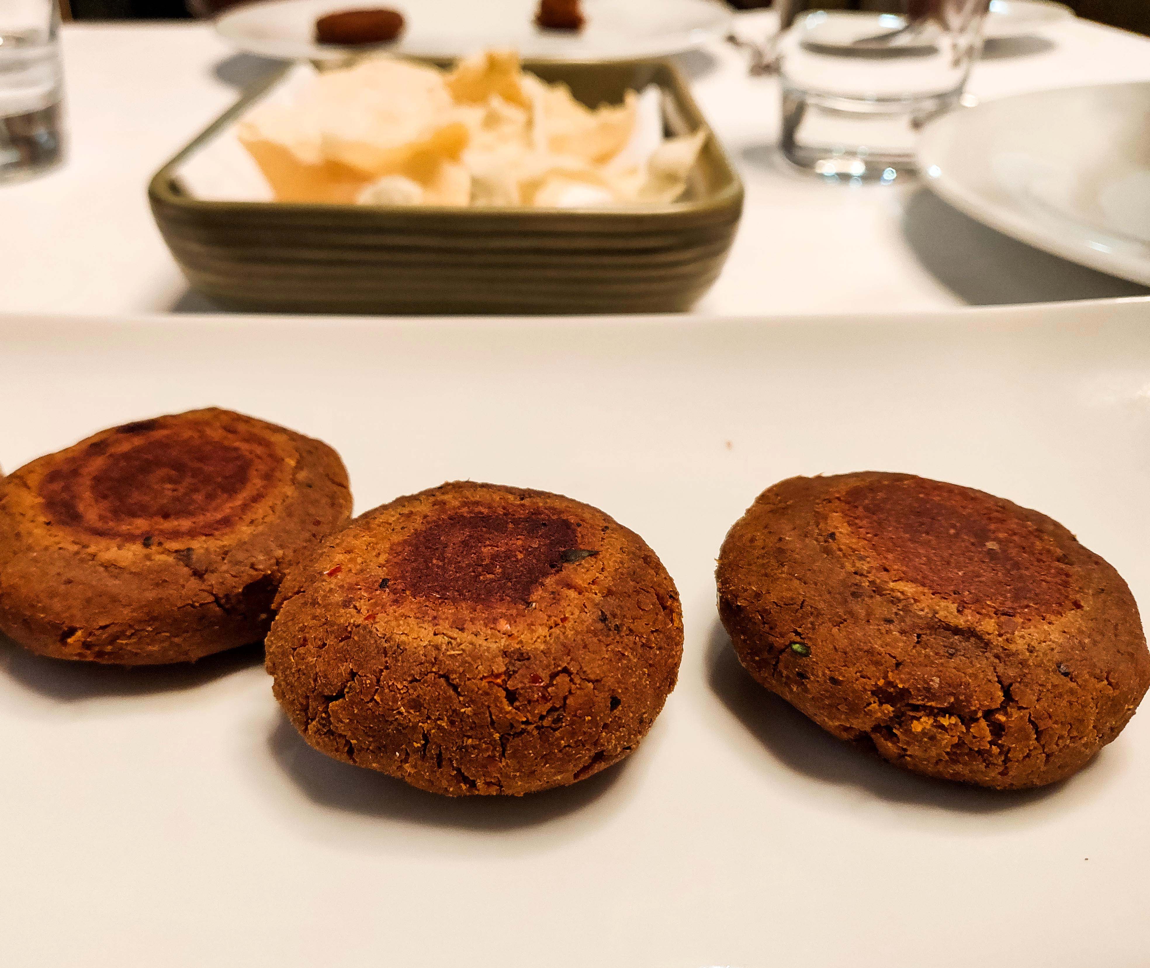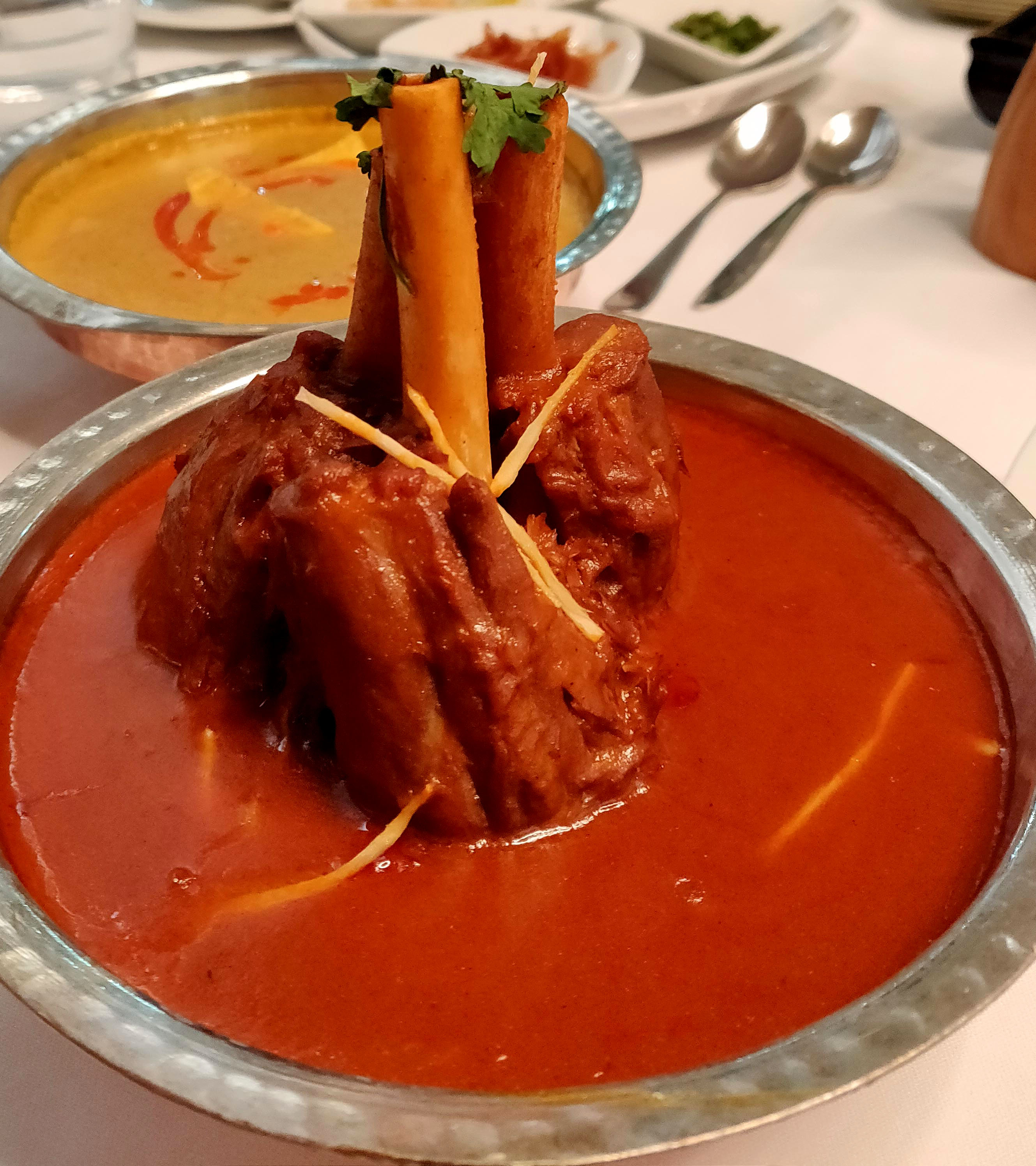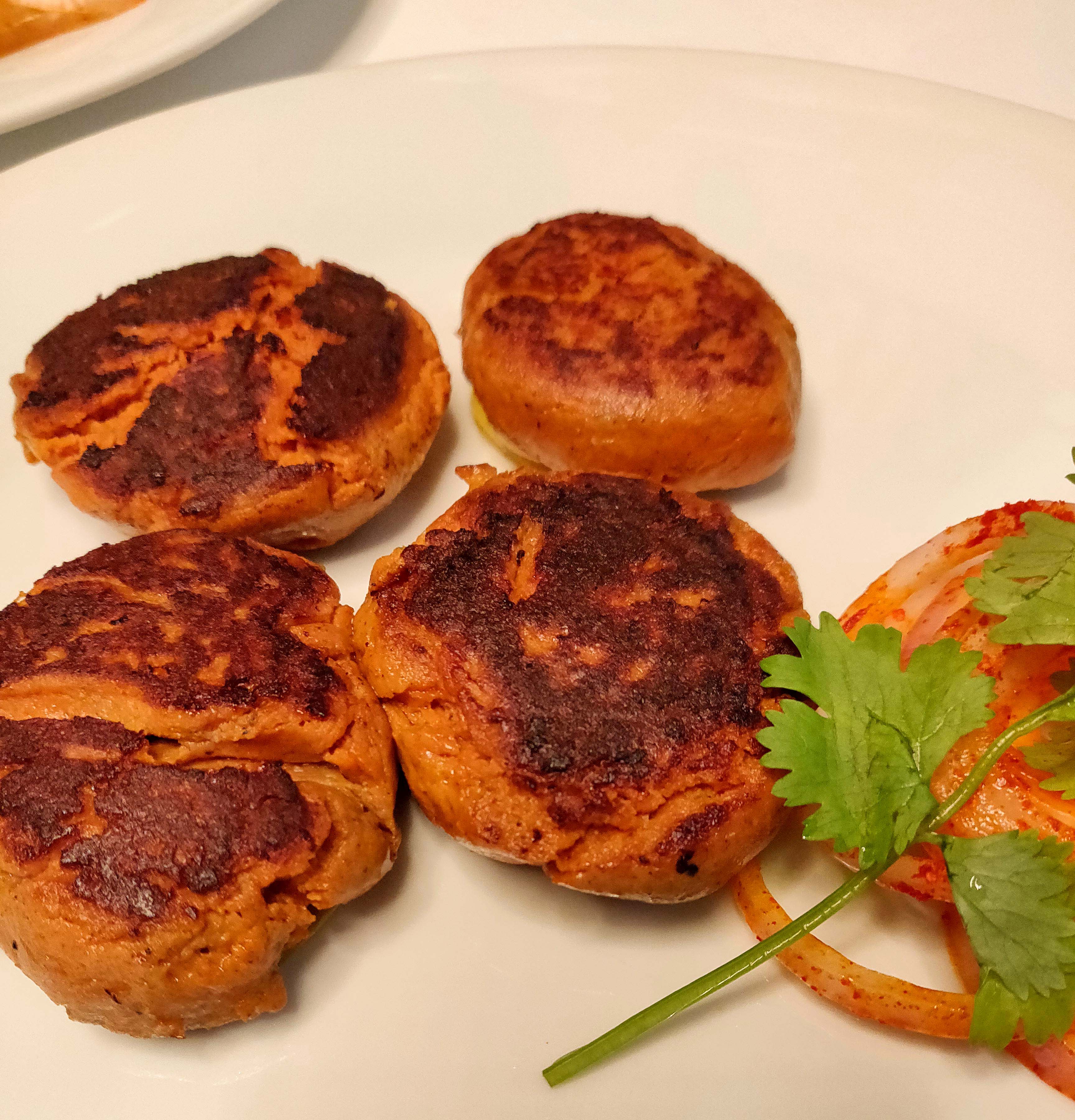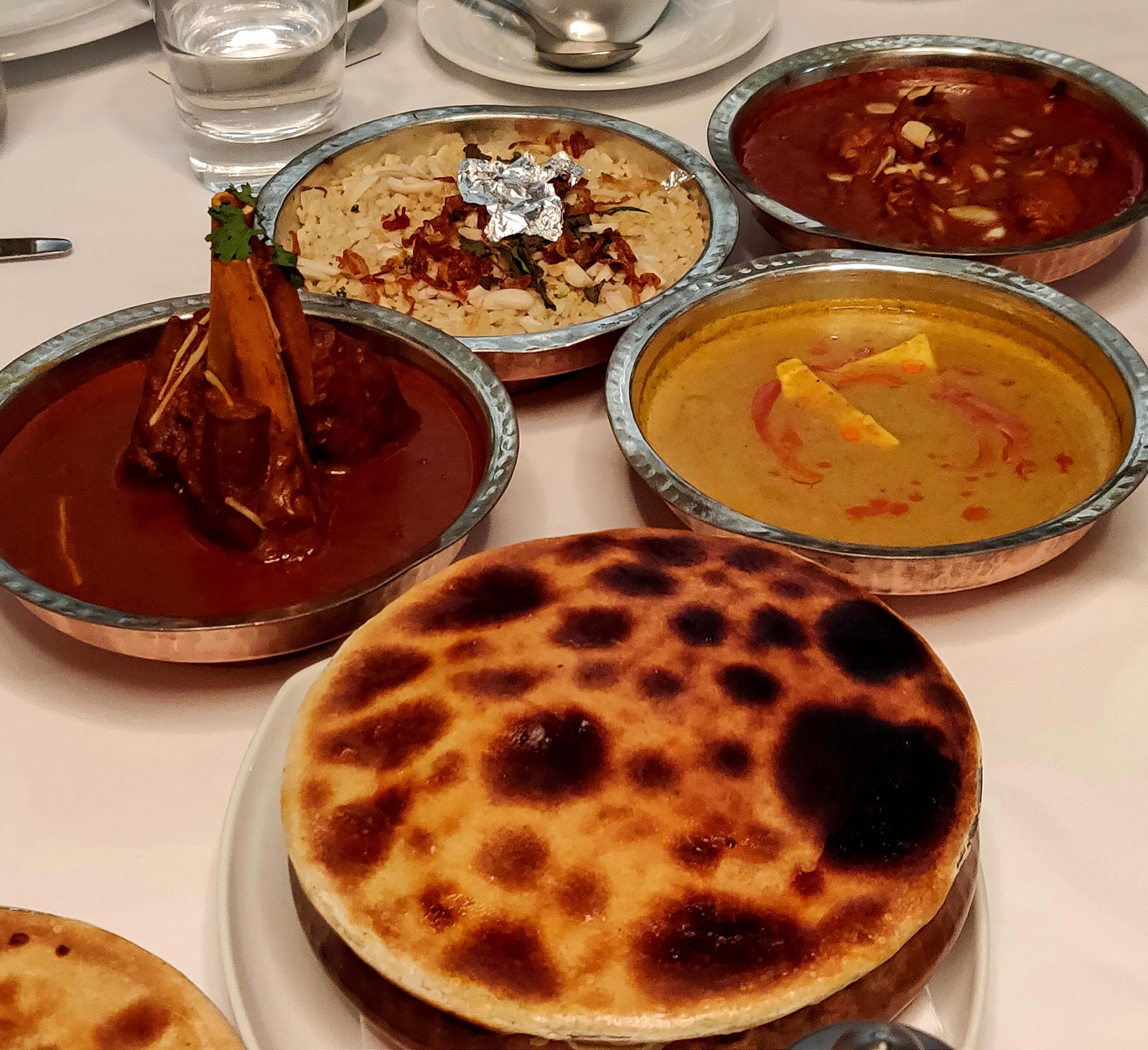 Nadru ki Shammi, Malai Paneer Tikka, Jhinga Qureshi, Galawati kebab and Murgh Balai Imtiazi. Nadru ki shammi kebab – lotus stem minced to a melt in your mouth texture and made into one of the most delectable mock meats and believe me I have had loads. Murgh Balai – succulent pieces of chicken breast, grilled in a tandoor and lathered with malai. Would have liked it, even more, had it been on the bone chicken. Jheenga Imtiazi – Jumbo prawns covered with filo pastry, grilled and served with apricot chutney. The chutney brings out the flavors of the prawns exponentially. The galauti kebab with mini ulte tawe ka parantha was an absolute stunner. Melt in your mouth texture and the perfect balance between minced mutton and raw papayas.