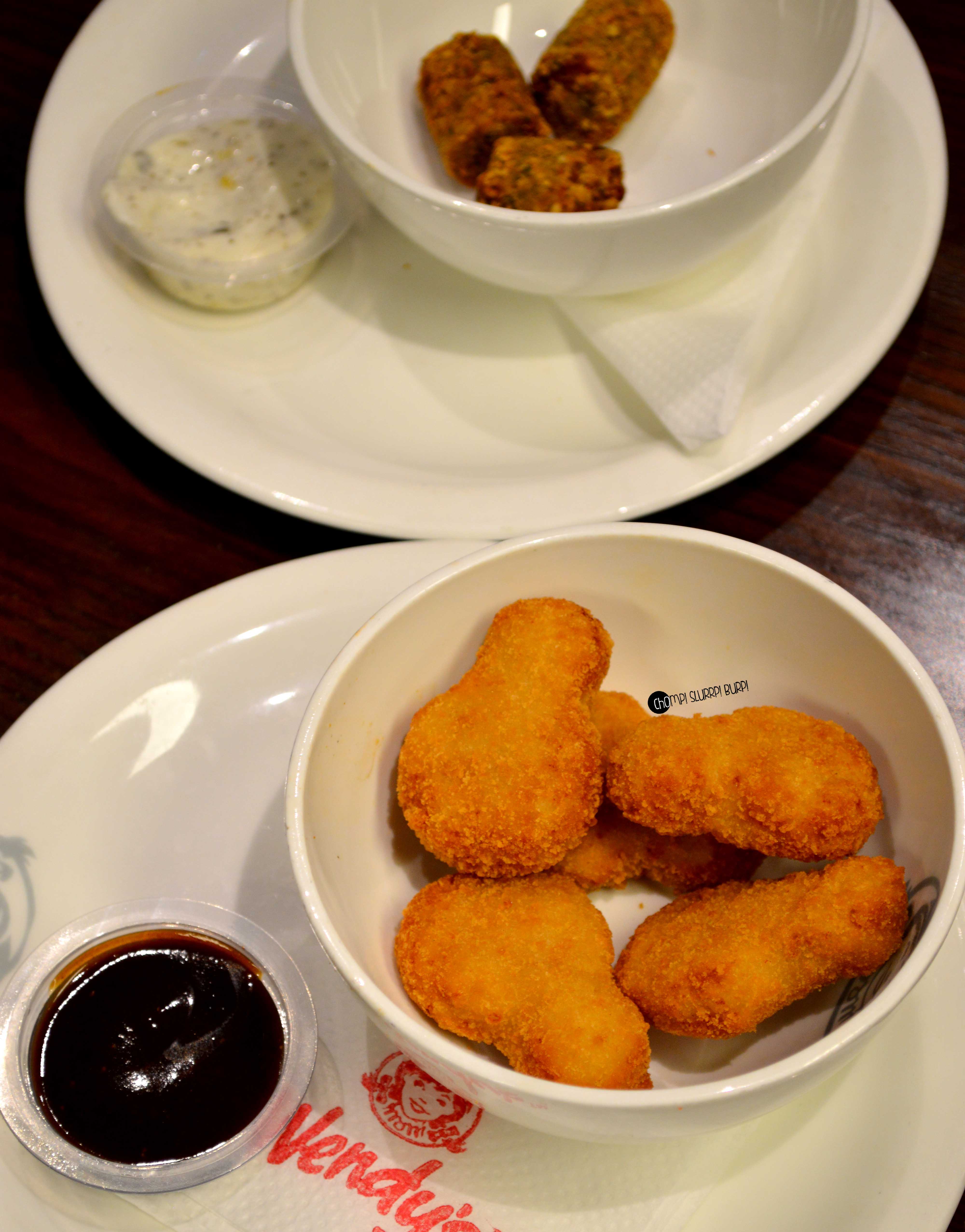They have added some fun nibbles and dessert. Starting with falafel shots with tzatziki. Bite sized crispy falafel, a tad on the drier side but quite an interesting bite. The chicken nuggets were juicy and crispy but nothing out of the box.