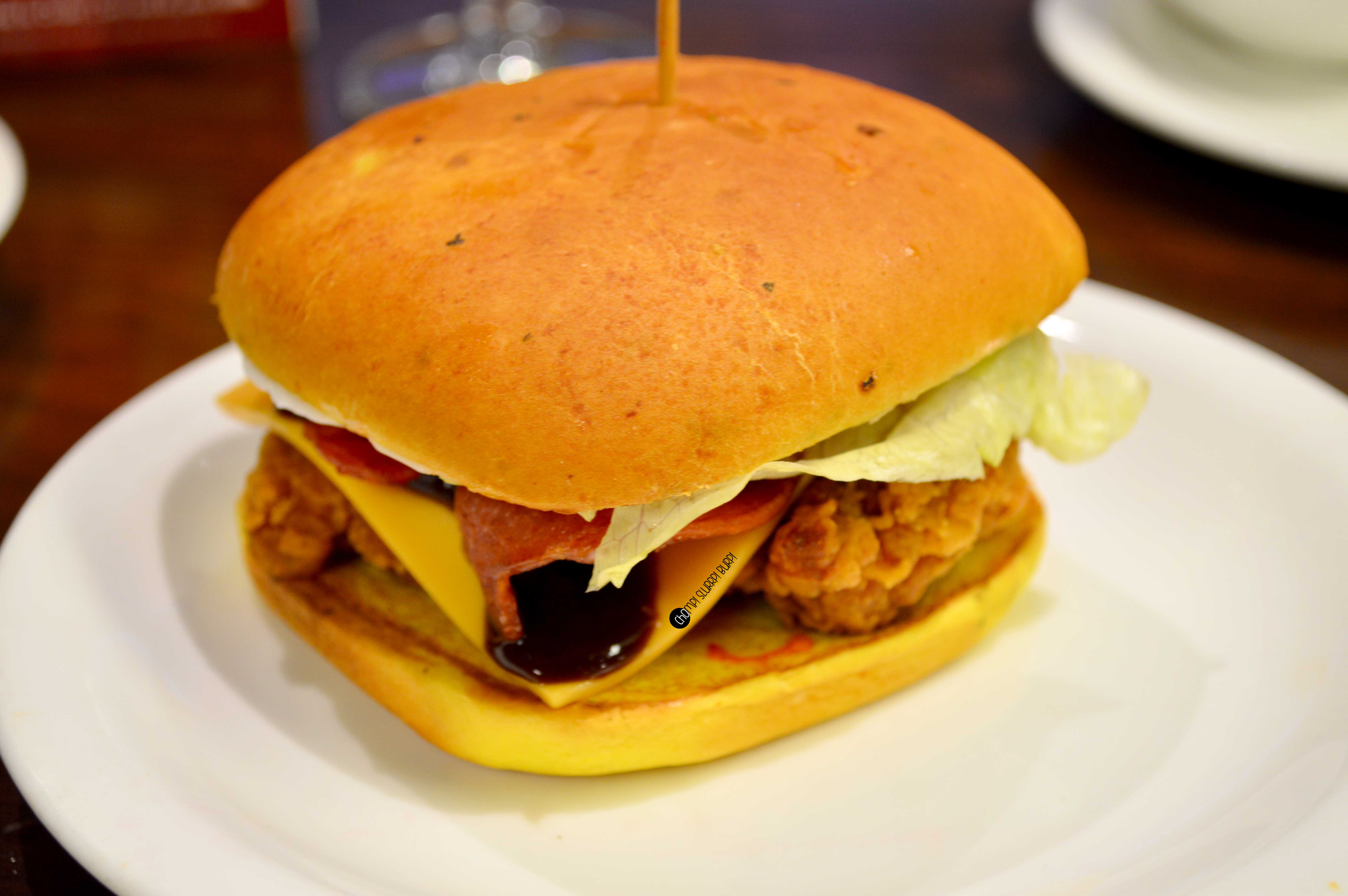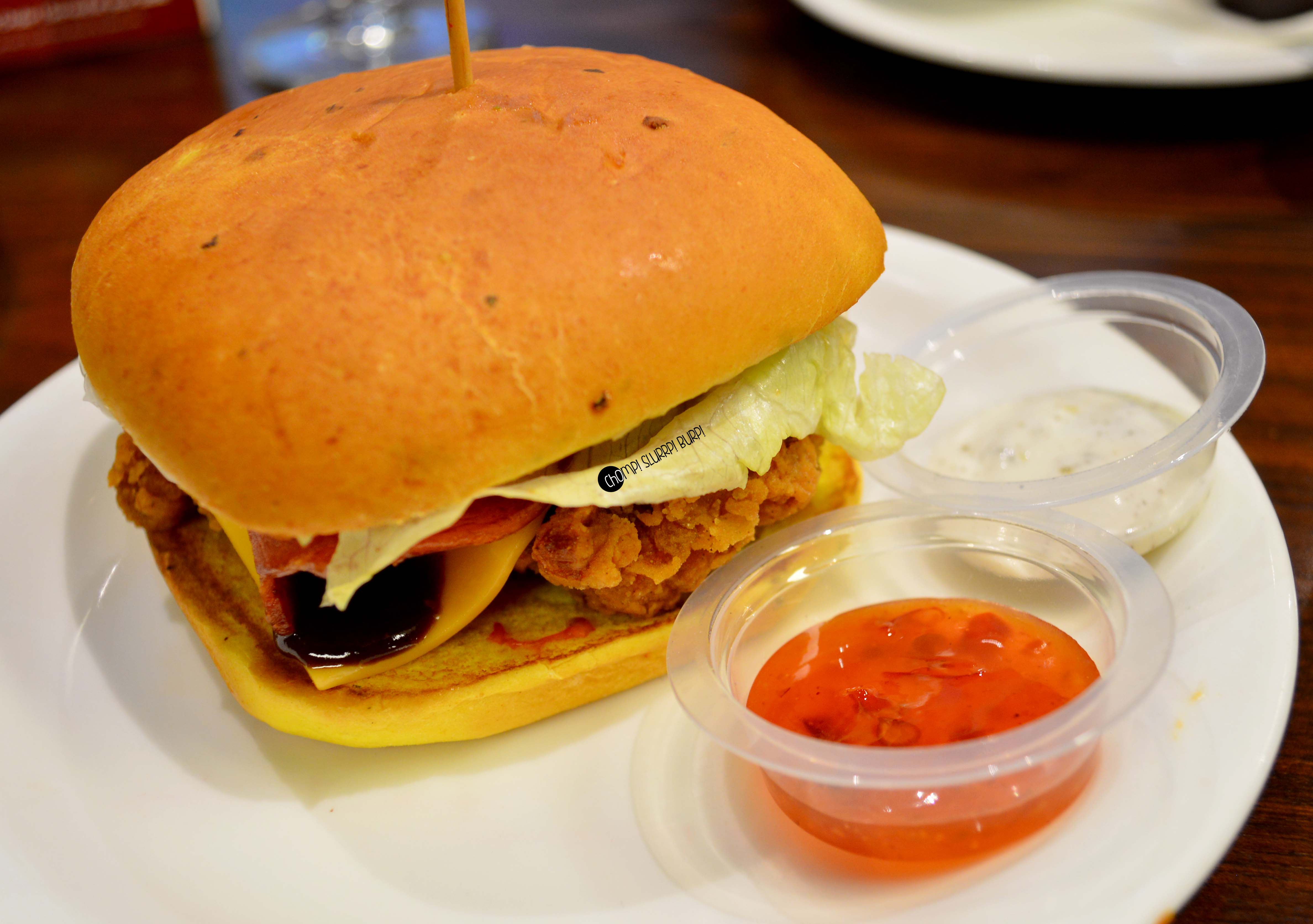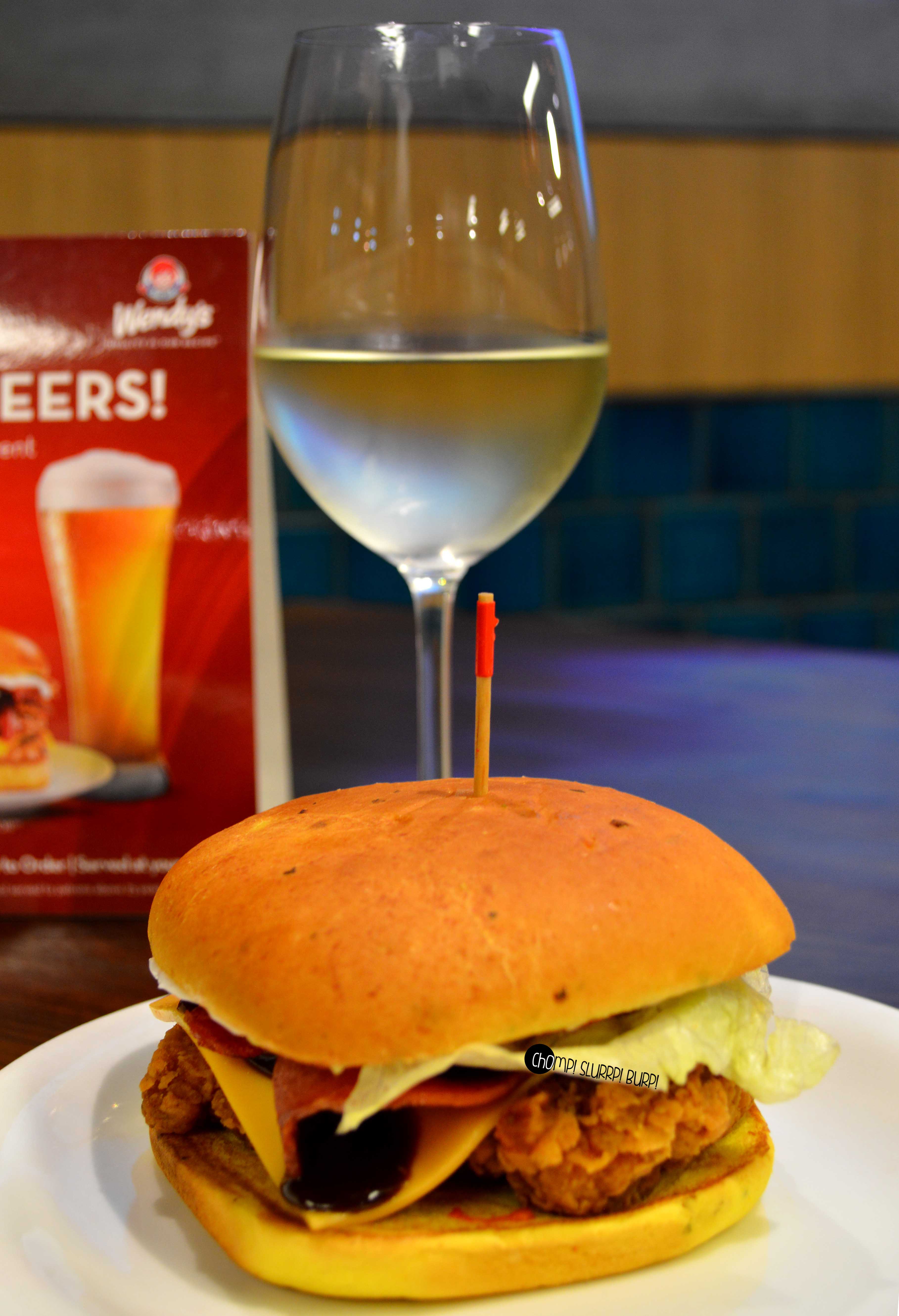 Bbq bacon club burger – the classic squared up burger with lettuce, tomatoes, a crispy fried chicken patty and smoked bacon. Being an ardent bacon lover, the bacon definitely lacked the soft, chwey characteristic but was more crispy. Enjoy it with a wine favorite.