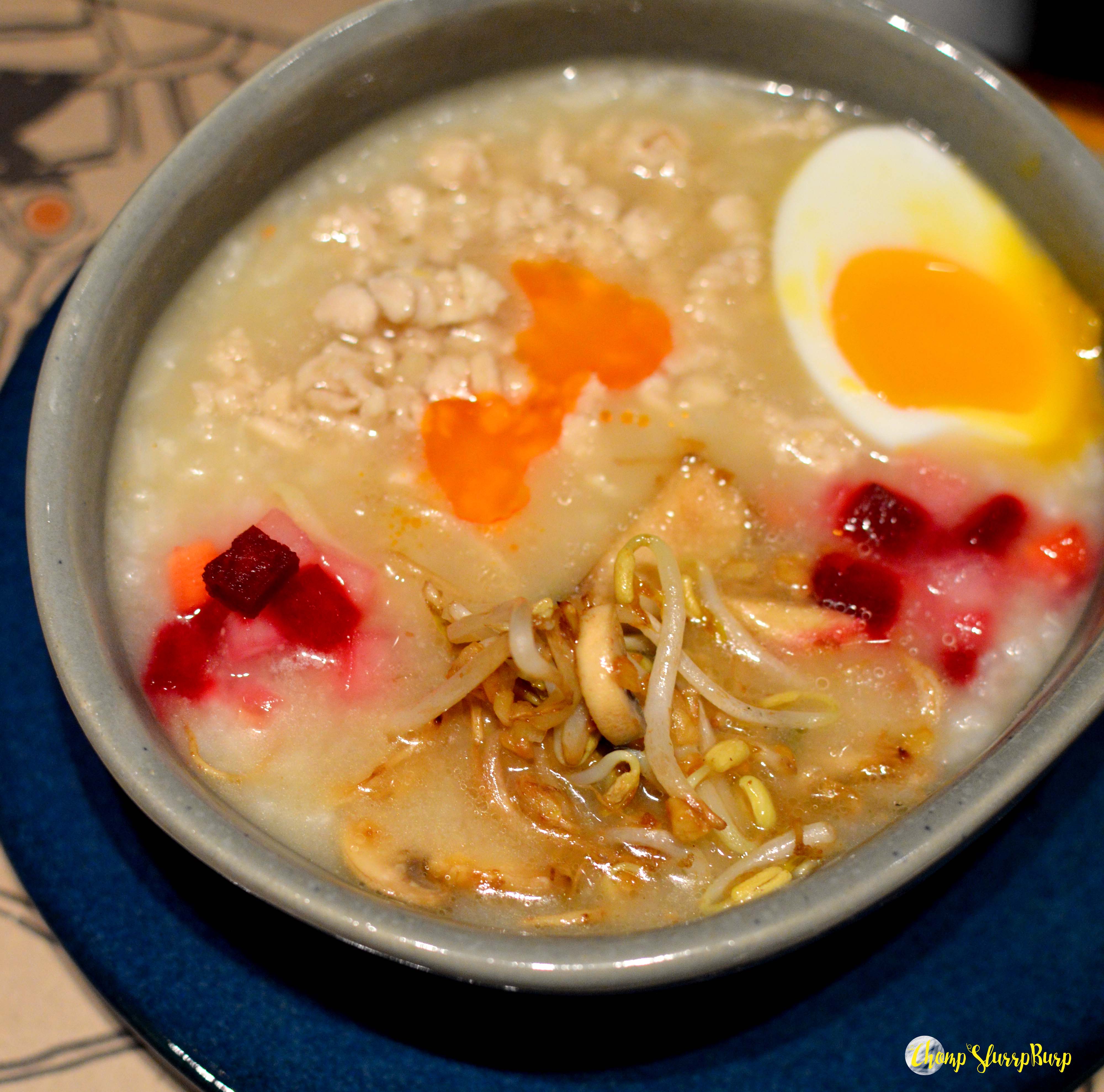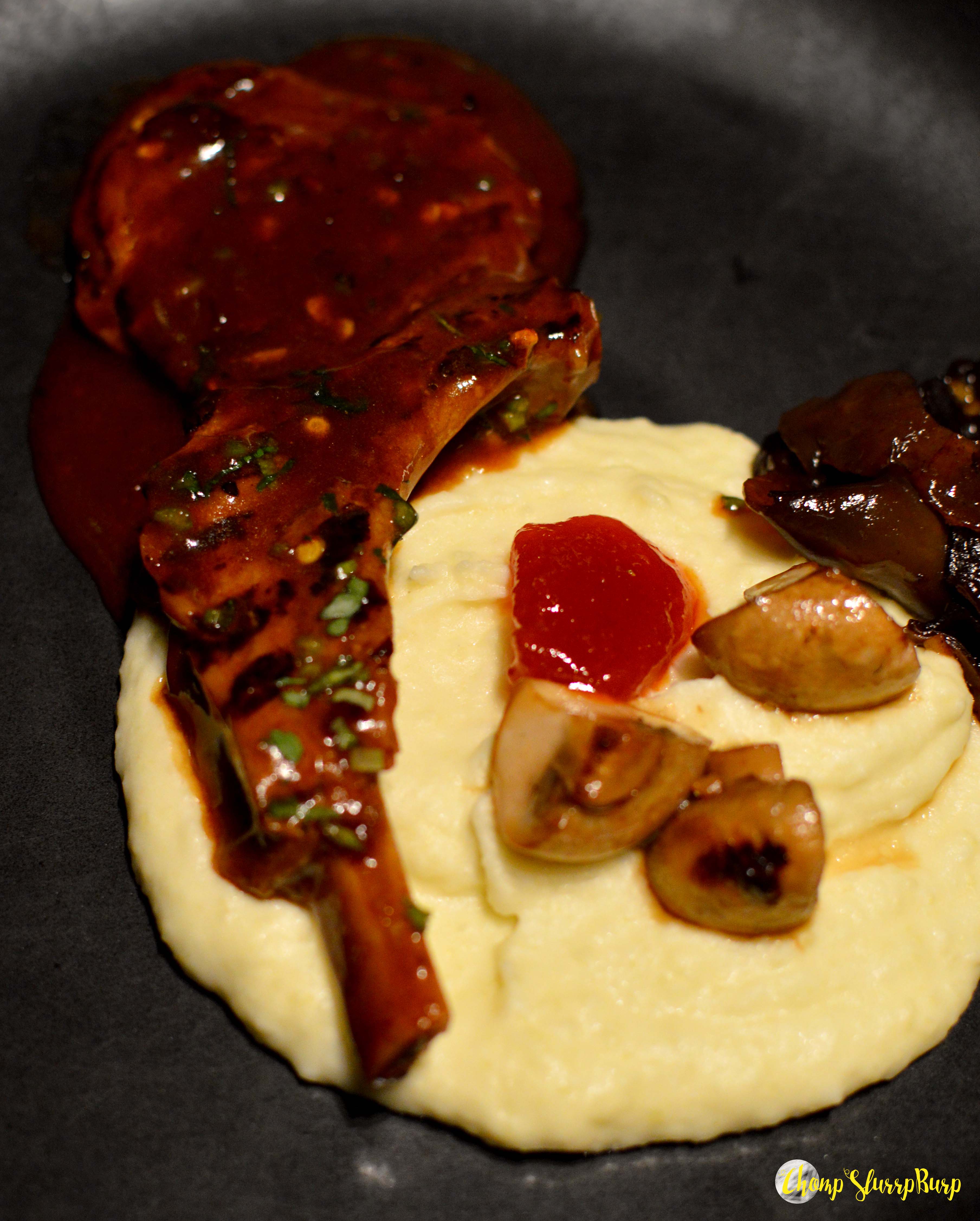 The mains – Chicken Ramen bowl and Congee Ramen bowl. The bowls were a wee bit displeasing. I prefer my ramen bowls with a lot more thicker broth. With noodles, greens and a runny boiled egg, the Ramen bowls did not quite appeal to me. Yam and lychee curry served with Cheddar Bao and Tofu steak with lemony coconut sauce, grilled pineapple and Burmese coconut rice. The vegetarian offerings were really quite tantalizing, especially the Cheddar bao with a molten cheese centre and strawberry preserve. The meaty larger plates included – Buckthorn jelly marinated lamb chop with wasabi mash and stir fried wild mushrooms and Salmon poached in miso citrus sauce served with wok tossed red quinoa. The New Zealand lamb chops were an absolute favourite with the sweet jelly sauce and creamy mashed potatoes.