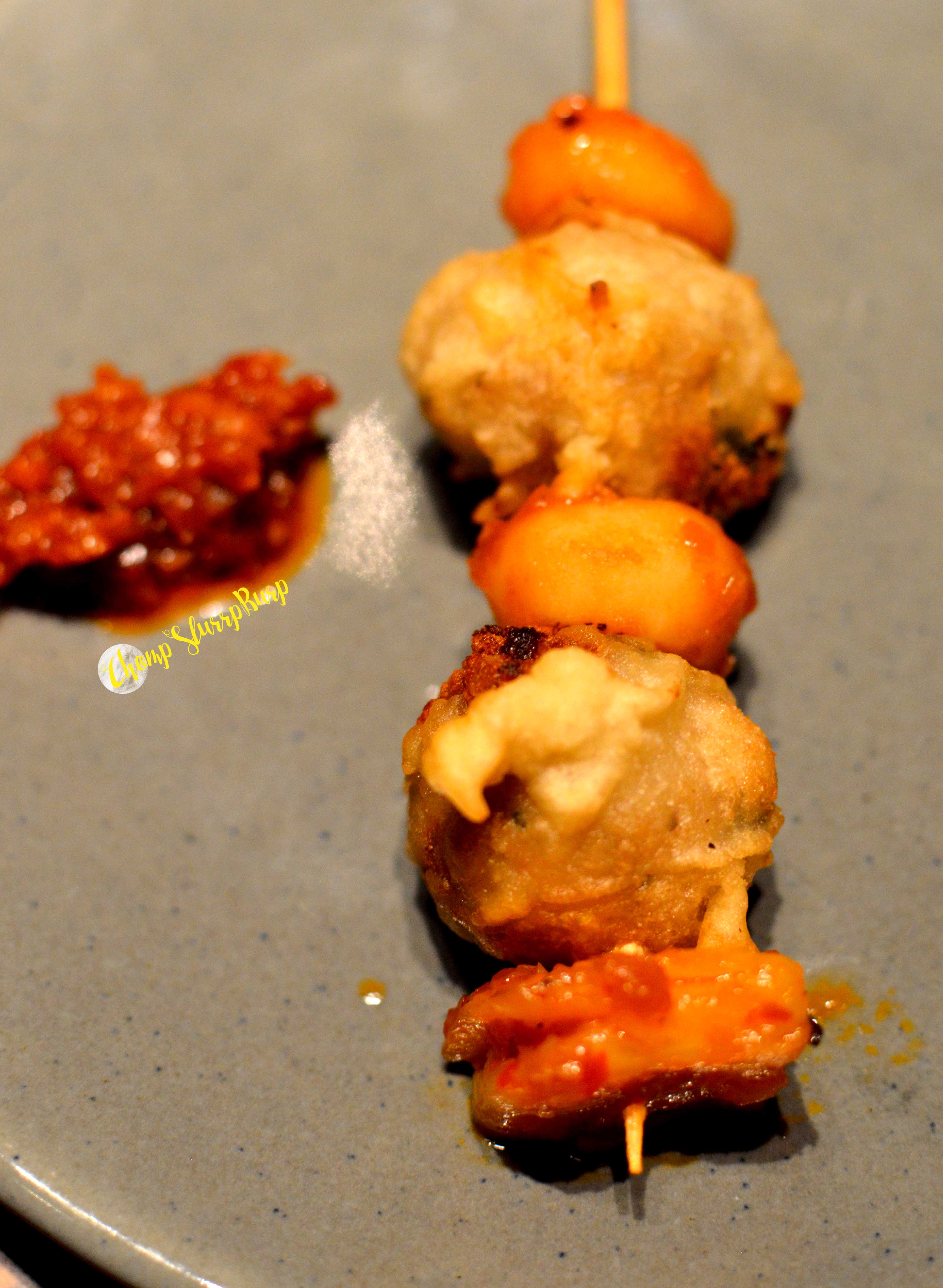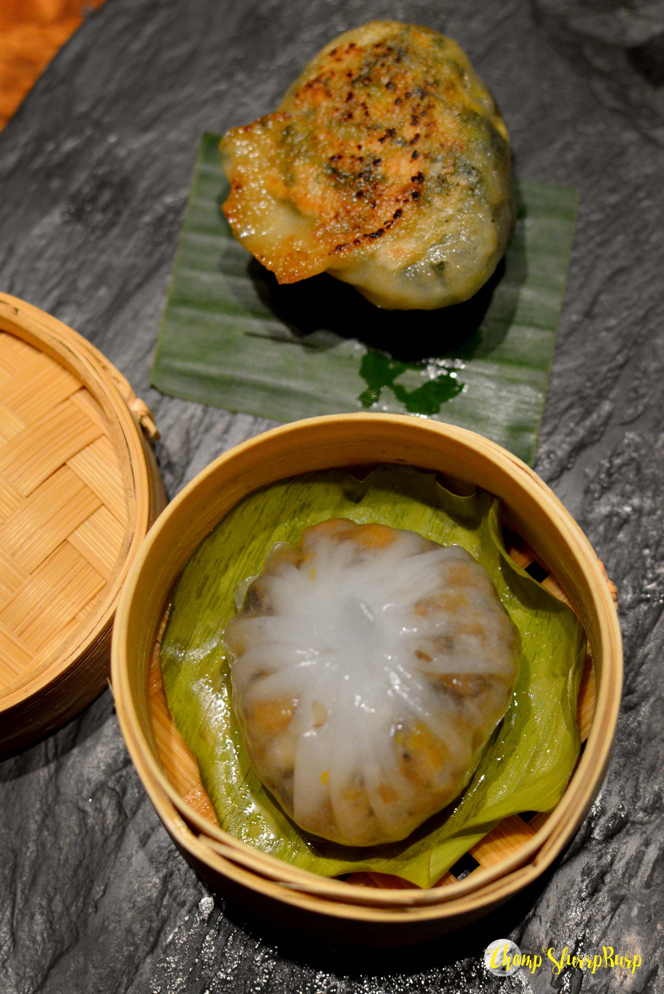 Roasted pumpkin, shitake and truffle oil dimsum – a crystal dumpling stuffed generously with pumpkin and the crunchy mushroom texture. Chinese greens, corn and water chestnut gyoza – the pan fried dumpling with a toothsome filling. Also tried their chicken marinated with Asian sauce gyoza which was pretty swell too. Also, I was quite digging their beautiful bamboo baskets to hold dumplings for one.