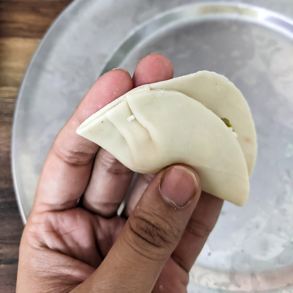 - The more traditional way is to pinch and seal across the semicircle. See more pleating techniques here.