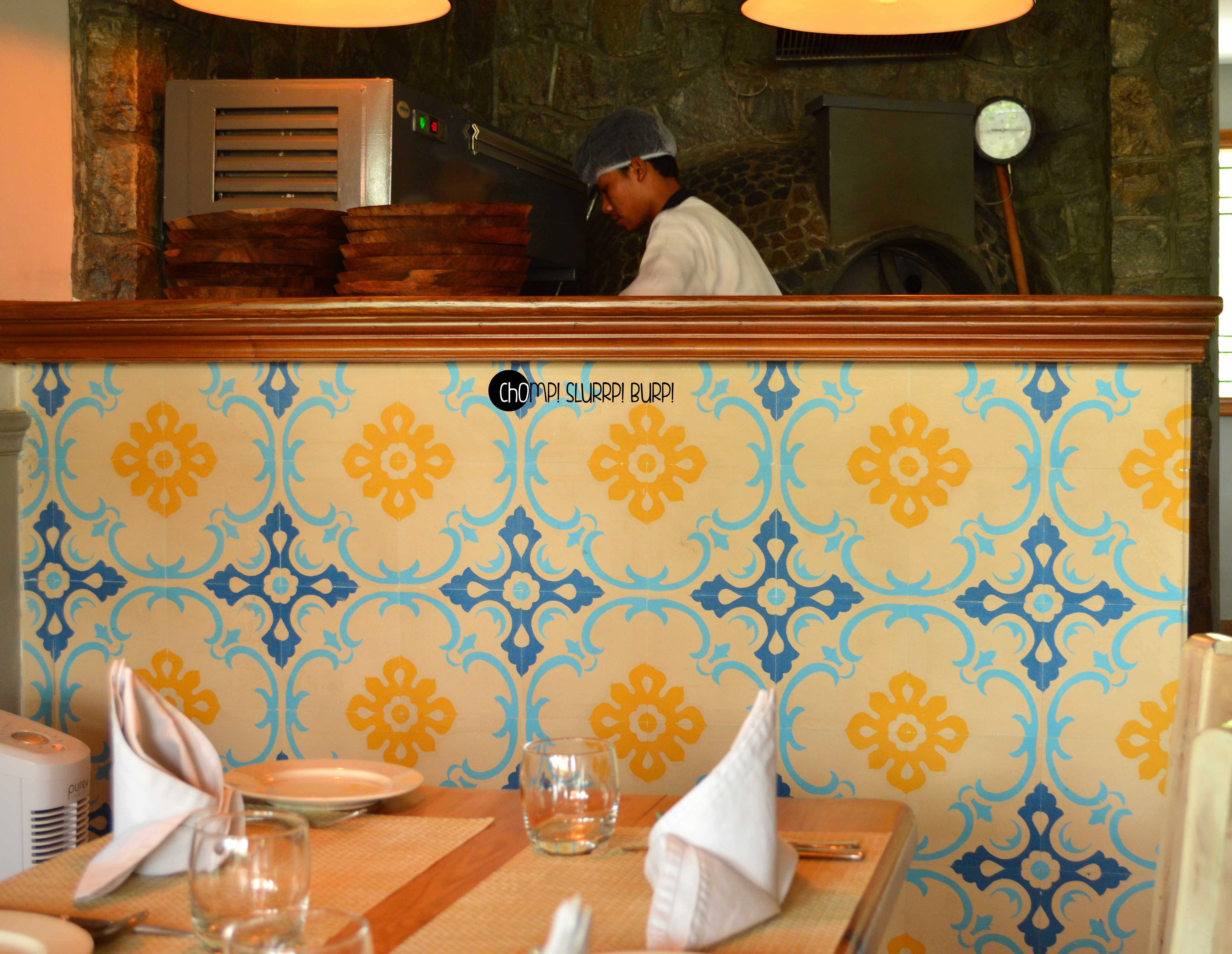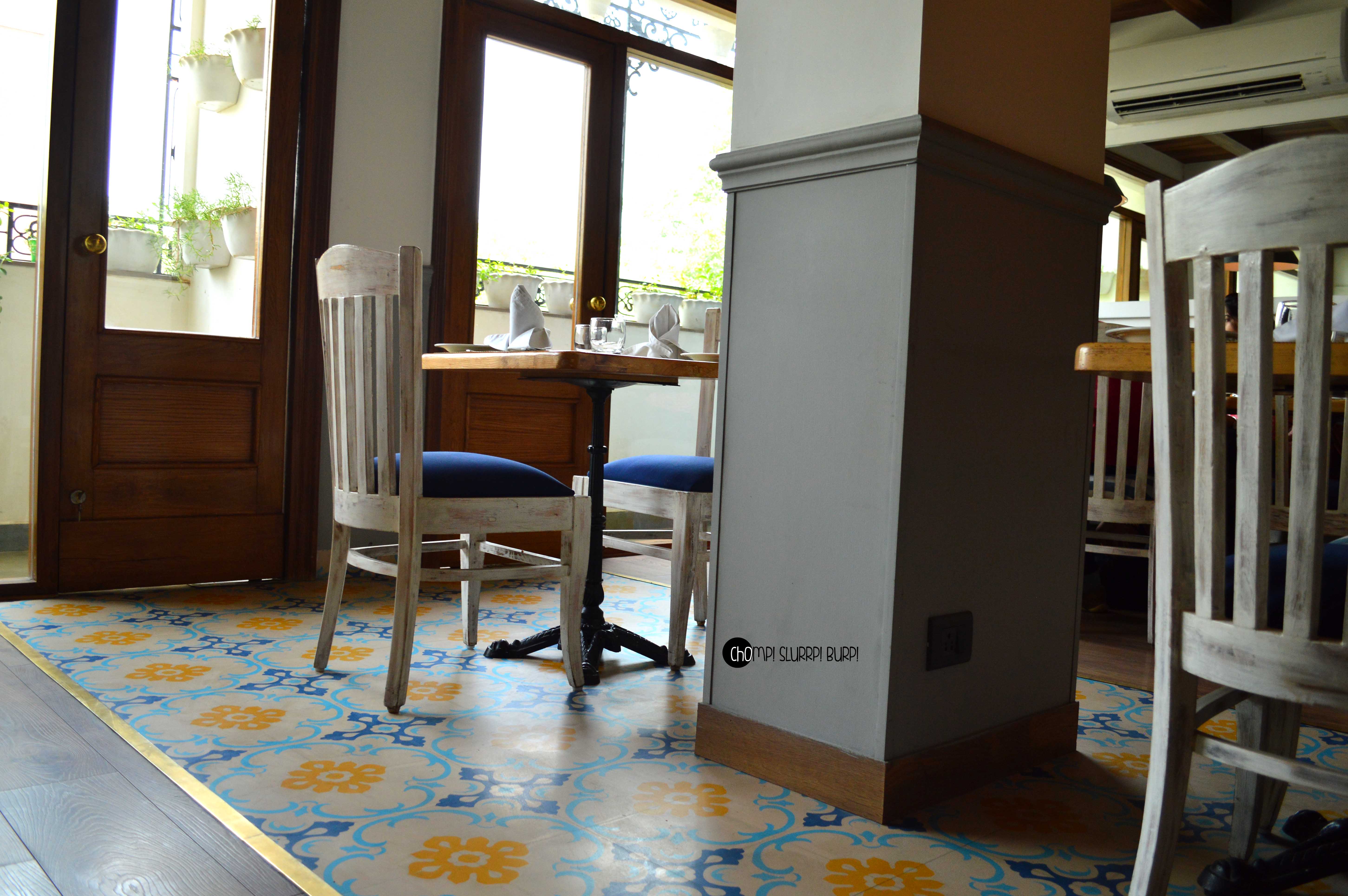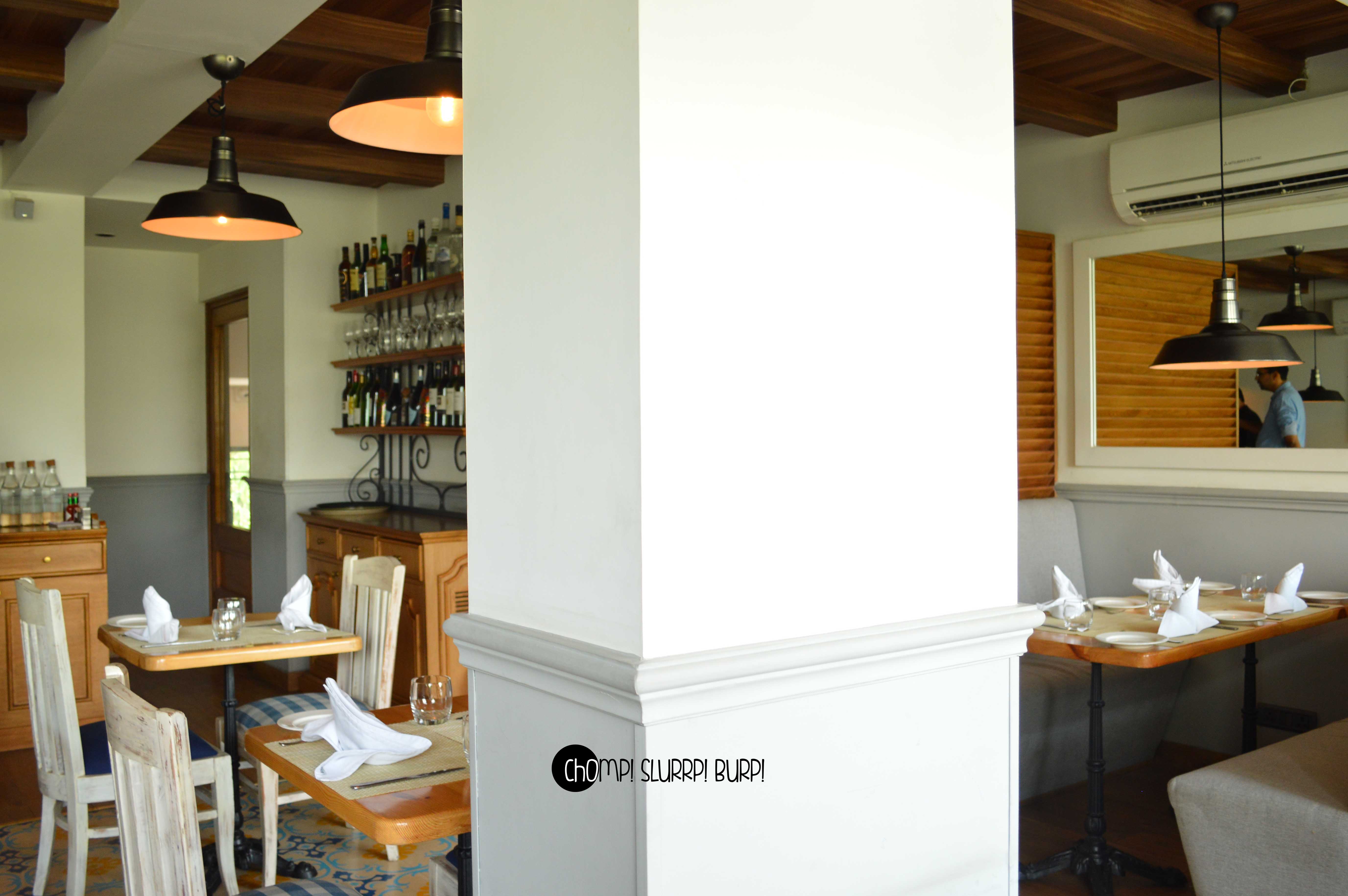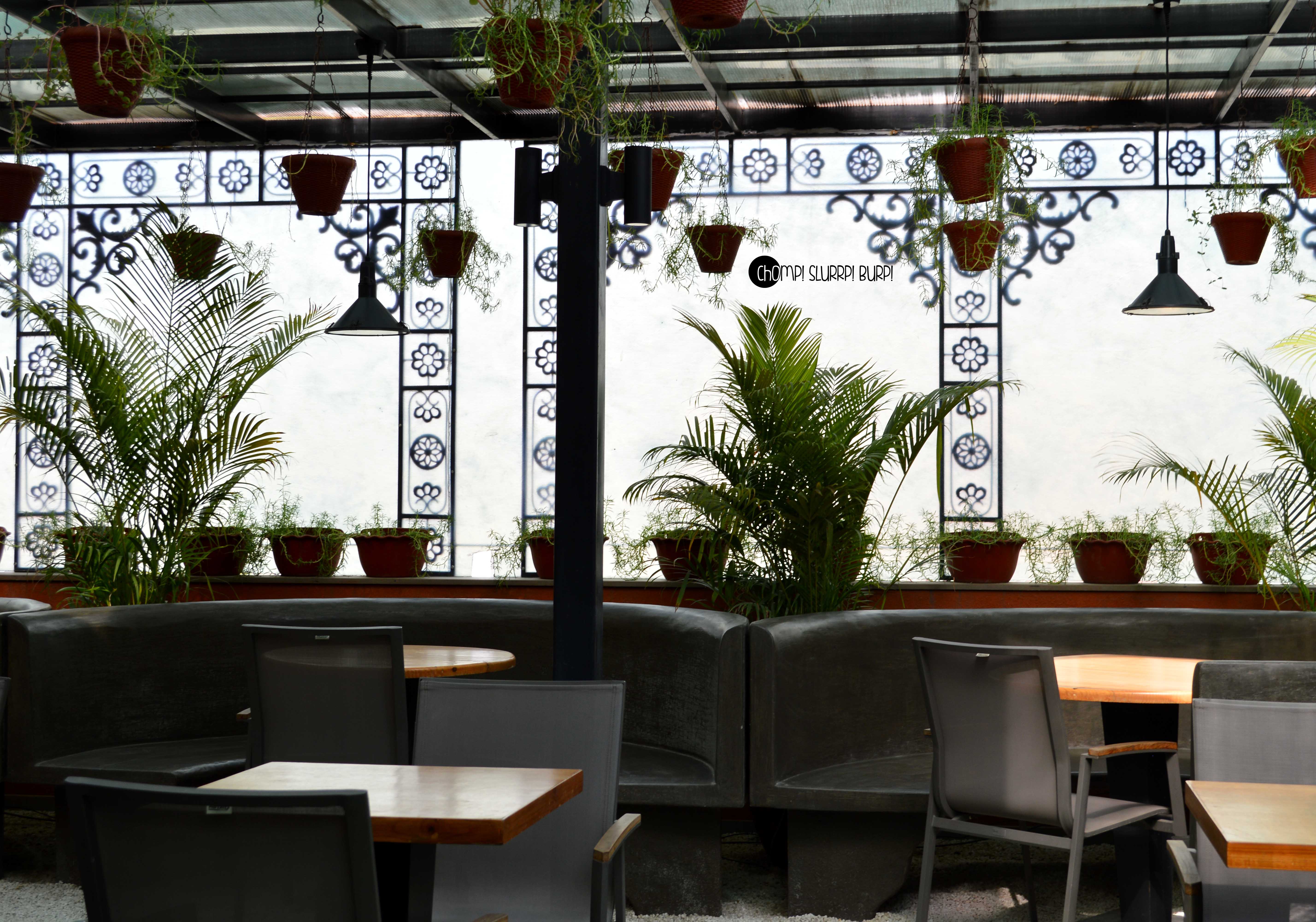 Coming to Dirty Apron – the place is not gigantic but the vibes are. The restaurant is spread over two floors – the first houses the bar, a wood brick fire oven and plush seating option. With sunlight beautifully bathing the place, the place is well lit and the huge mirrors and windowpanes make the ambiance very elegant.