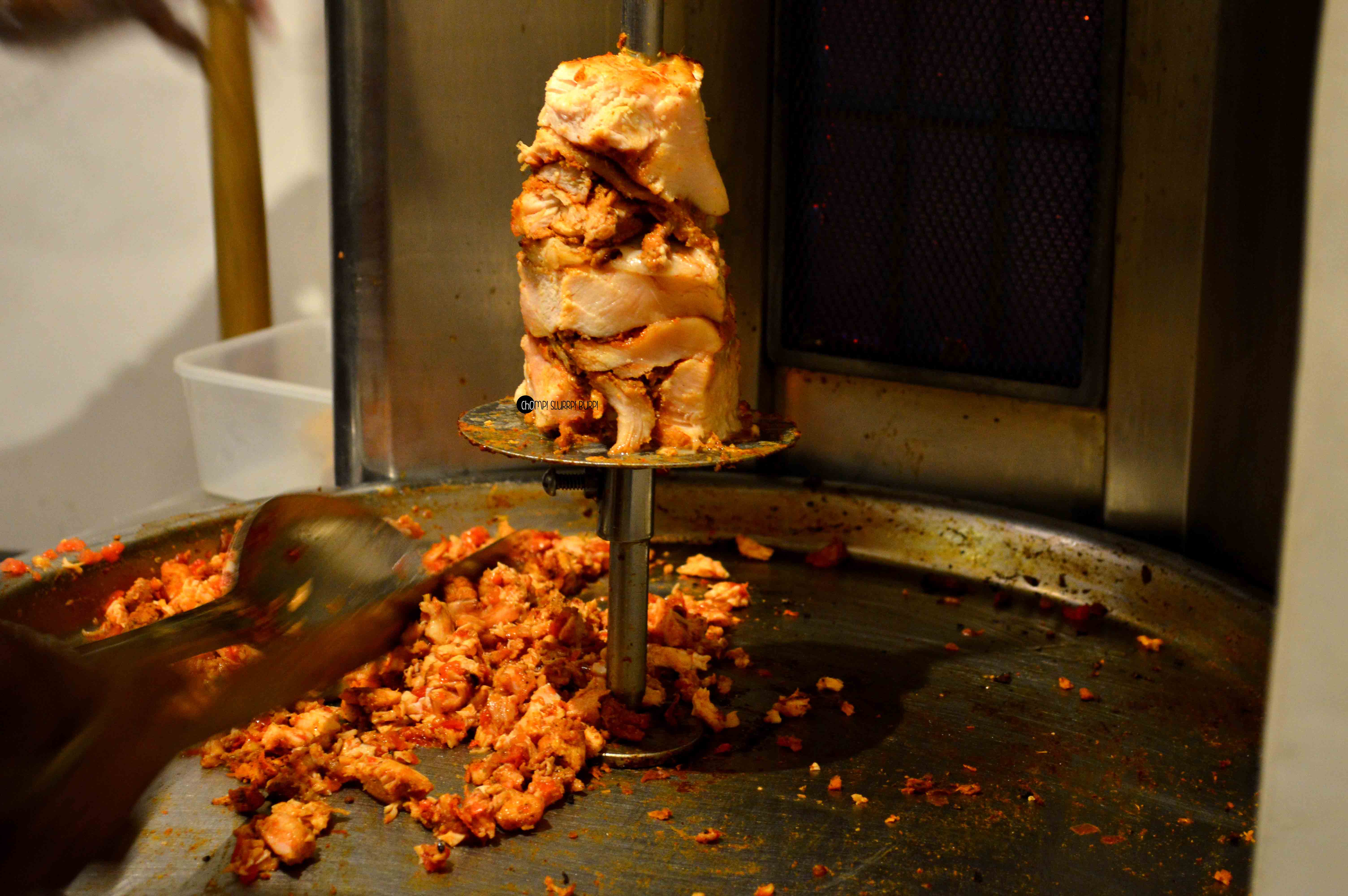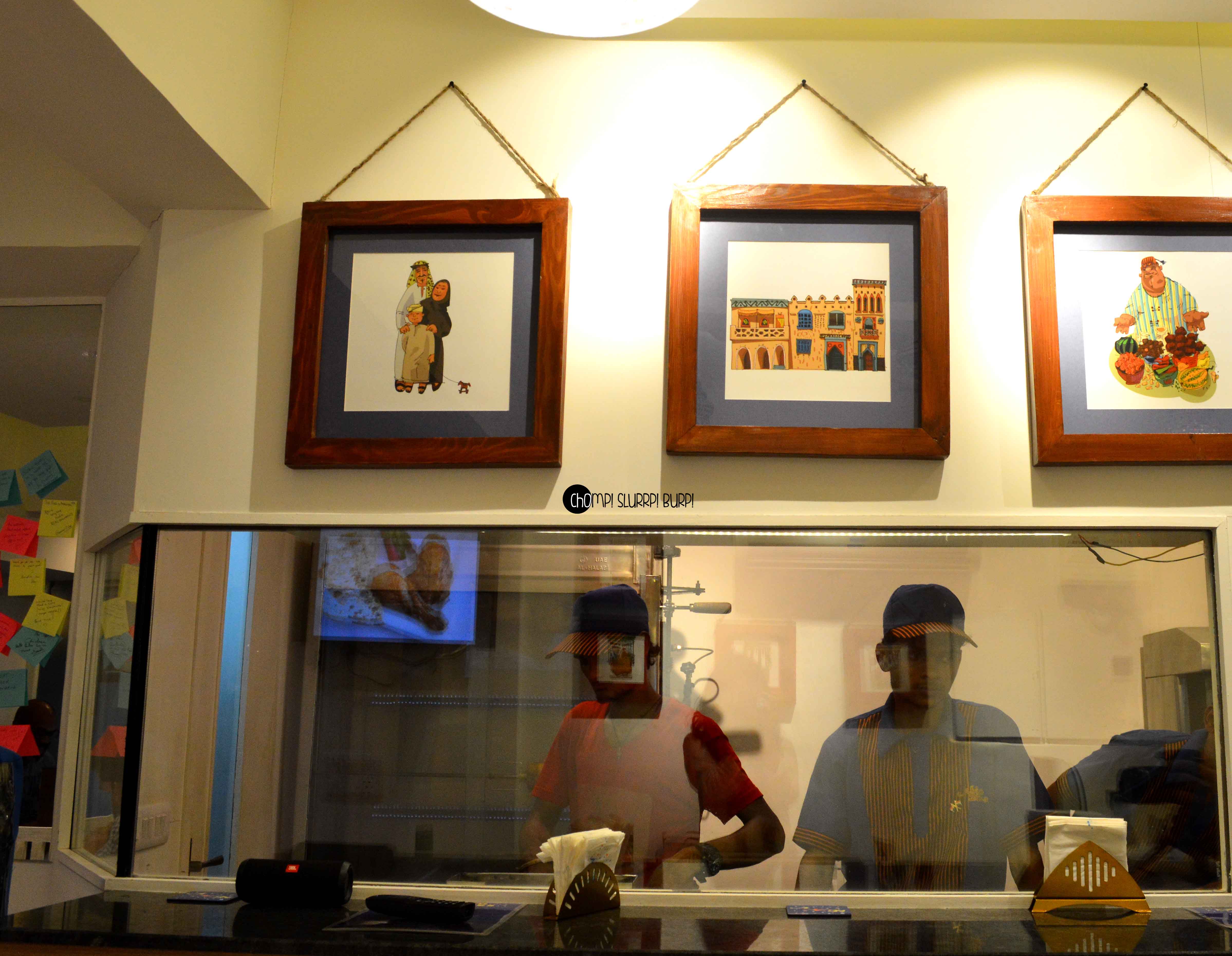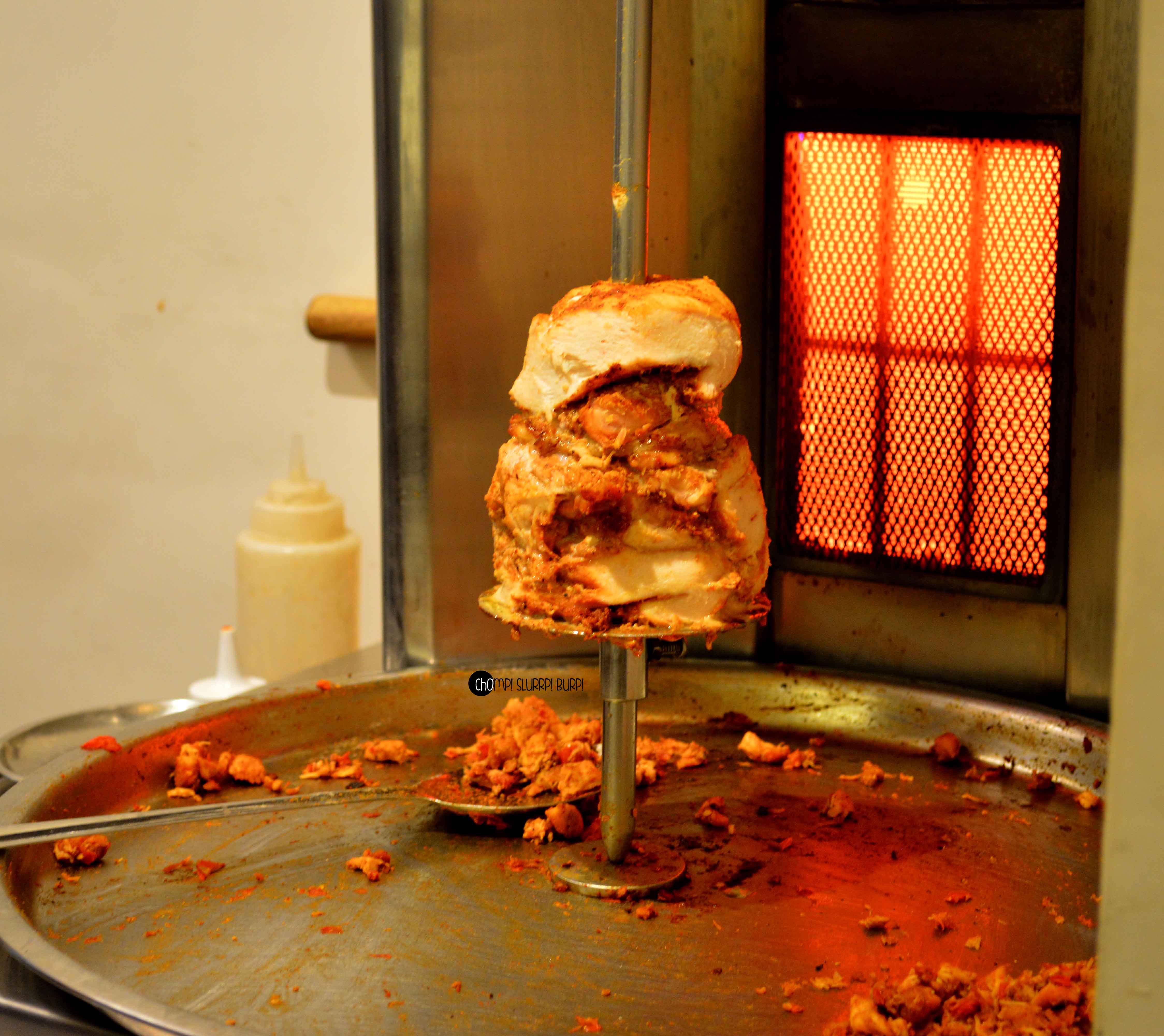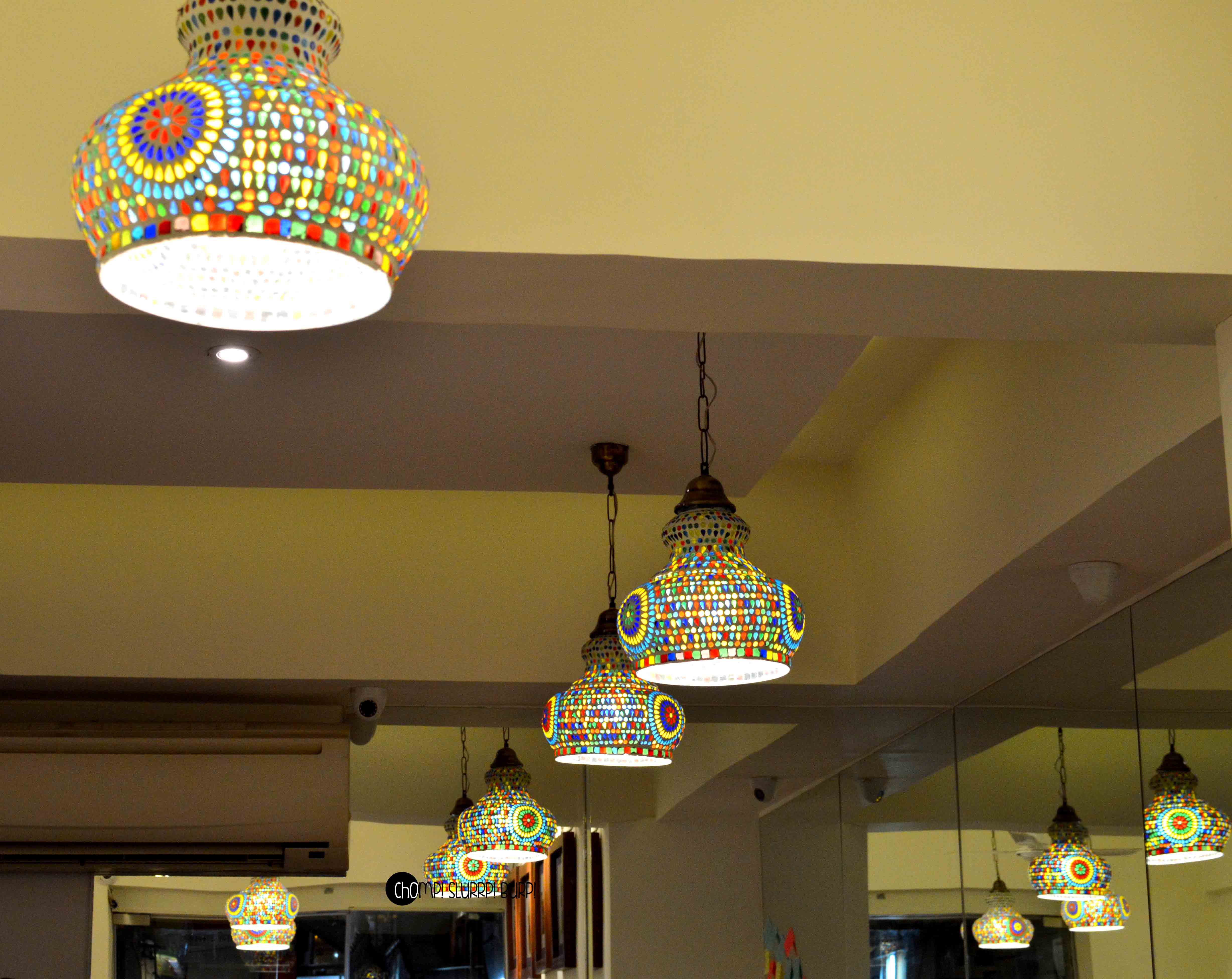 Arabian Nites has been a legend in Delhi for over 30 years and have a loyal fan following ever since. And after their success at Vasant Kunj, they have finally branched out to SuperMart 1, Gurgaon. Just about two weeks old and they have build themselves regular customers and a following already. The place is done up beautifully – stained glass lamps, mirrors metastasizing the space and framed Arabian doodles. Through the glass you have a full view of the open kitchen, located outside the sitting area. A huge grilling machine with a capacity of grilling as many as 20 whole chicken at a time is a treat to your eyes and tickles your belly even further.