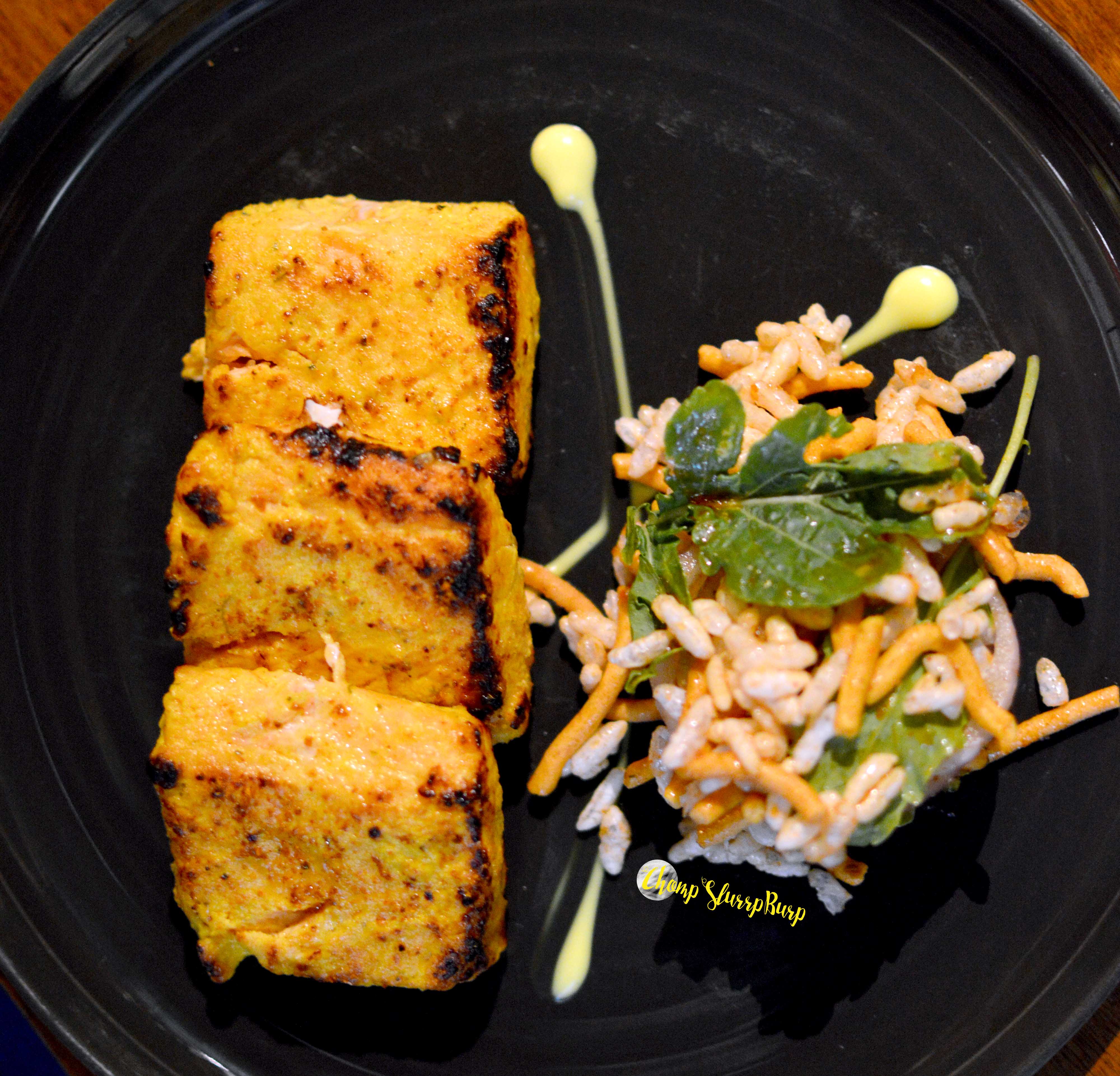 Appetizers – Pather kebab chicken – succulent pounded pieces of chicken, with toasted fox nuts, broccoli, asparagus and tomatoes, the perfect balance between meat and greens was so appetizing. Tandoori Norwegian salmon, dil and saffron marinade – huge pieces of fresh salmon, fresh salmon to the extent that it was a gorgeous shade of pink from inside, grilled with mustard and served with puffed rice and aloo challa Desi namkeen. Tawa Asparagus, paneer tikka, tomato chutney – juicy cubes of grilled paneer, dunked in flavorful tomato chutney with pan tossed asparagus. A beautiful take on the everyday paneer tikka. Spinach and apricot fillo kurkuri, anar dana chutney – a sumptuous buttery, flaky patty crisp, home to spinach and delish apricots, dip it in the cheesy anar dana dip and you are golden.