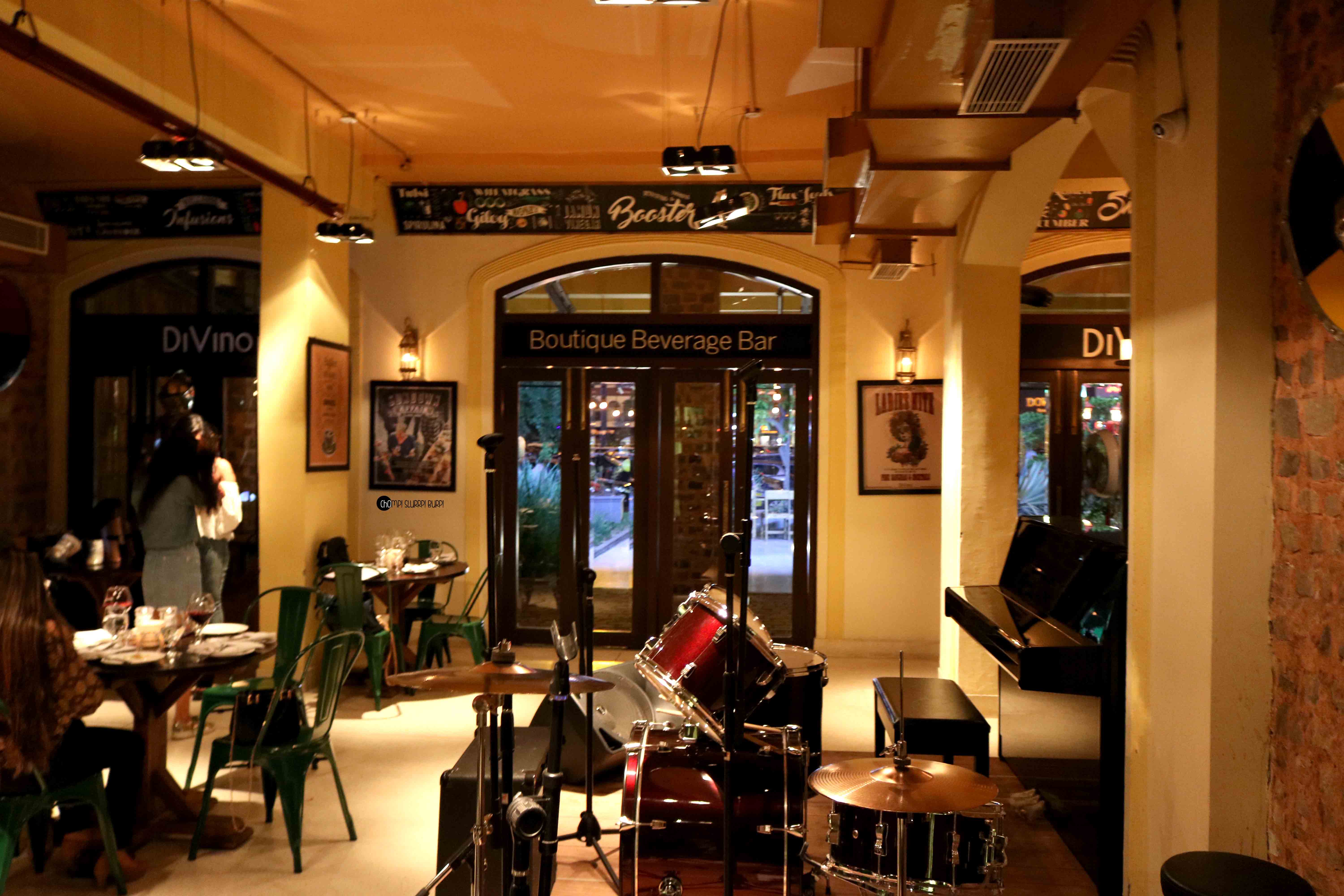 The place is magnanimous, entire 3 floors are DiVino’s with the ground being the fine dining area with a fully-stocked wine bar, plush sofas a neat table layout and plenty of space around the wine stack to admire them, the live music performances on special evenings really sets the mood.The Jazz, country music on the other nights makes the ambience serene.Every corner has something special, the entire place has armory and artifacts from the 19th century.
