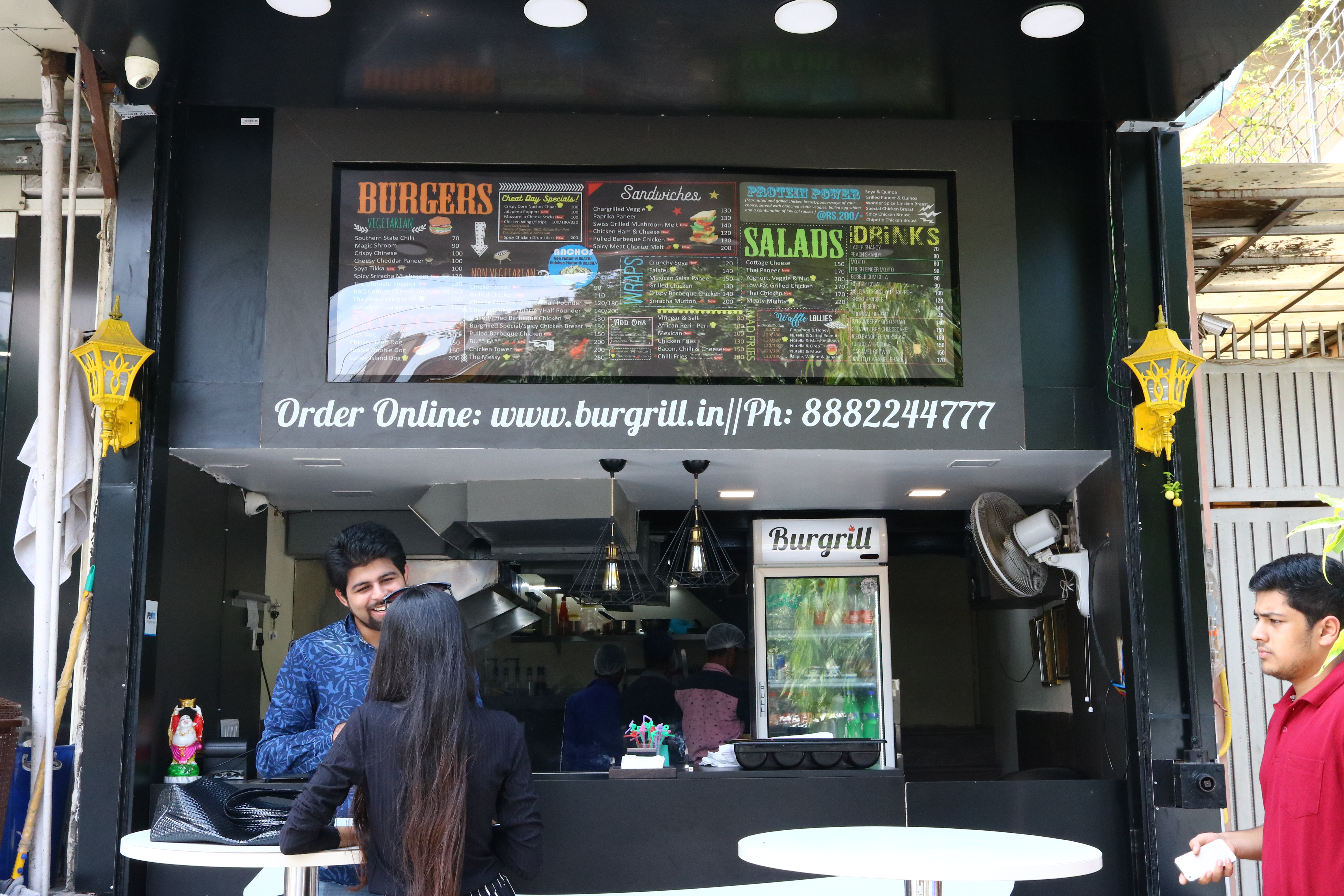 The newest outlet of Burgrill opens in Rajouri Garden, after a successful reign in Satyaniketan, this one is a QSR. A small kiosk as a kitchen some tables on the road but deliciousness guaranteed.