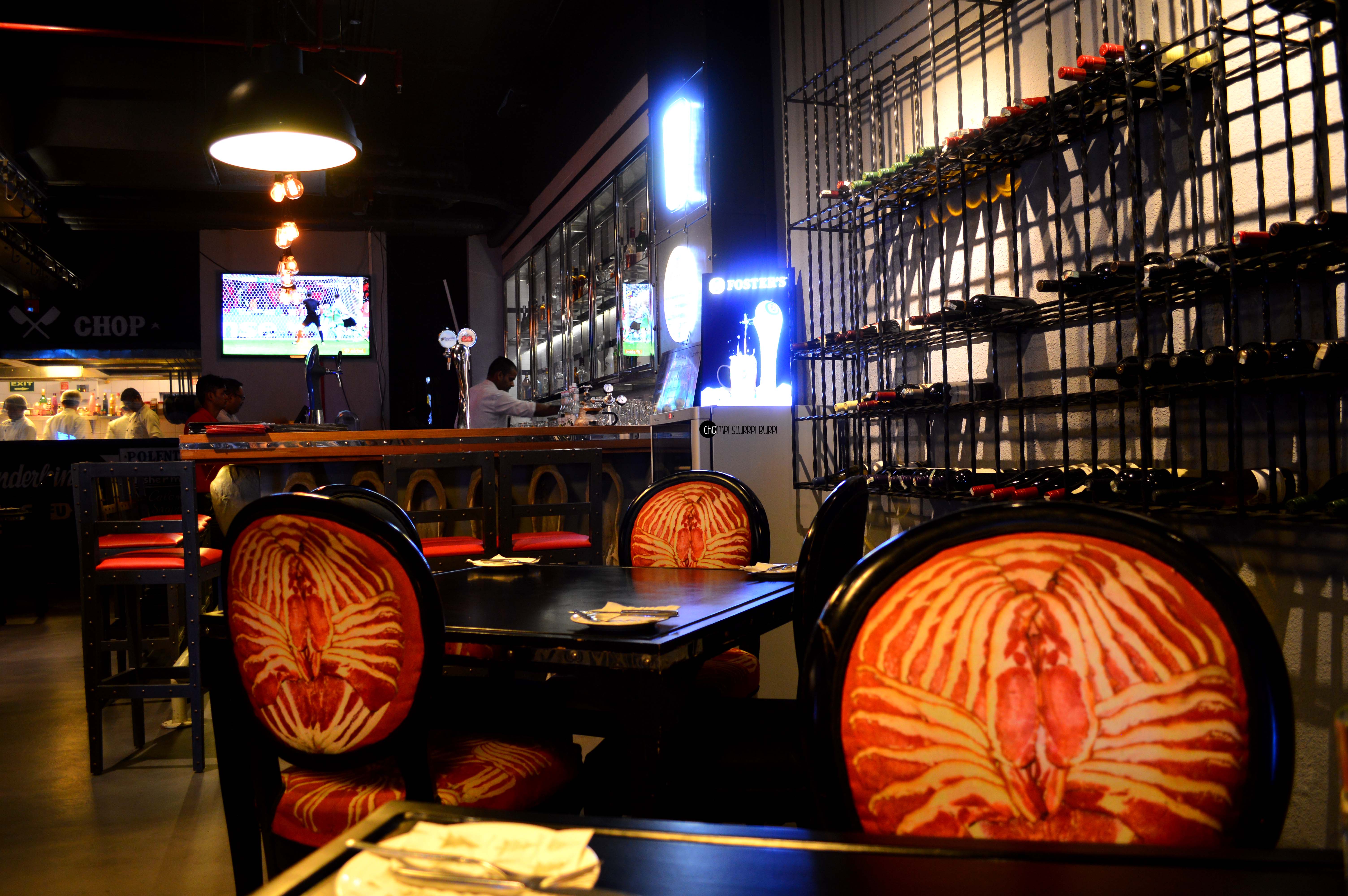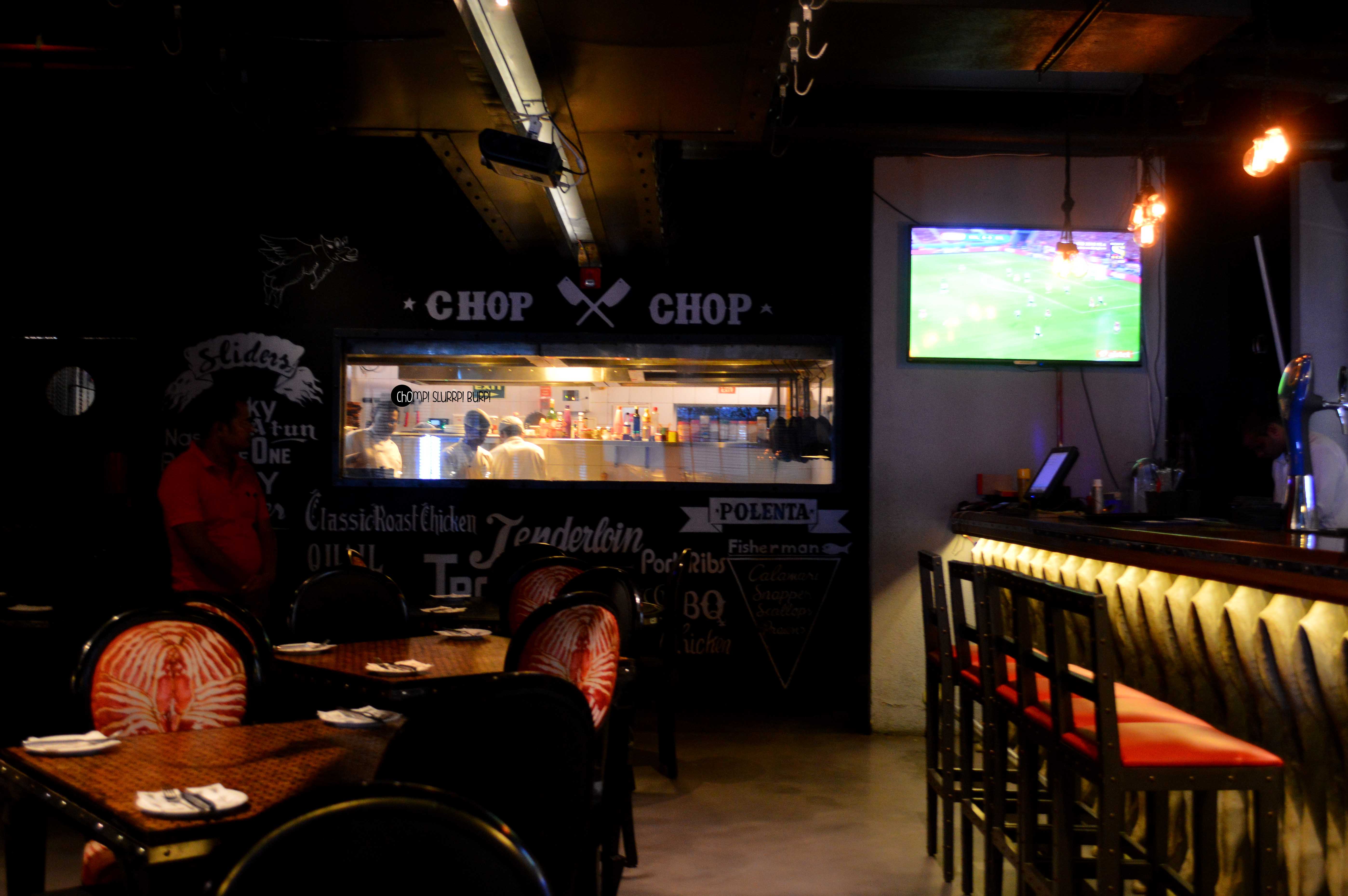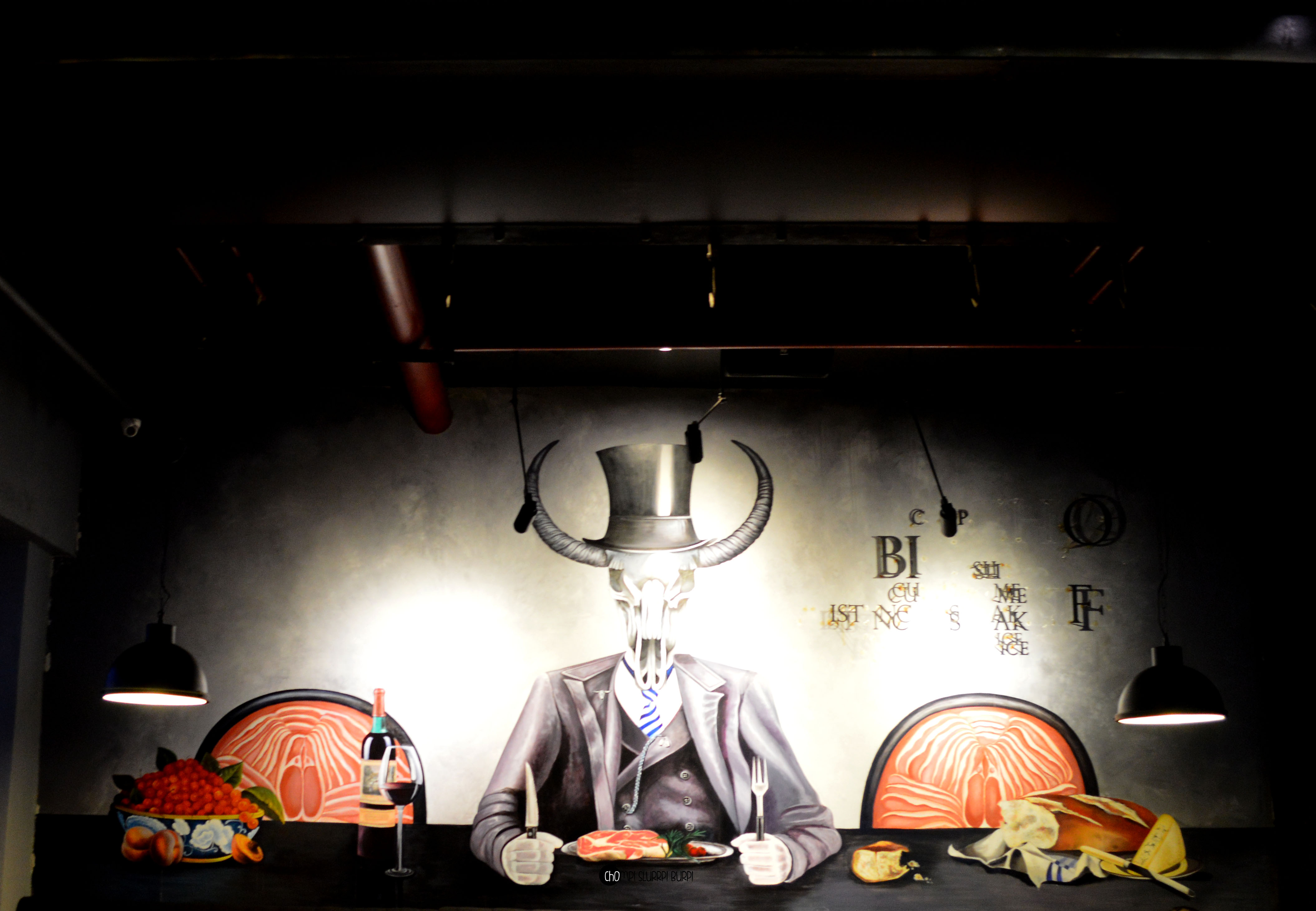 Holy Smoke is one of its kind slider bar offering tantalizing steaks and a range of American favorites. Two butcher knives welcome you to work on your appetite and get ready to tear apart some mean meats. The place is a haven for meat lovers with a really cool graffiti of a meat eater, chairs covered with steak print, dungeon like chains, an open kitchen and big black tables for those with bug appetites. They also have a full fledged bar and an exquisite wine collection to accompany your meats.