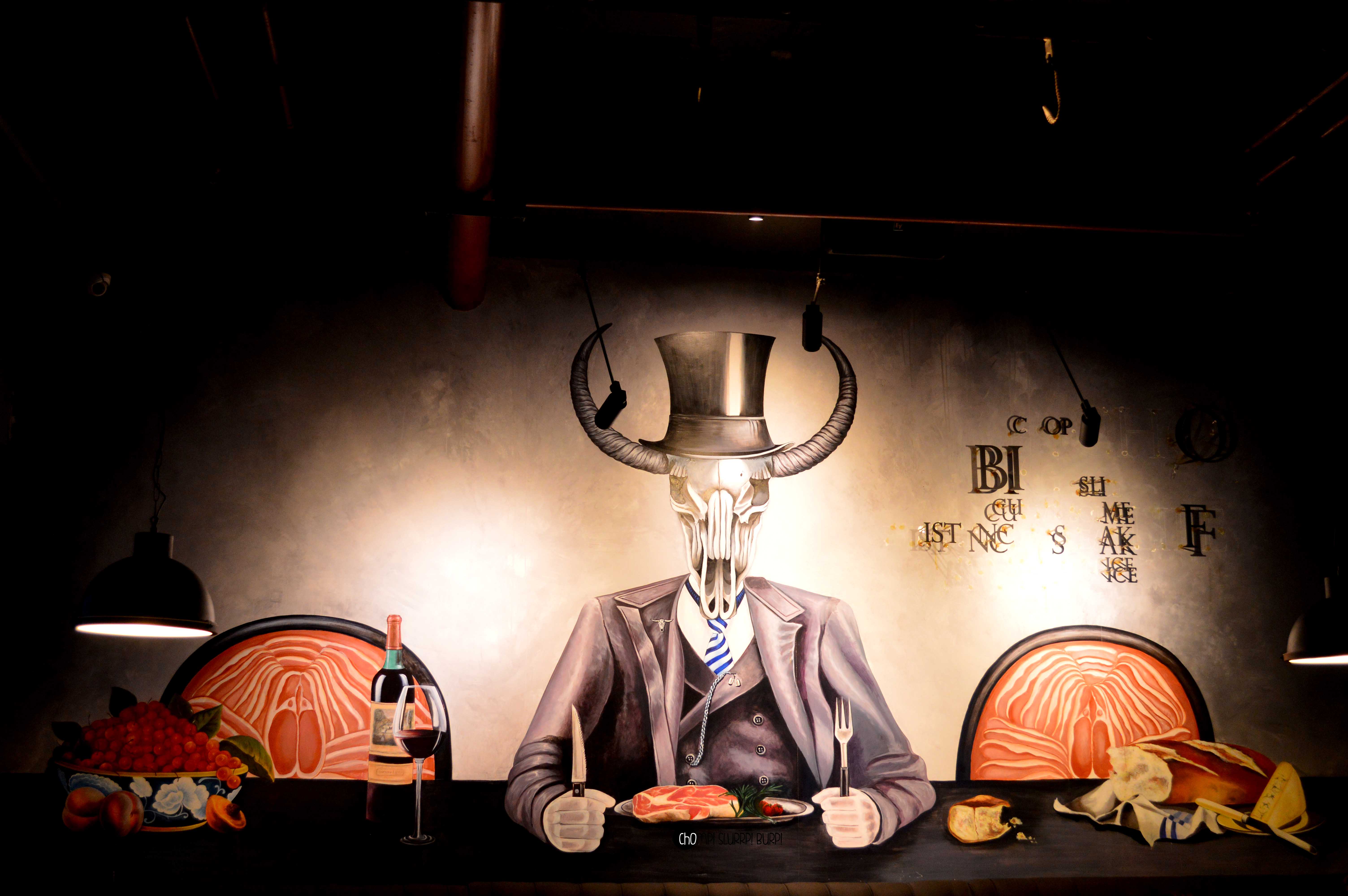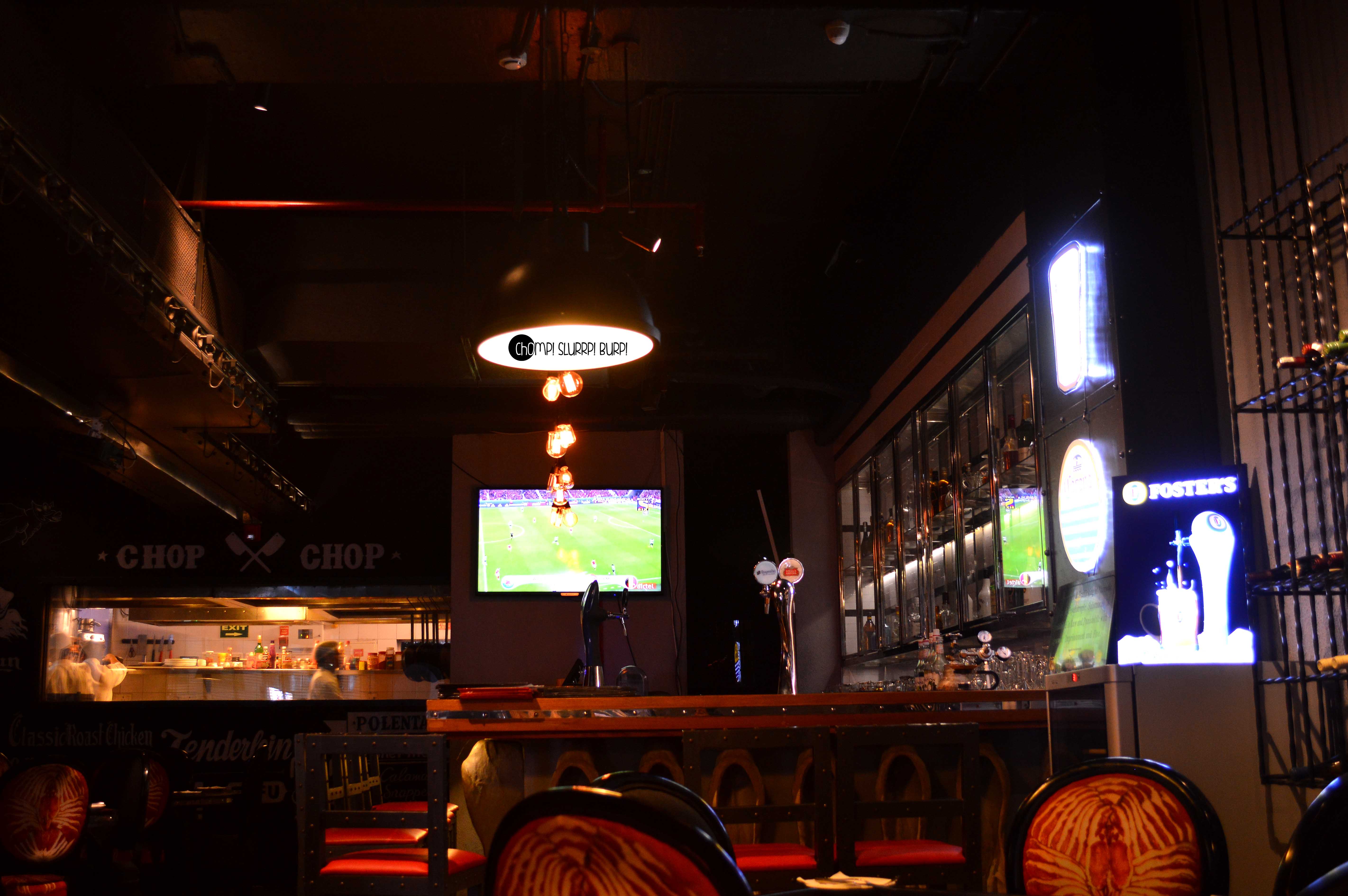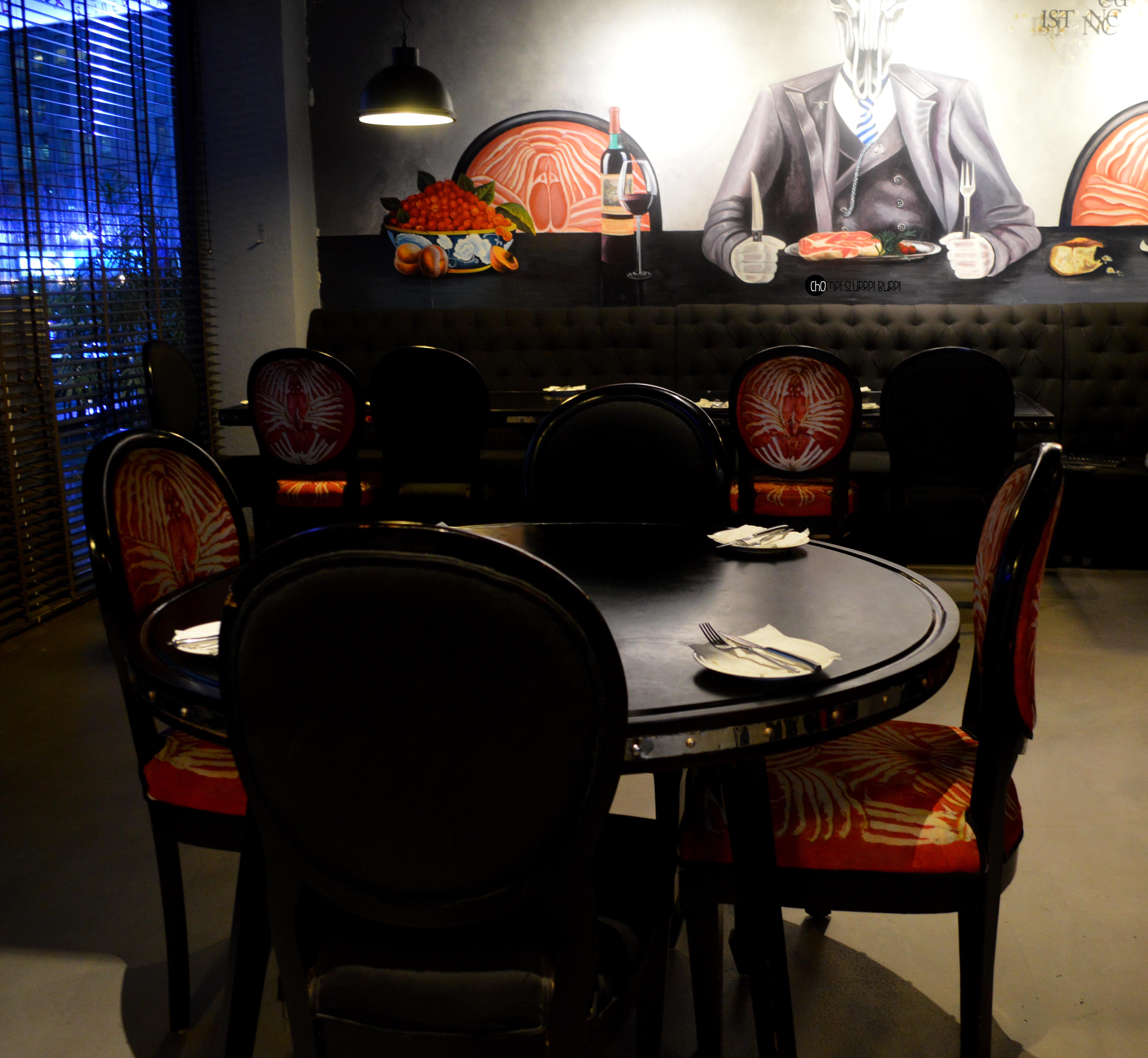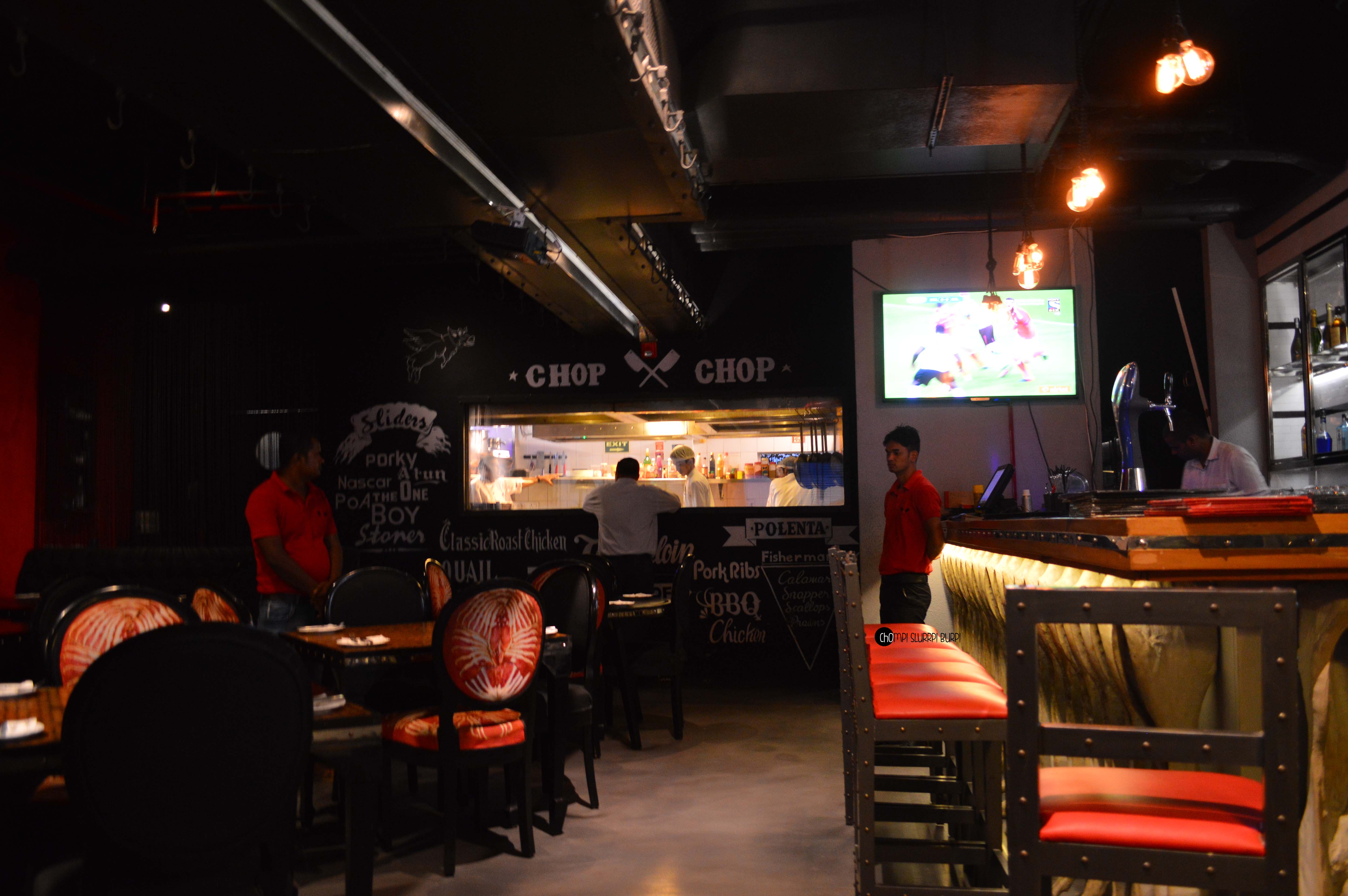Holy Smoke is one of its kind slider bar offering tantalizing steaks and a range of American favorites. Two butcher knives welcome you to work on your appetite and get ready to tear apart some mean meats. The place is a haven for meat lovers with a really cool graffiti of a meat eater, chairs covered with steak print, dungeon like chains, an open kitchen and big black tables for those with bug appetites. They also have a full fledged bar and an exquisite wine collection to accompany your meats.
