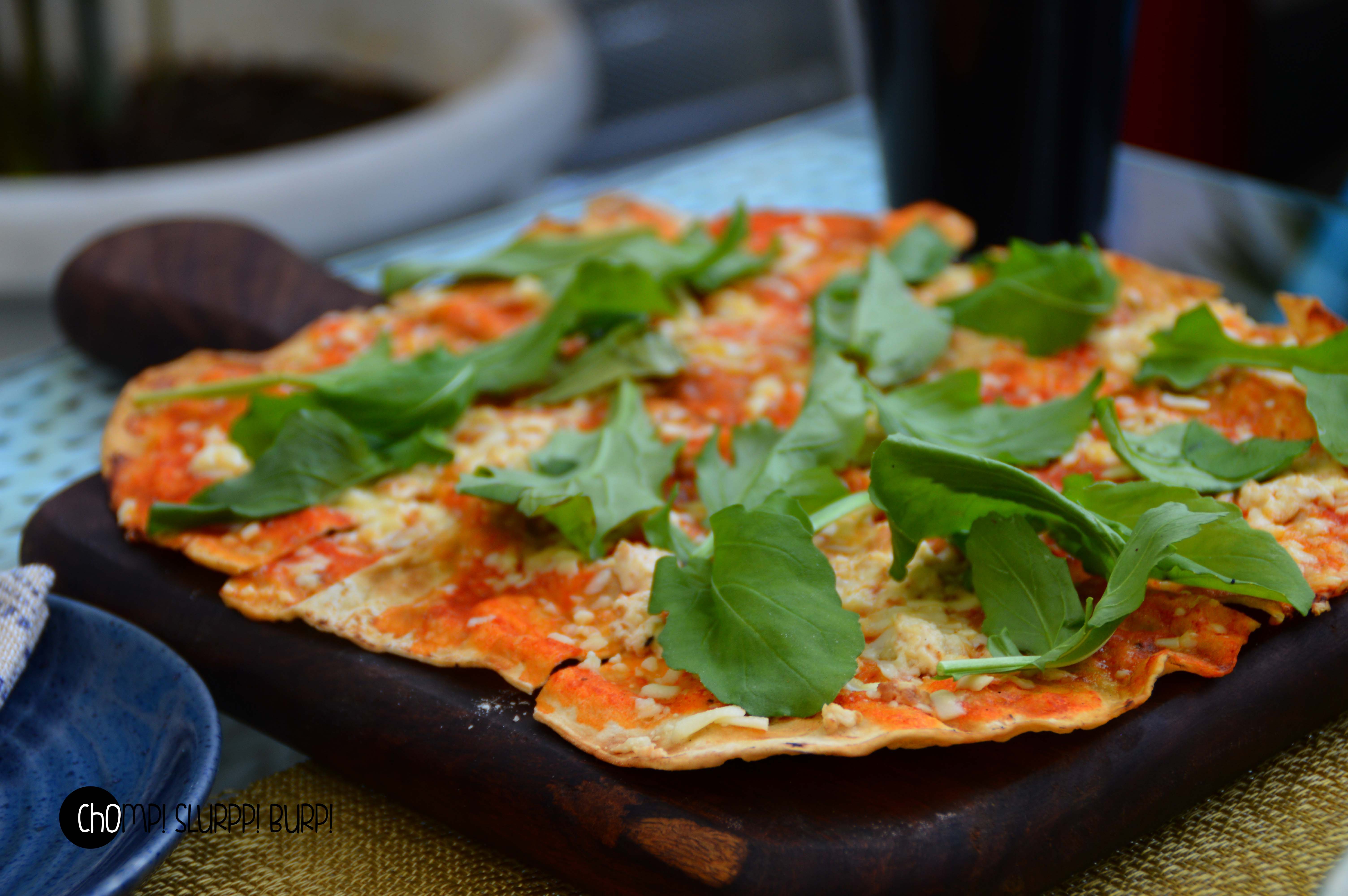 Jurasic Cheese Lavaash Pizza – Thin, wood brick oven fired crust with an assortment of very rare cheese which is not well known but indigenous to the state of Bengal. Salted and Smoked Bandel, kalimpong and arugula. Very novel and distinctive tastes and a truly scrumptious pizza.