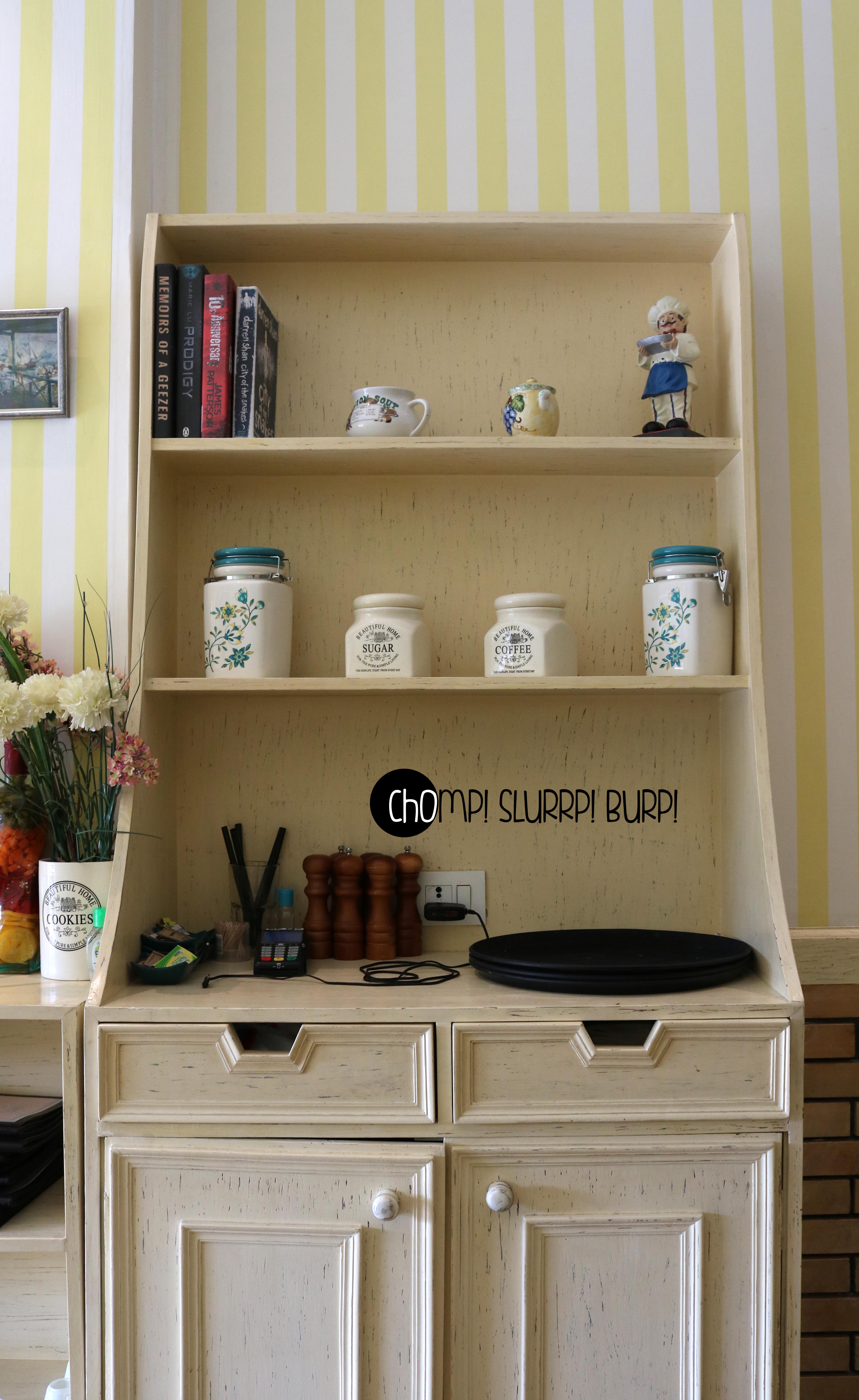 Le Marche – Sugar and Spice is a quaint little cafe located in DLF Galleria. Unlike most places there, this cafe is relatively roomy and makes for an ideal spot to grab a bite. An extension to their bakery shop, the interiors are an amalgamation of vintage and preppy. French-Cafe illustrations, vintage pastel furniture and a very preppy striped yellow wall – flower vase, framed vintage satires and quirky white birdcages hanging outside. The well-lit cafe is fanciful with more than just their whimsically classic ambience.
