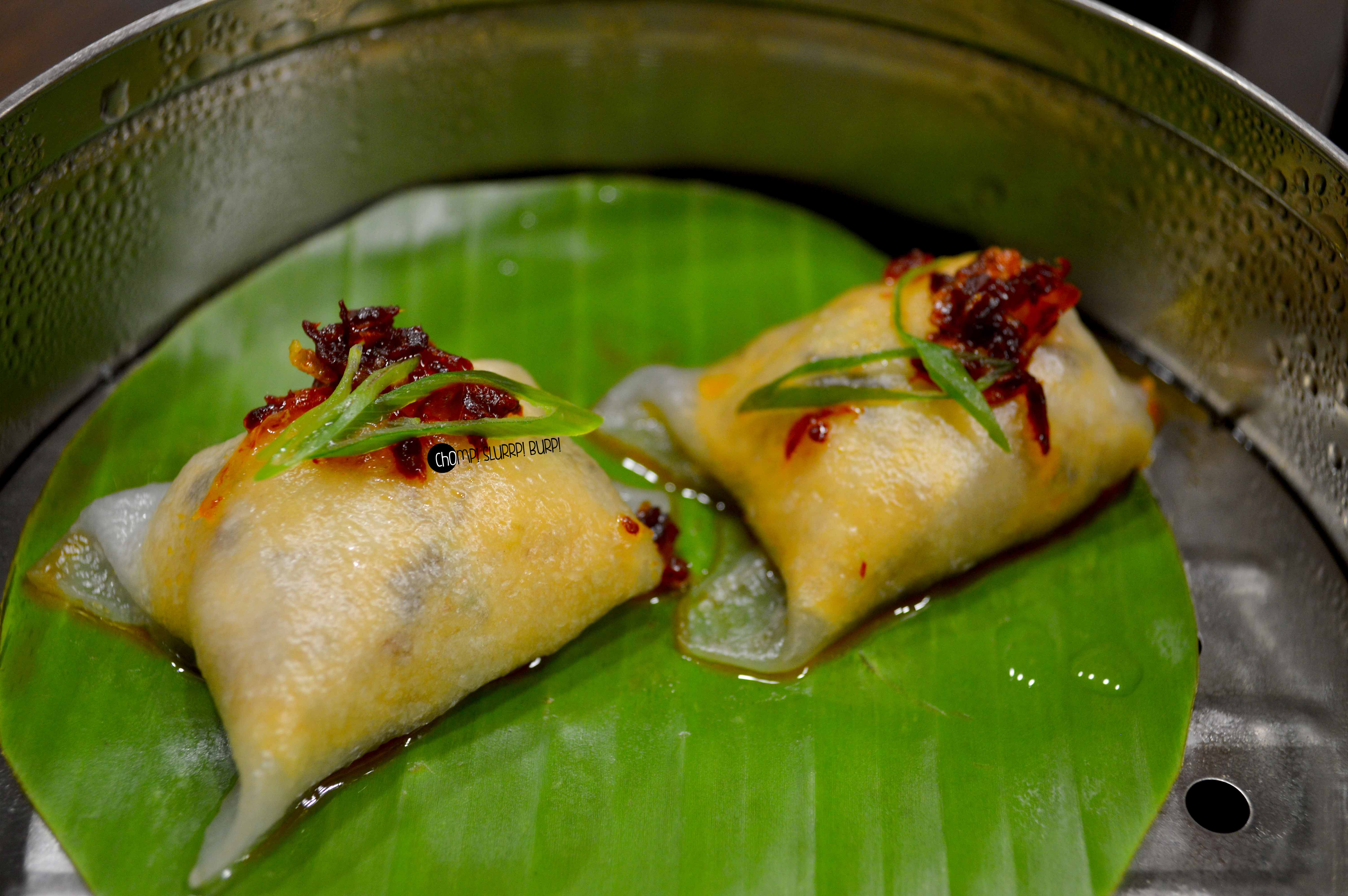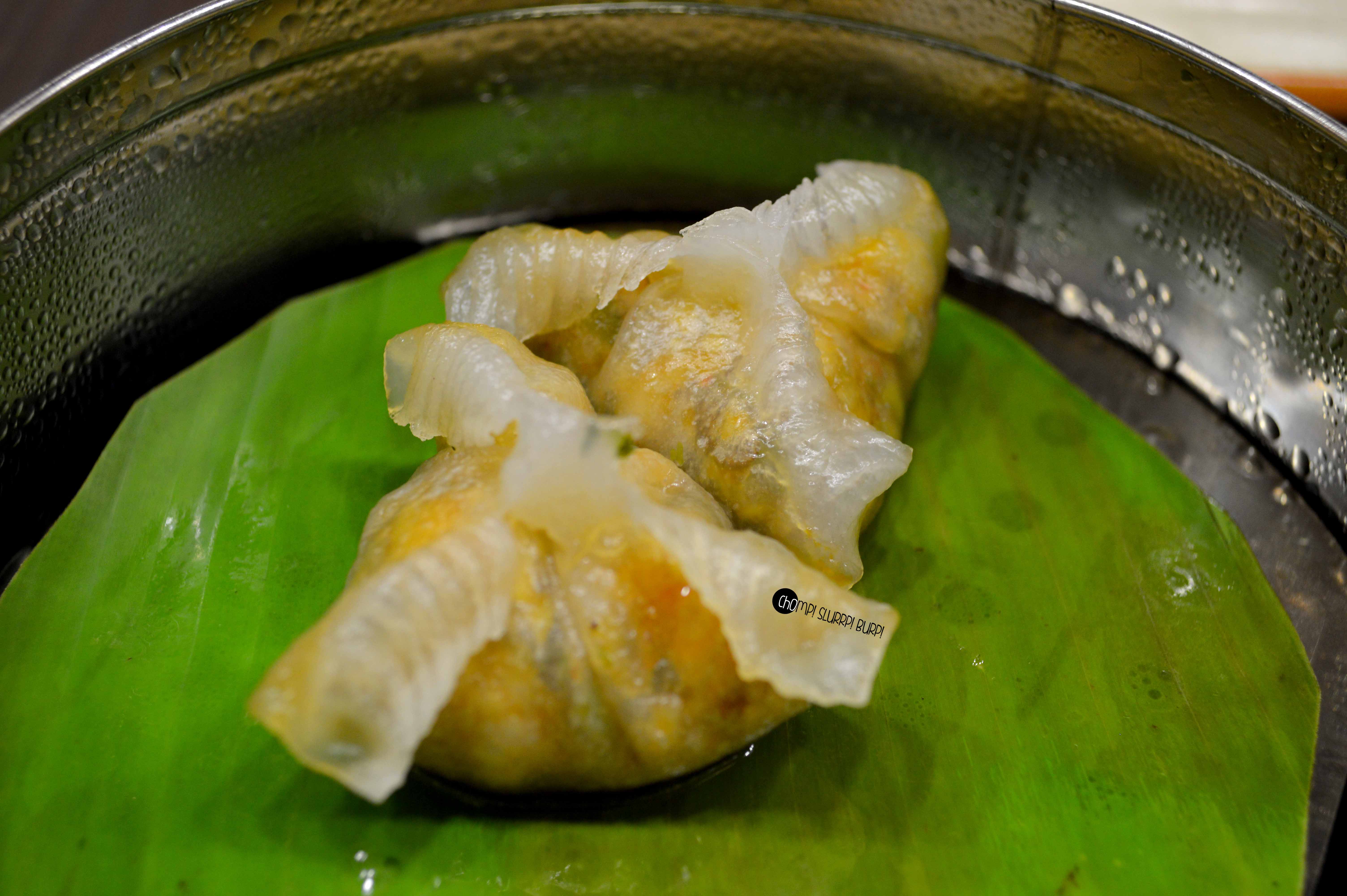 We started with an assortment of dimsums – the meaty ones first – crystal duck, prawn hargow, pink crab and chicken and chilly oil. The dimsums were ravishing – they come in steel steamers instead of the widely popularised bamboo ones . Thin skinned and well stuffed with fresh meat, gobble up the dimsums while they are still hot, and mean piping hot. Loved the chicken and chilly oil and pink crab ones.