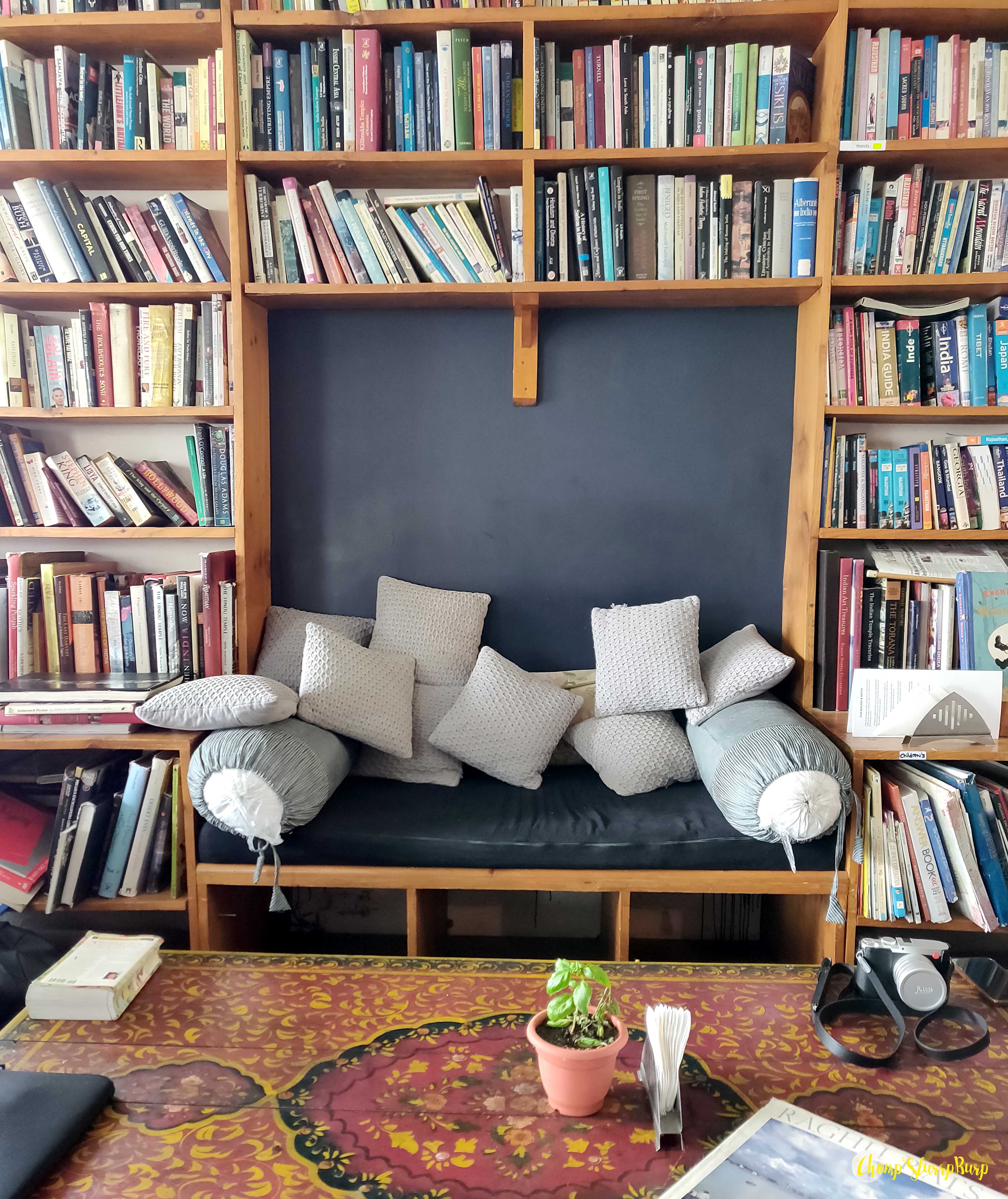 The dreamiest work location I have ever come across, Illiterati Books and Coffee, till a few years ago was a well-kept secret of McLeodganj. And now, the #1 rated restaurant on Trip Advisor. The coziest nooks full of loads and loads of books, freshly brewed coffee and tea and comfort food with a breathtaking view of the hills.