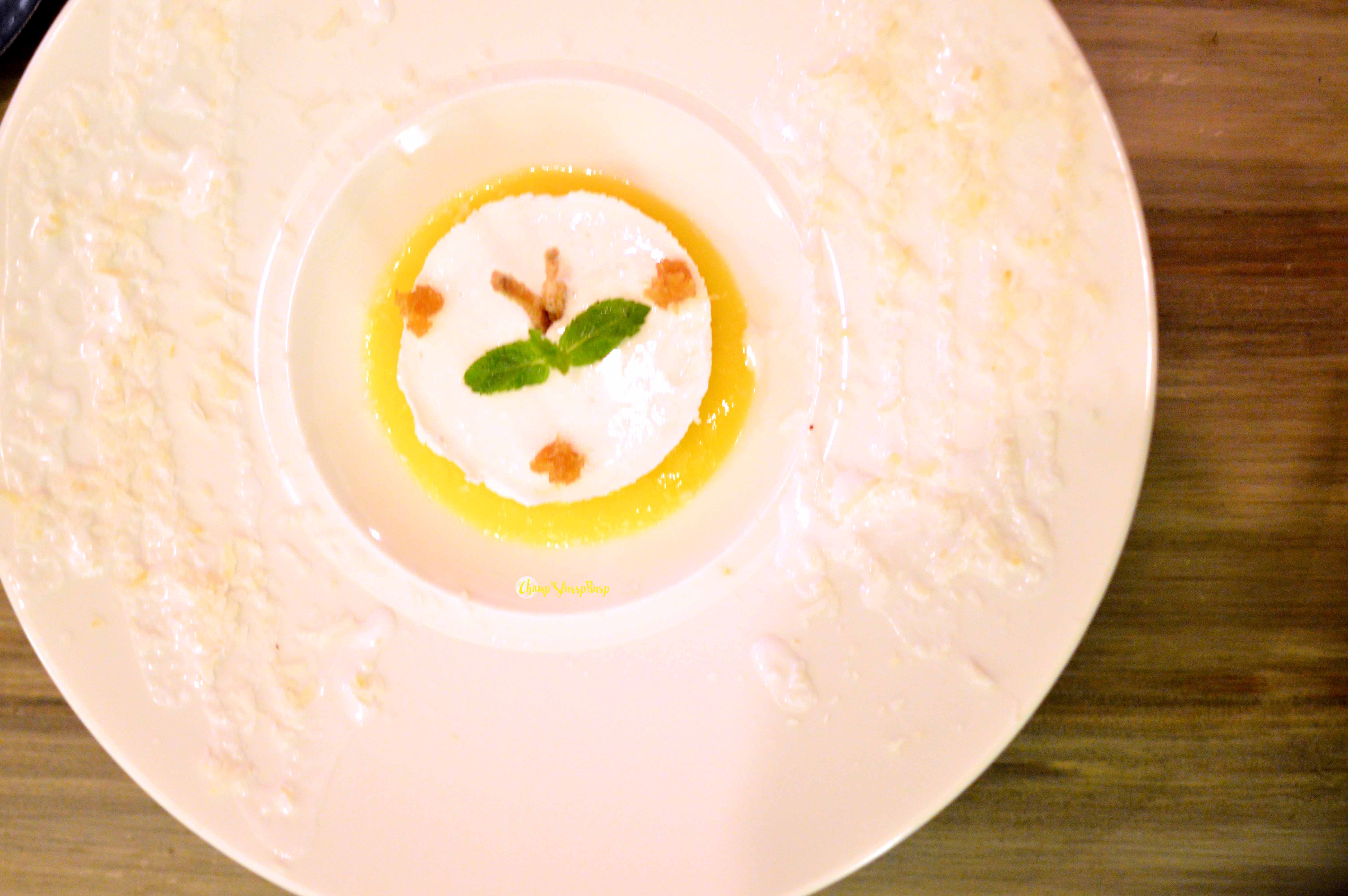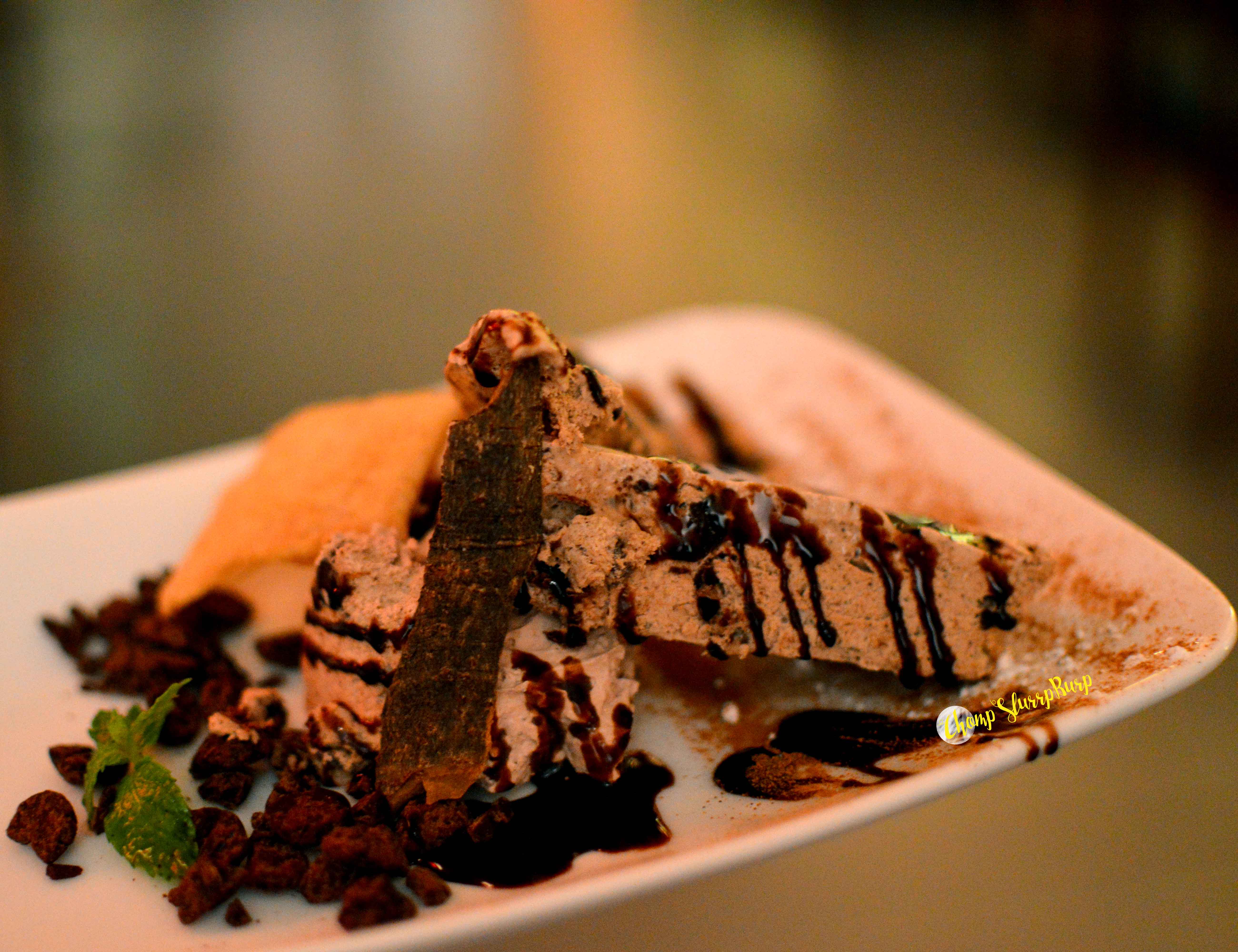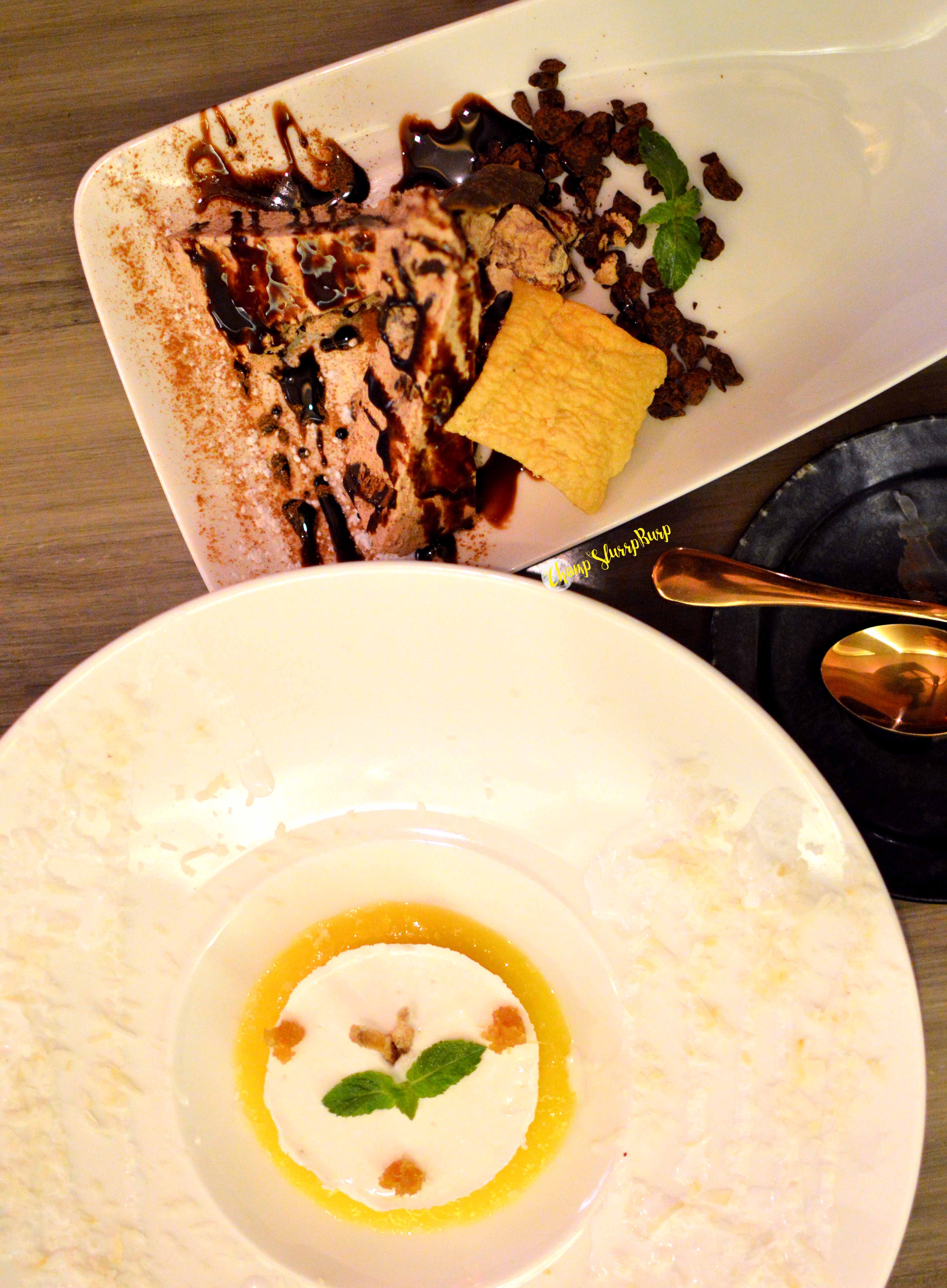 Course 5 – Dark Chocolate Semifreddo – Semifreddo is a kind of semi frozen dessert, somewhat like a frozen mousse. Belgian chocolate semifreddo with dark chocolate bits and chocolate cream – this delish chocolate overload with a smooth texture is simply heavenly. Coconut Panna Cotta – coconut panna cotta served with fresh mango pureé and homemade ginger jam – the intermingling flavours together are brilliant and so exhilarating.