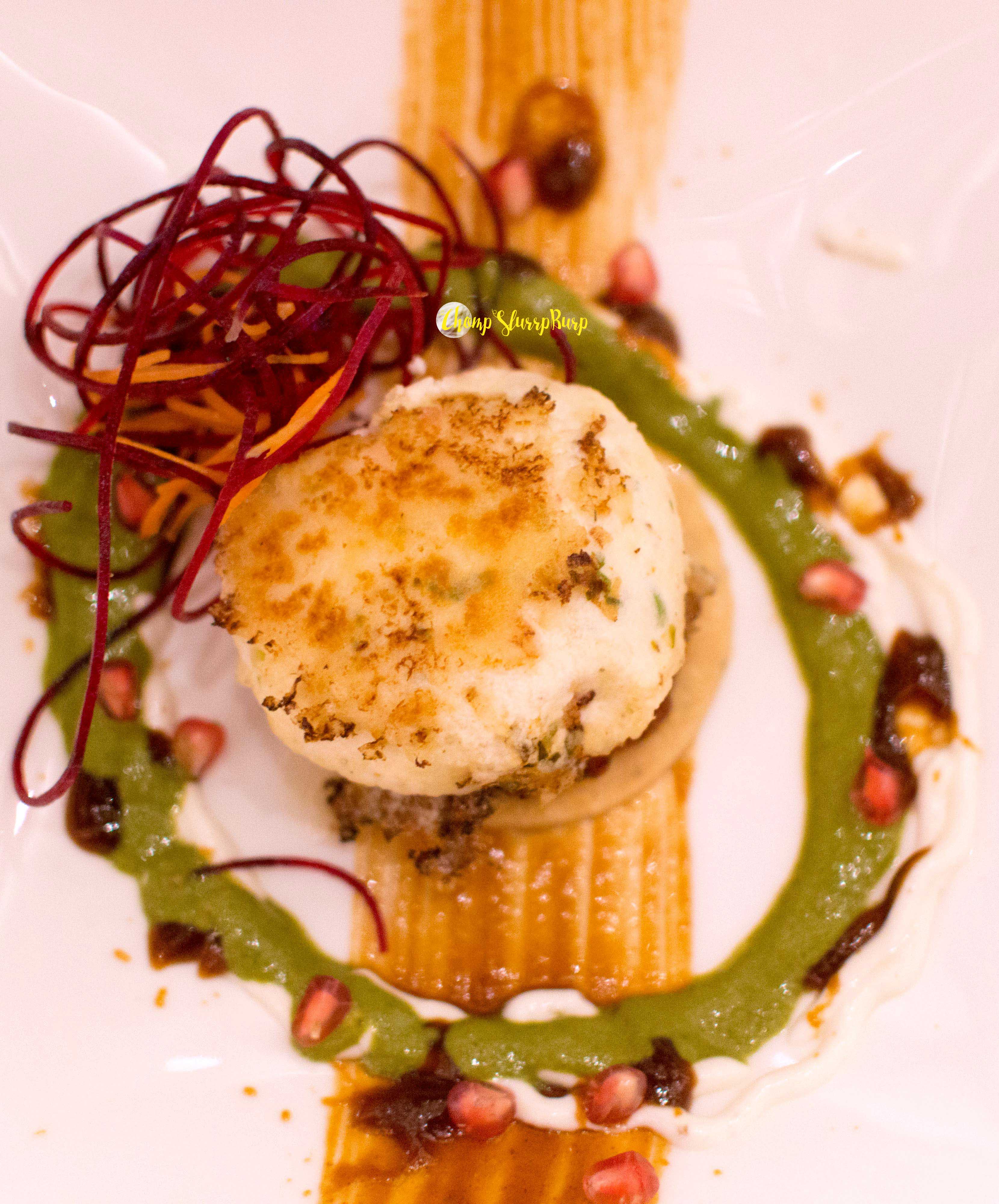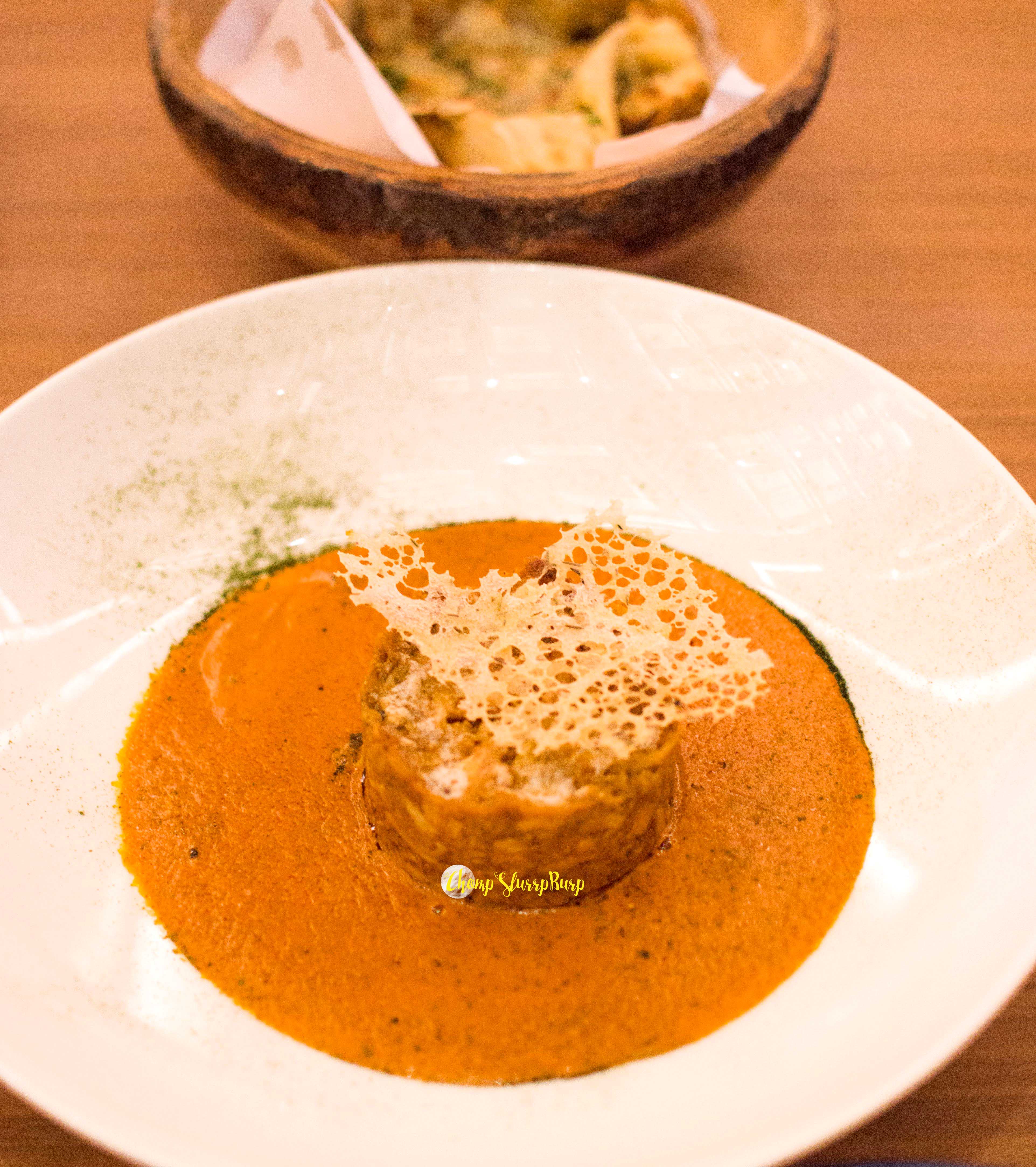The food however was a different and tantalizing story altogether! We started with Roti, Chutney, Achar – an enticing take on the bread basket – khasta naan, mini missi roti and masala bread rusks served with an array of chutneys. Fig chutney, pomegranate chutney mint chutney, onions and mutton pickle if you prefer meat, the fig and pomegranate chutney had such gorgeous flavors that you can’t help but gobble it all up.