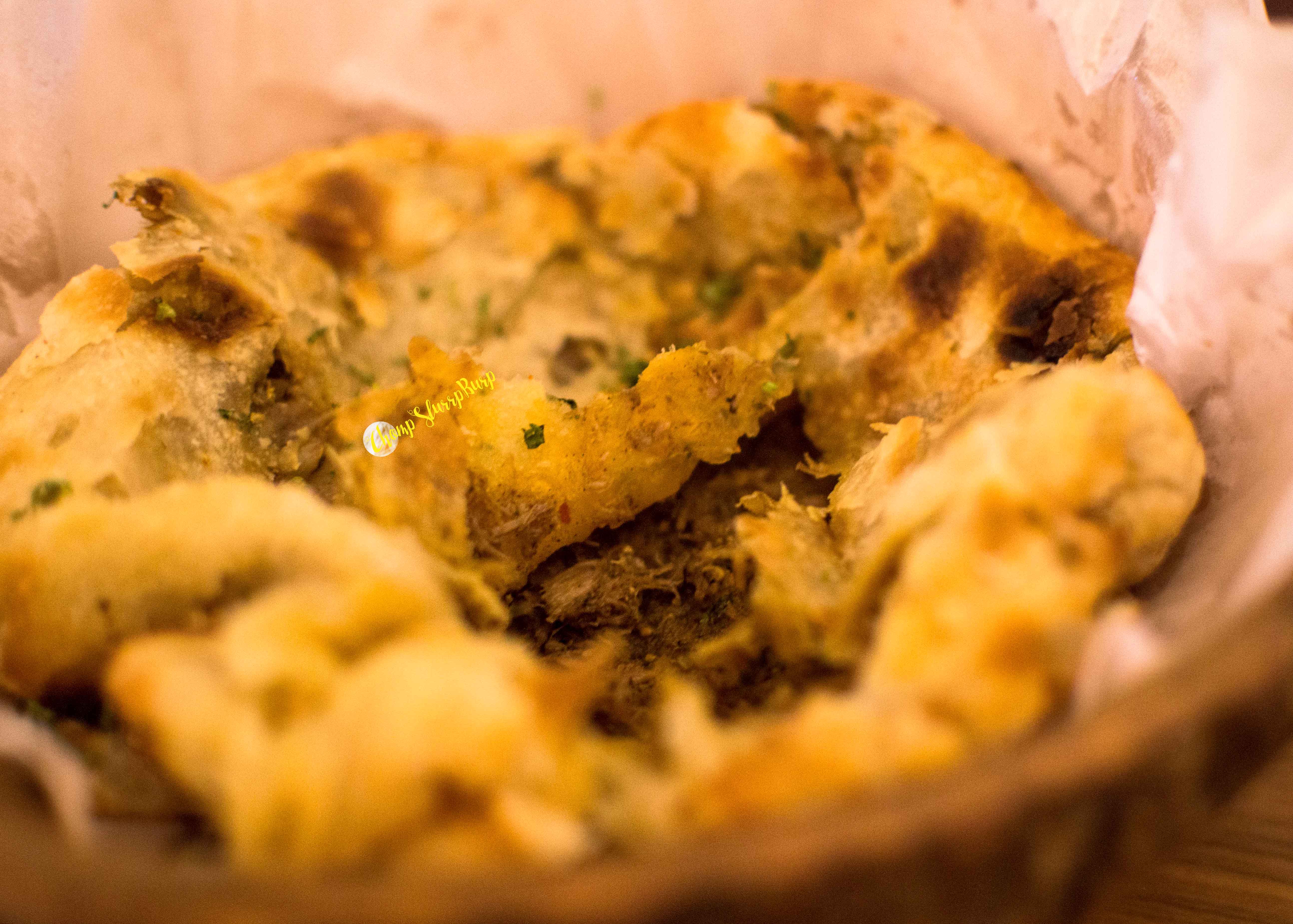 For mains, we tried their Signature butter chicken and achari meat kulcha. The butter chicken, plated most exquisitely and served with a Parmesan crispie. The succulent chicken bits with a creamy curry. The achari meat kulcha was a soft flaky piece stuffed generously with spicy minced mutton.