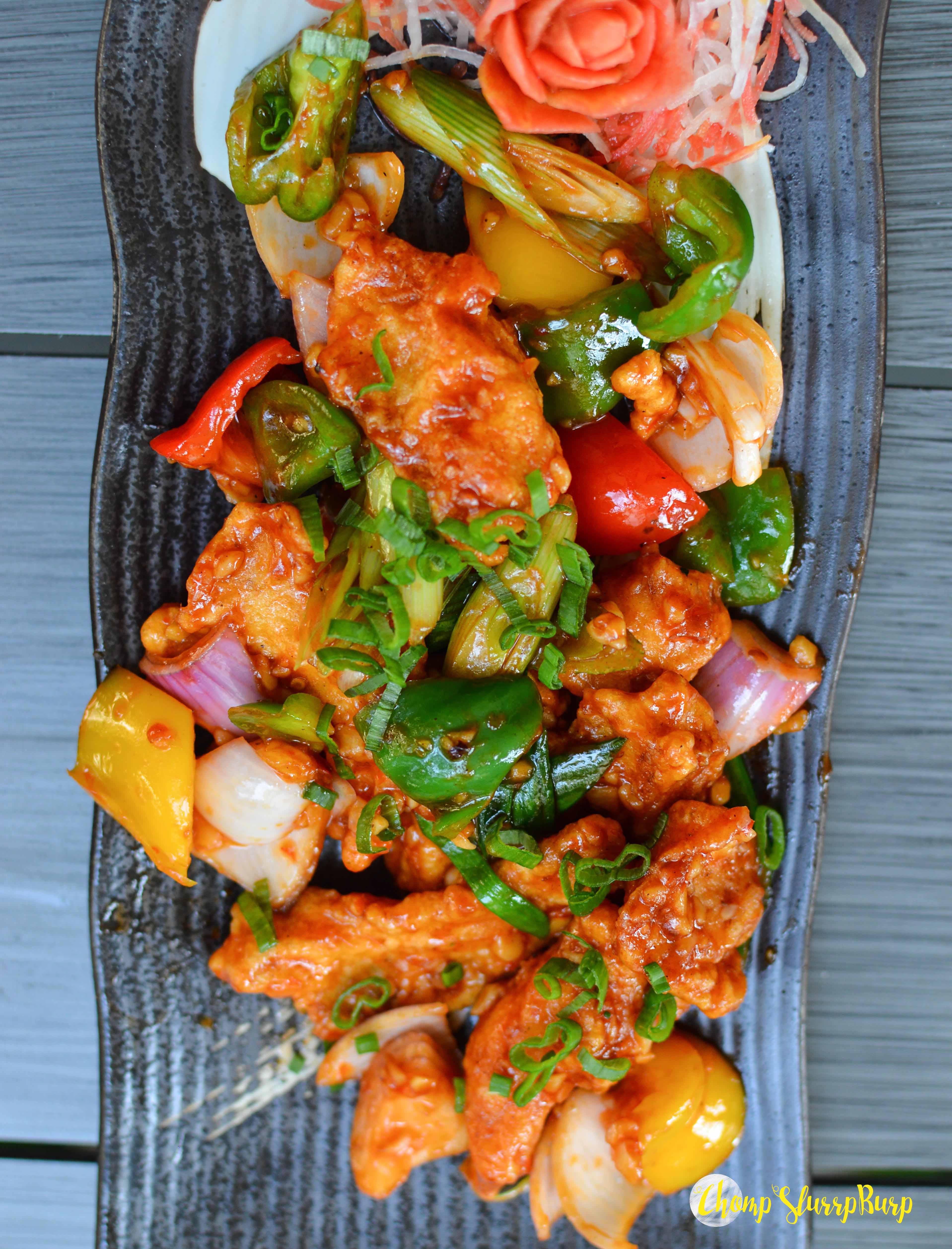 We started with Chicken Abodo– an authentic Philippines dish with succulent pieces of chicken tossed in soy with garlic bits and chunks of spring onion. Singaporean style fish wok tossed river sole with Asian herbs and spices – crunchy fried fish with onions and bell pepper. Both dishes have flavors reminiscent of street fare but would make for good bar bites.