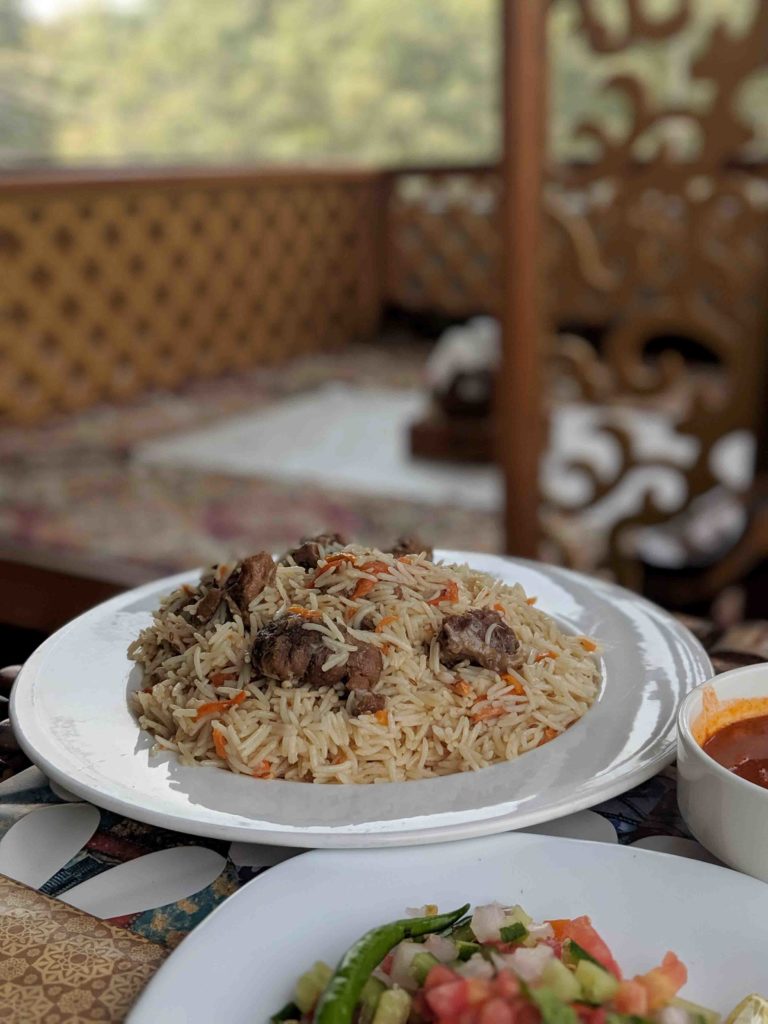 Next, Kazaan Kebab, huge chops, served with a side of fries and kachumber salad. The lamb chops weren’t marinated, nor had any dressing, but they were just cooked in their own juices and oils. I like subtle flavours, but this was, uhh, bland, for the lack of a better word. Uzbeki Pulao spiked with saffron, raisins and bits of chunky boneless pieces of lamb. Served with a bowl of Rajma and fresh salad. The pulao was also a wild choice as the flavours weren’t very profound. Not to mention, both the lamb and the pulao were rather greasy.