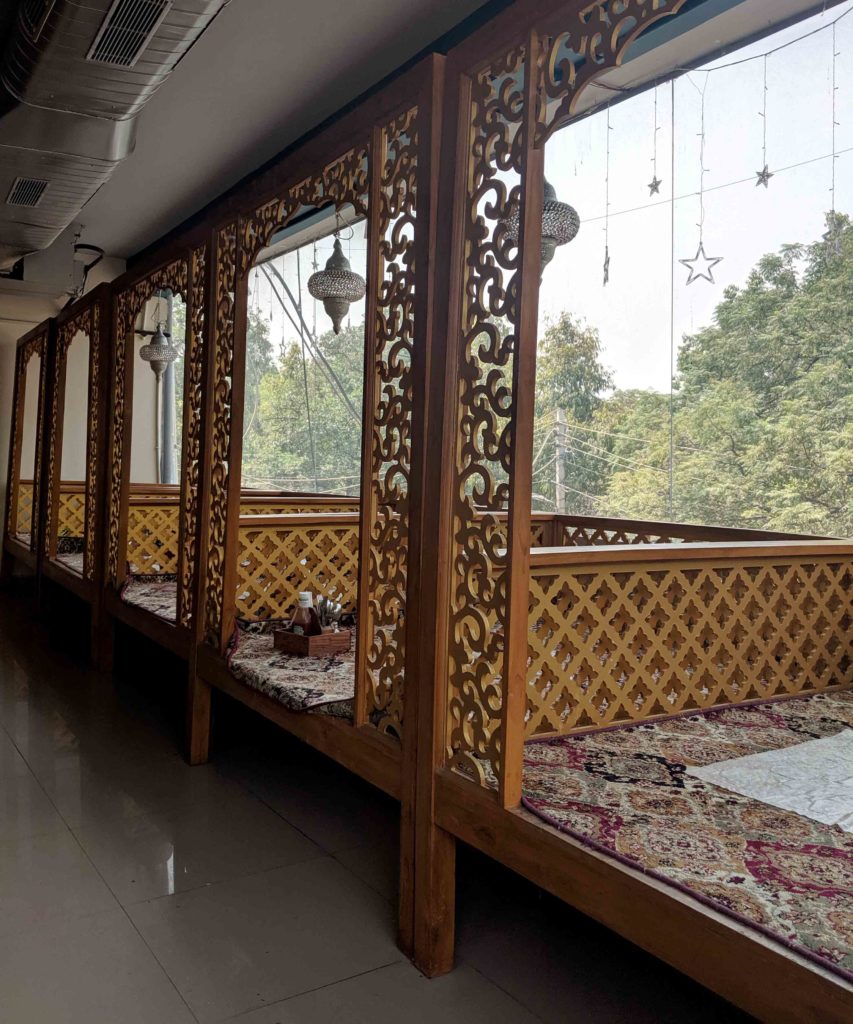 Lajpat Nagar is famed for its Afghan lane and the many eateries mastering in the cuisine and Nooshe Joon is among some of the best. Many Afghanis found refuge in the now bustling market of Lajpat Nagar. The area is now a gem for naan bread, Kormas and kebabs. Nooshe Joon is a spacious restaurant on the first floor. The interiors are quite charming with lamps, huge glass windows and the traditional communal family-style seating.