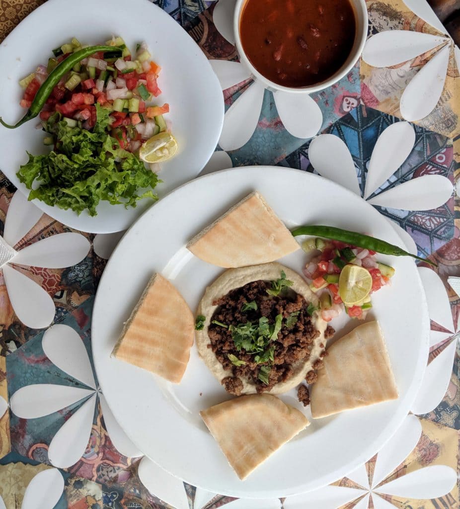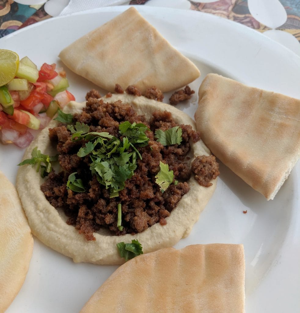 Having tried Persian, Parsi, Armenian and Lebanese cuisines in the city in the past, we indulged in some more meaty preparations. We started out with Hummus with minced meat and pita bread. Crackling keema with smooth, well ground hummus made for a brilliant start.