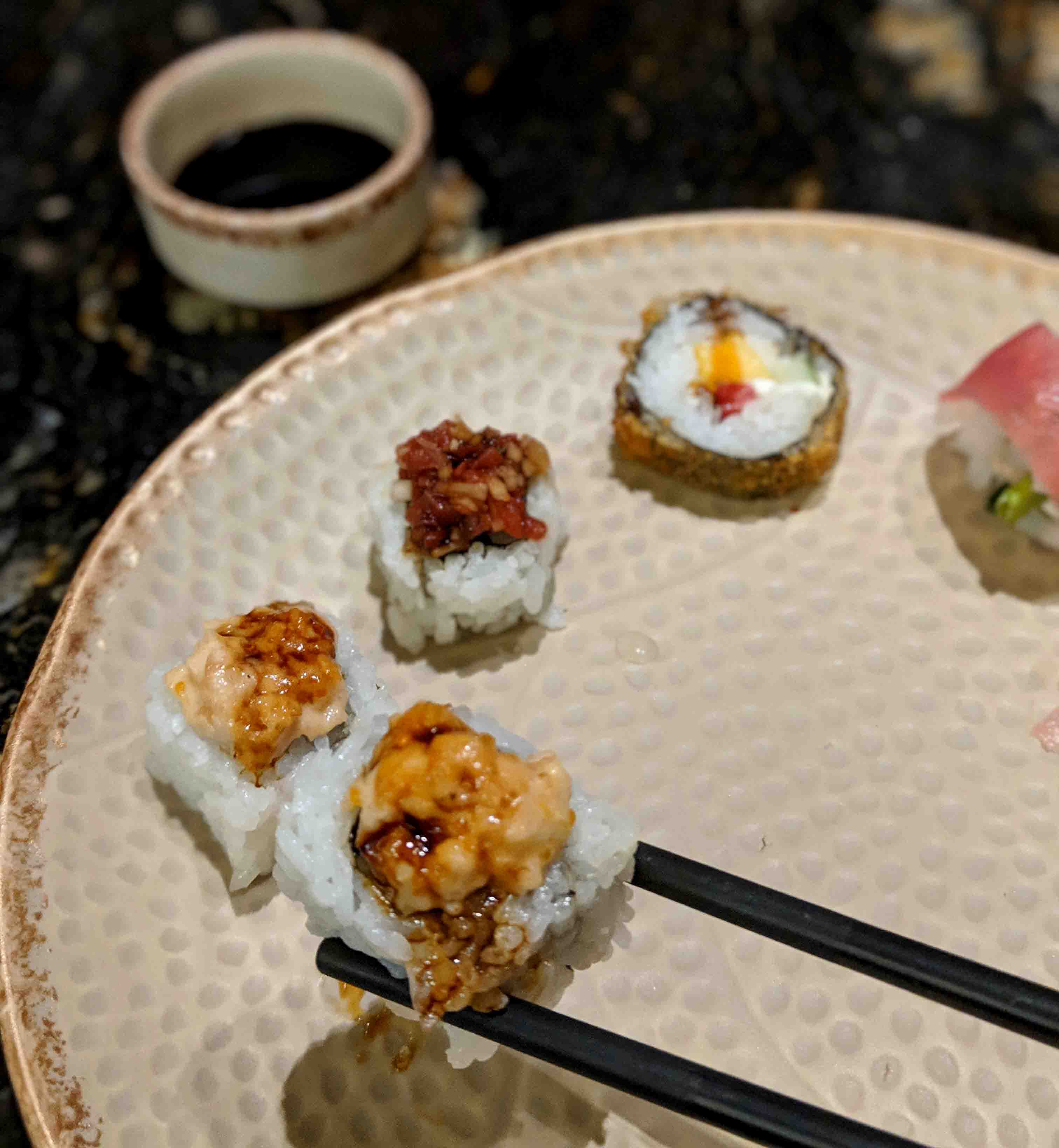 I have recently been hogging on so much sushi that I needed a winner to make me reach out for more. And I found one. The Crunchy Yasai Roll was amazing. Crunchy fried nori, cucumber, carrot, cream cheese and a drizzle of soy sauce.