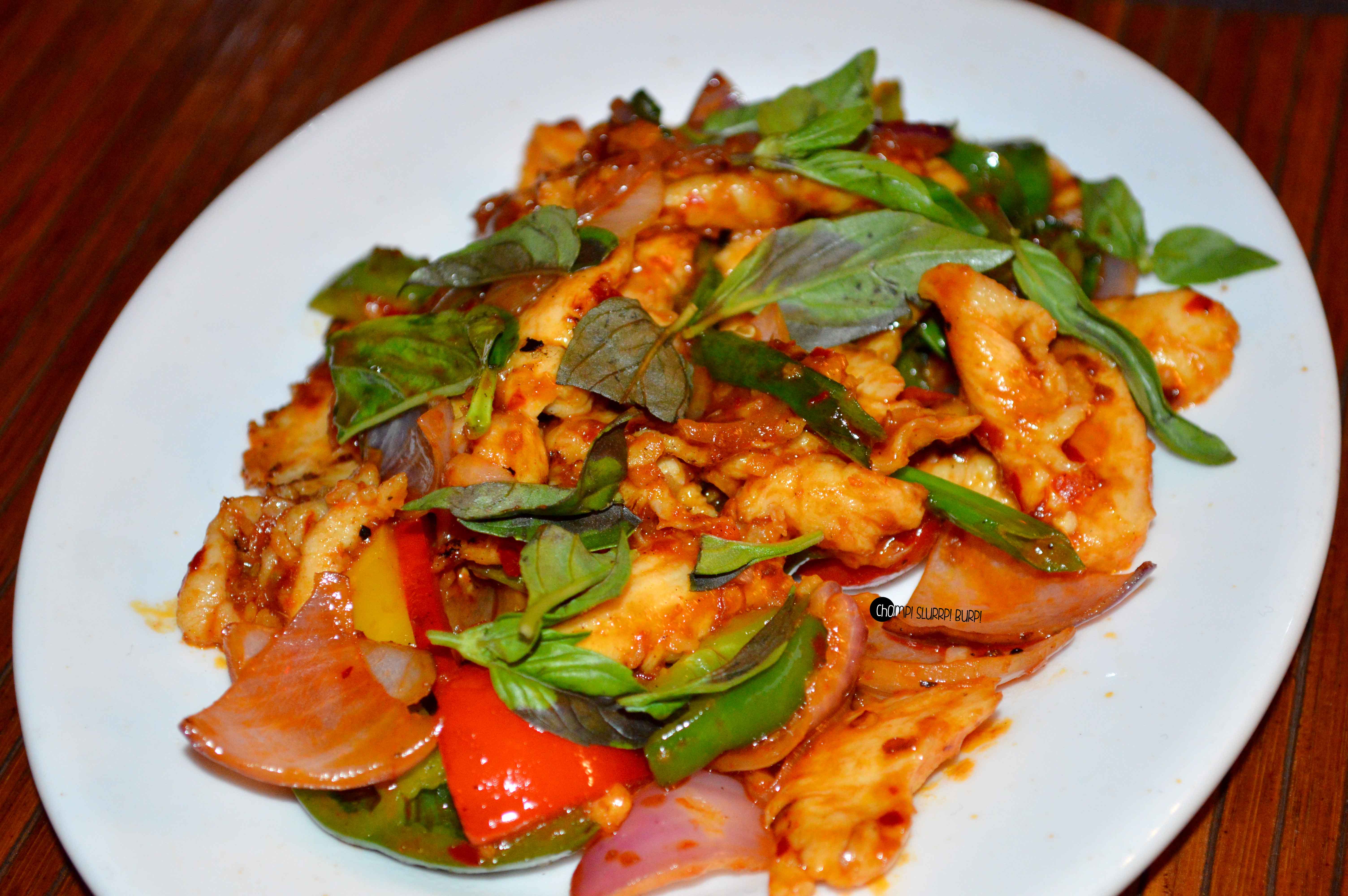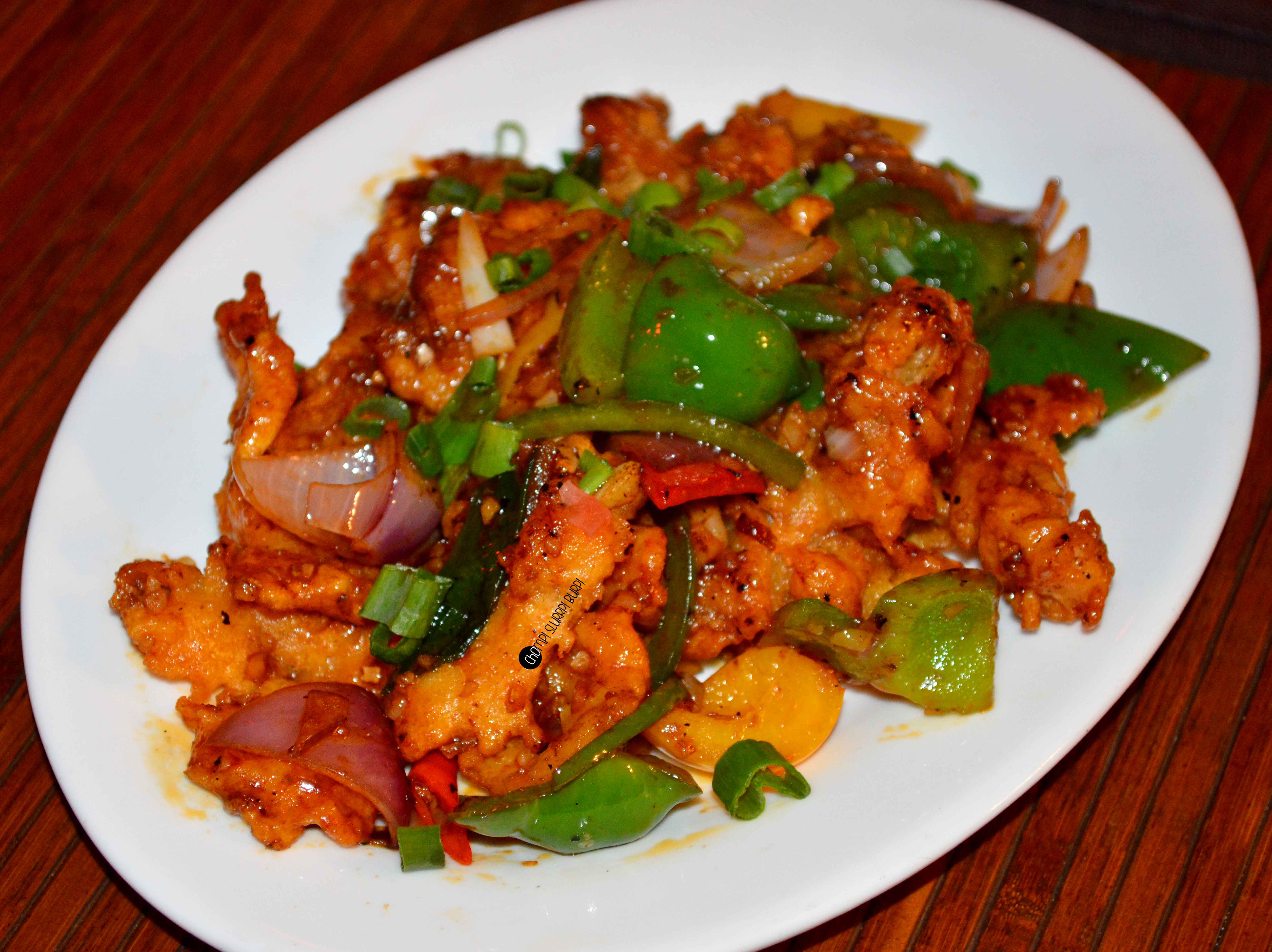 Basil leaf chicken – juicy chicken pieces infused with basil flavor to the very core of the meat pieces, tossed with bell pepper and fresh basil leaves. The chilly fish dry – at first the fish excels with its freshness but a being a tad less chilly makes it lose its stature.