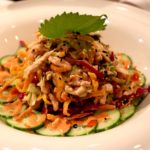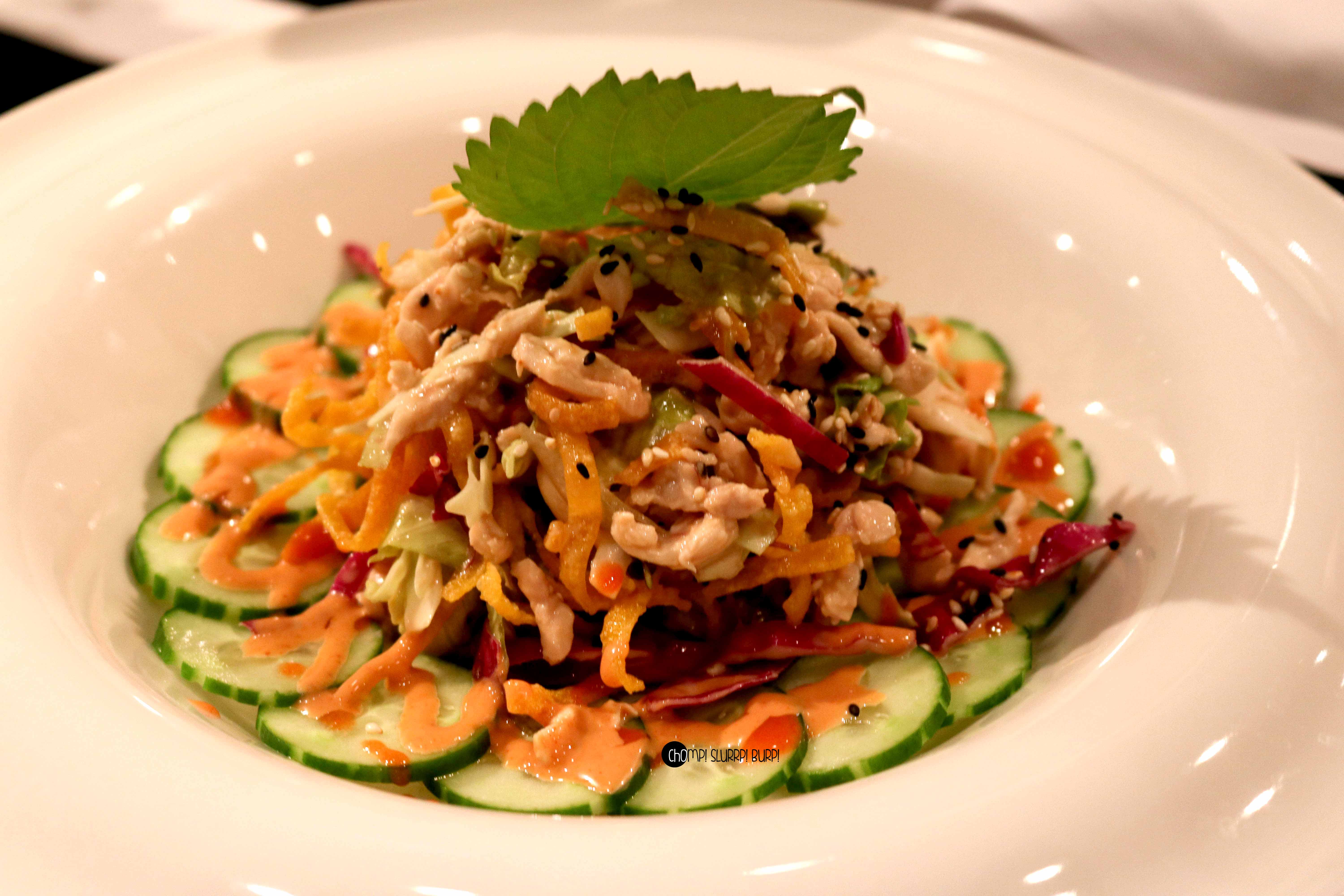 Shredded Chicken marinated in a creamy sauce and tossed with wonton crisps. All this on a bed of cucumber and Cabbage, the crispiness of was well balanced with the tender chicken. A must try!