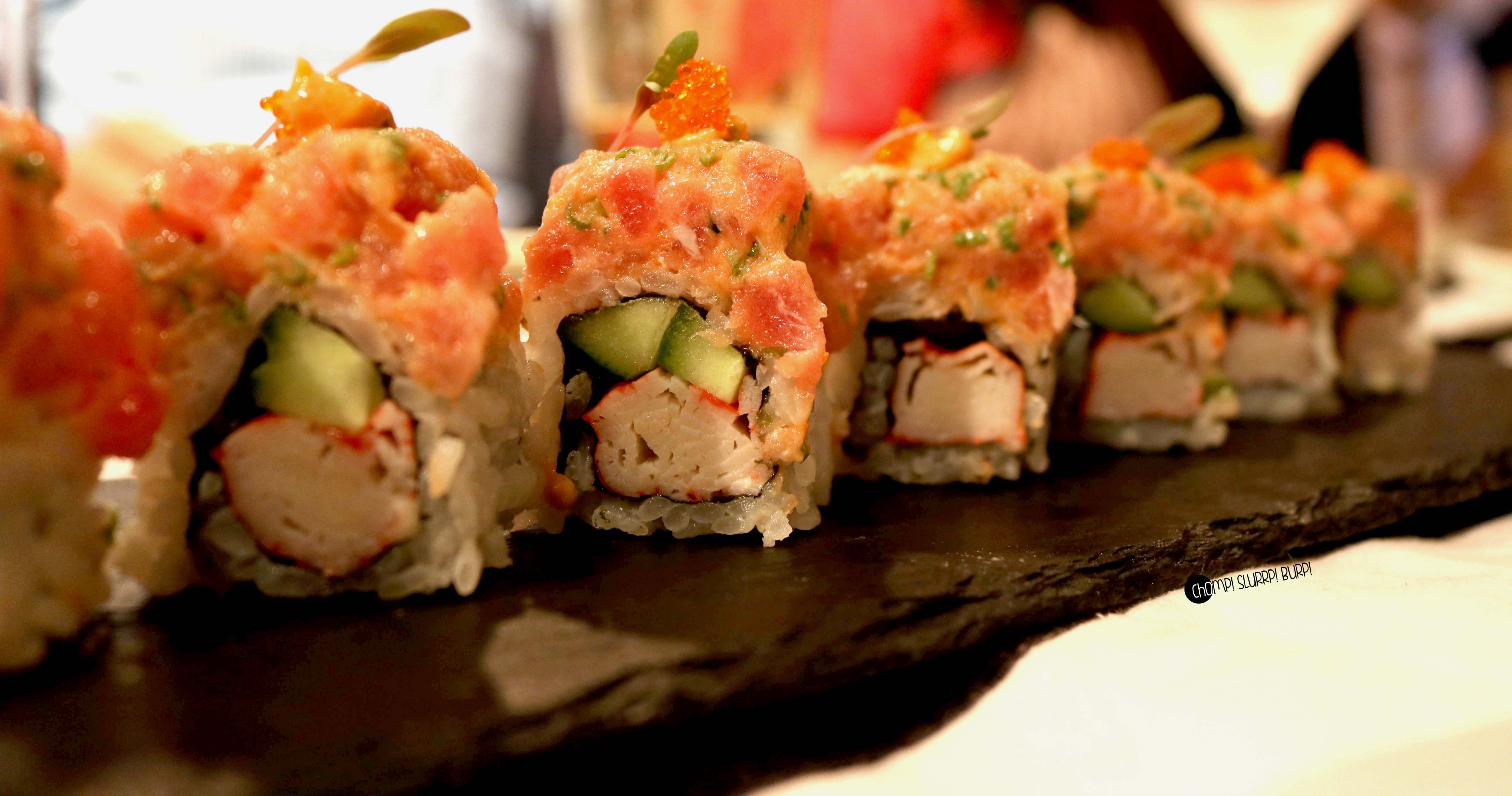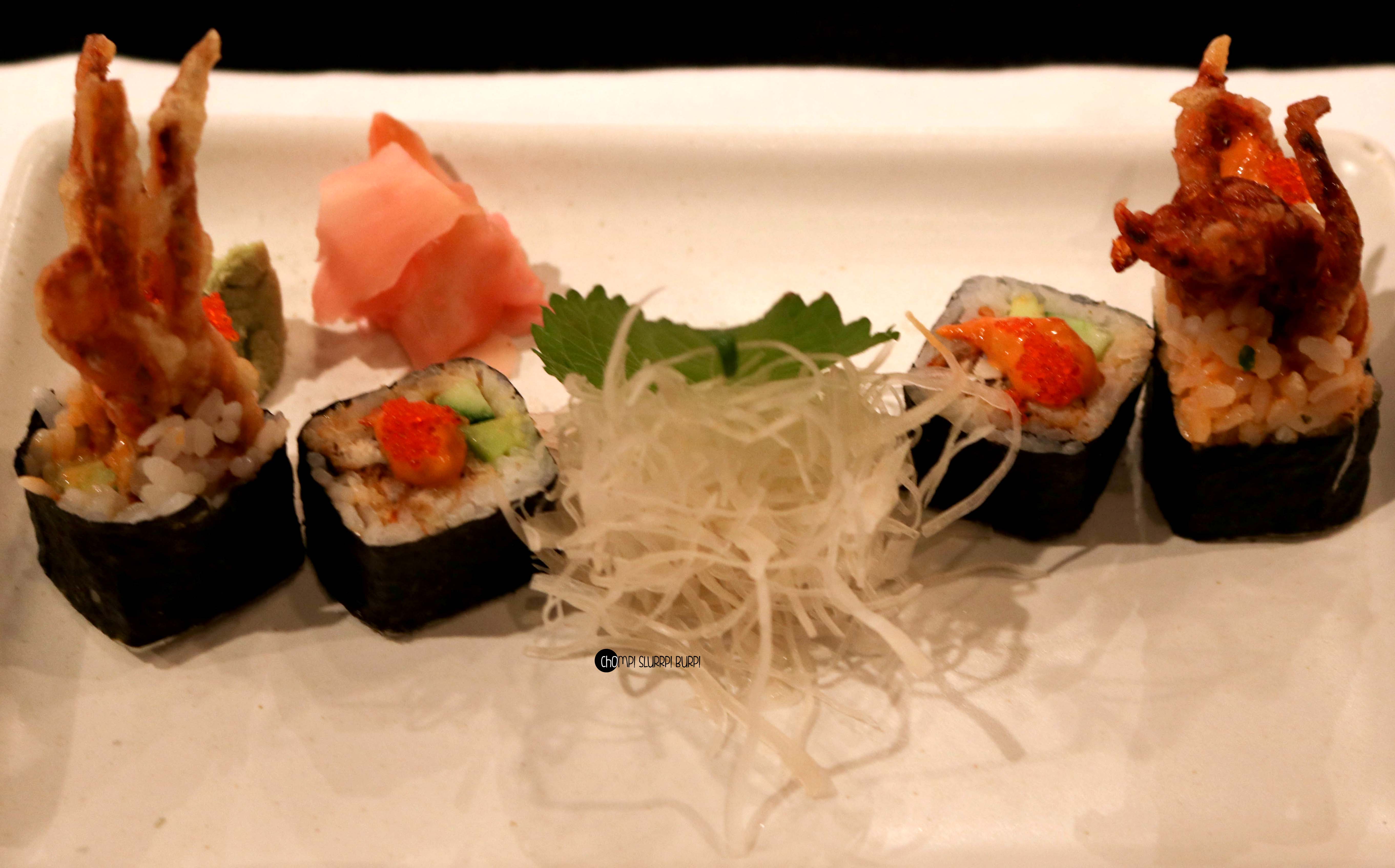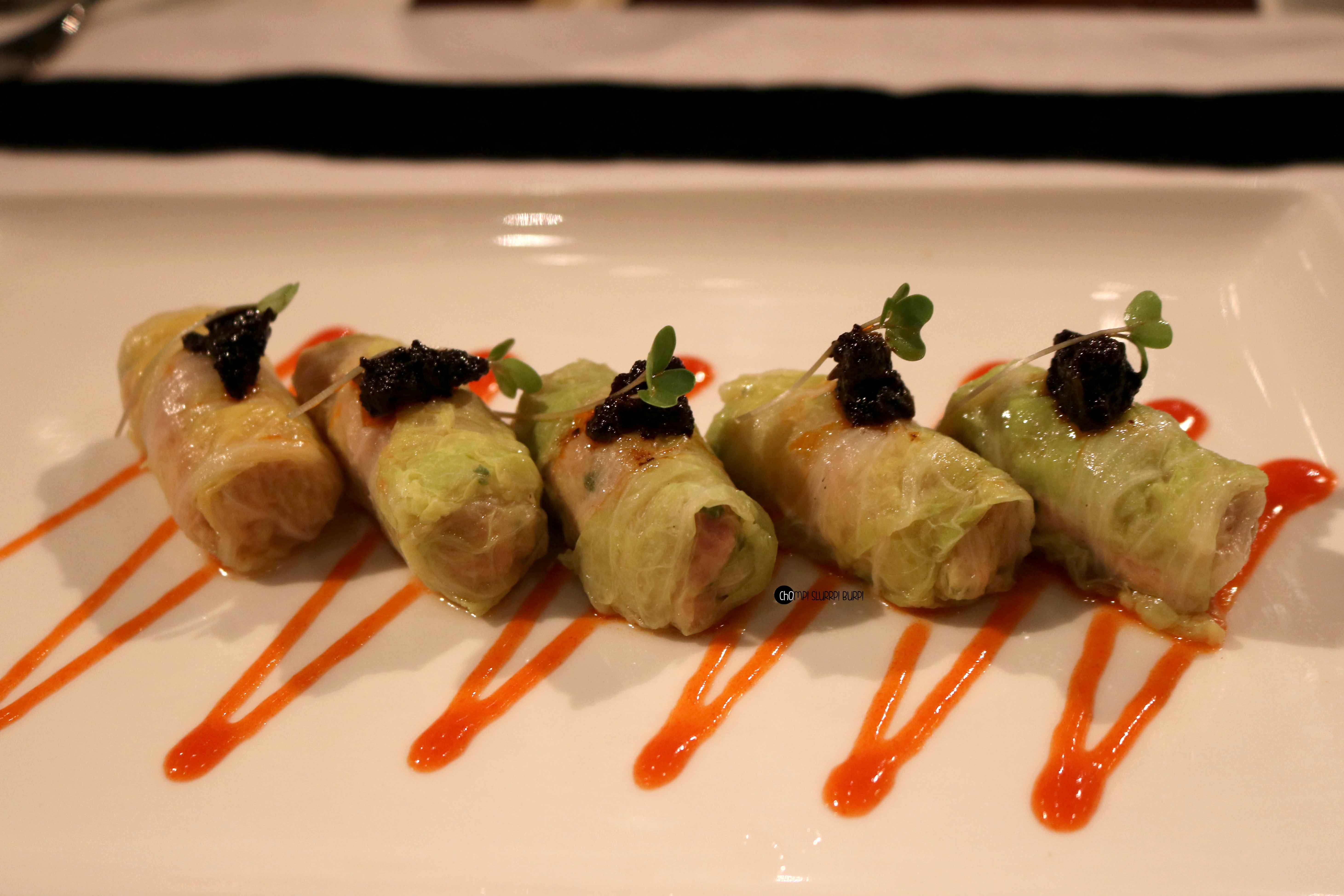 Then was the turn of Spicy red dragon roll, Spicy salmon roll, Chicken salad and Steamed Chinese Cabbage roll. Both the red dragon roll and the salmon roll were great but the chicken salad was best out of the lot.