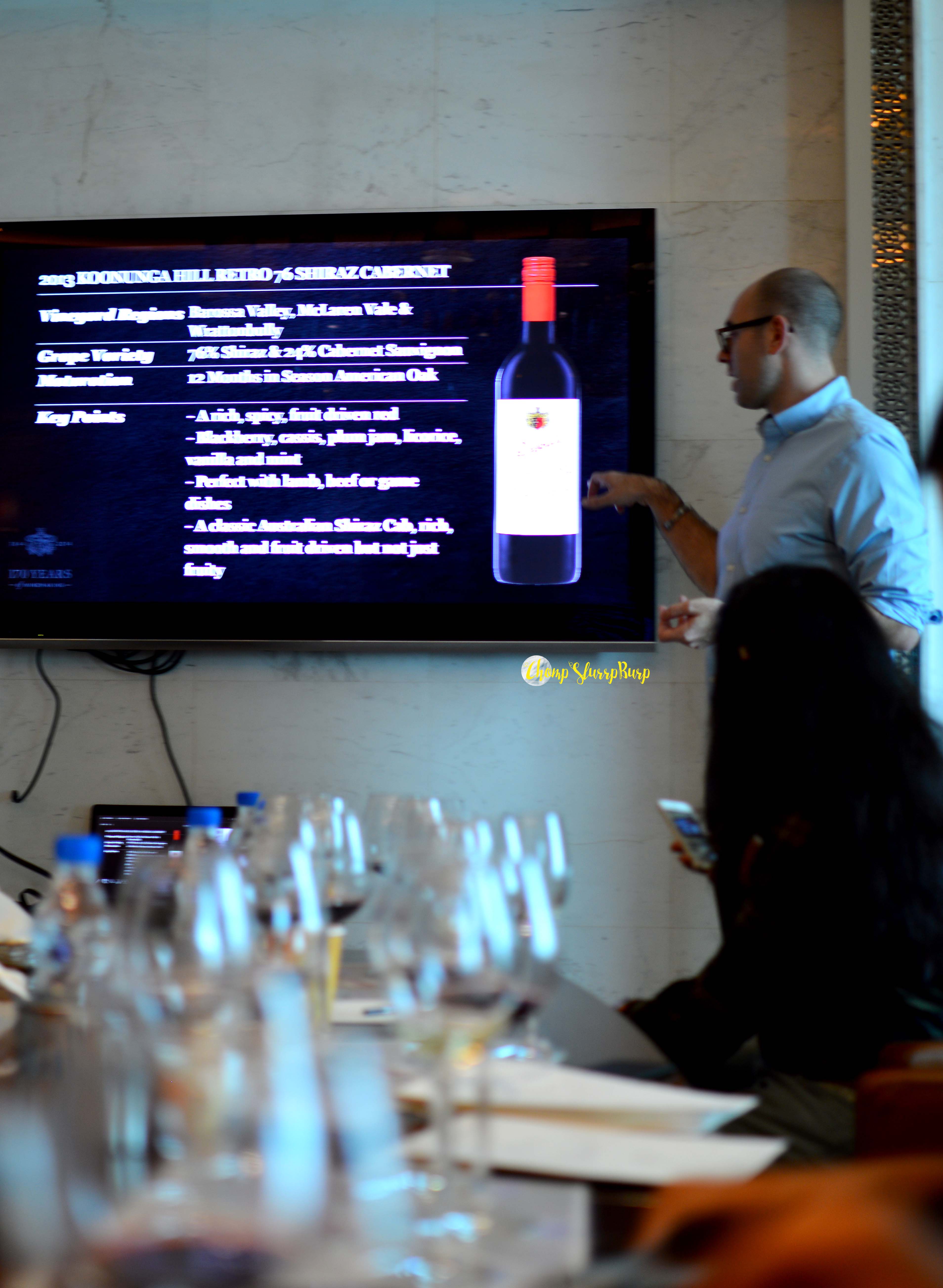 This Wine Tasting master class was held at the lush and opulent Leela Palace, Chanakyapuri – conducted by Sam Stephens and we were taken through two varieties of white – Koonunga Hill Autumn Kiesling 2004 and Kanoonga Hill Chardonay and four reds – Kanoonga Hill Shiraz Carbaret, Bin 2 Shiraz Mataro, Bin 28 Kalmina Shiraz and Bin 407 Cabernet Sauvignon 2014.