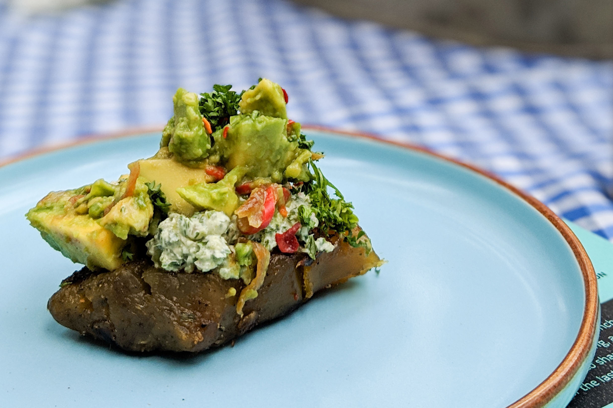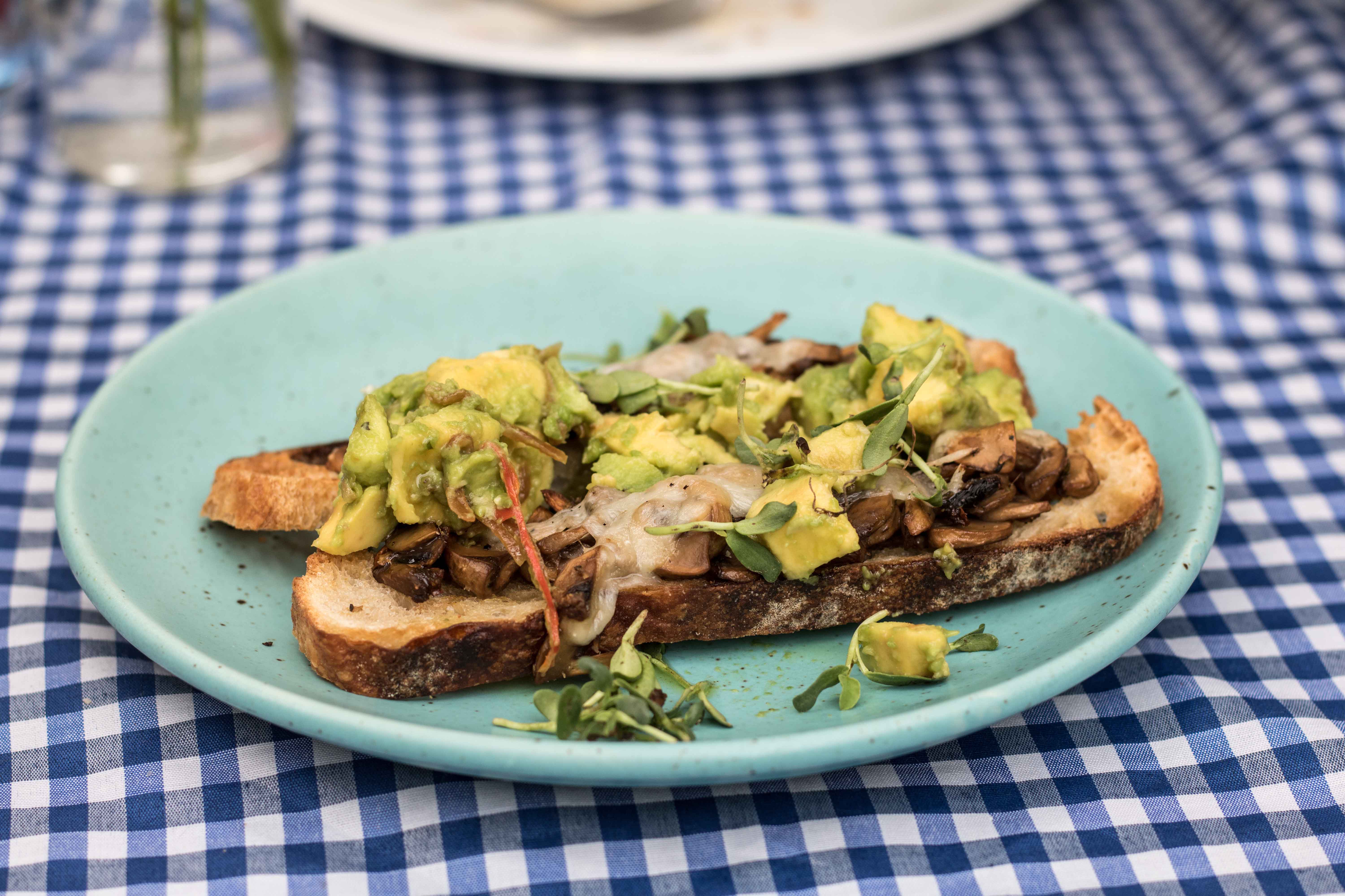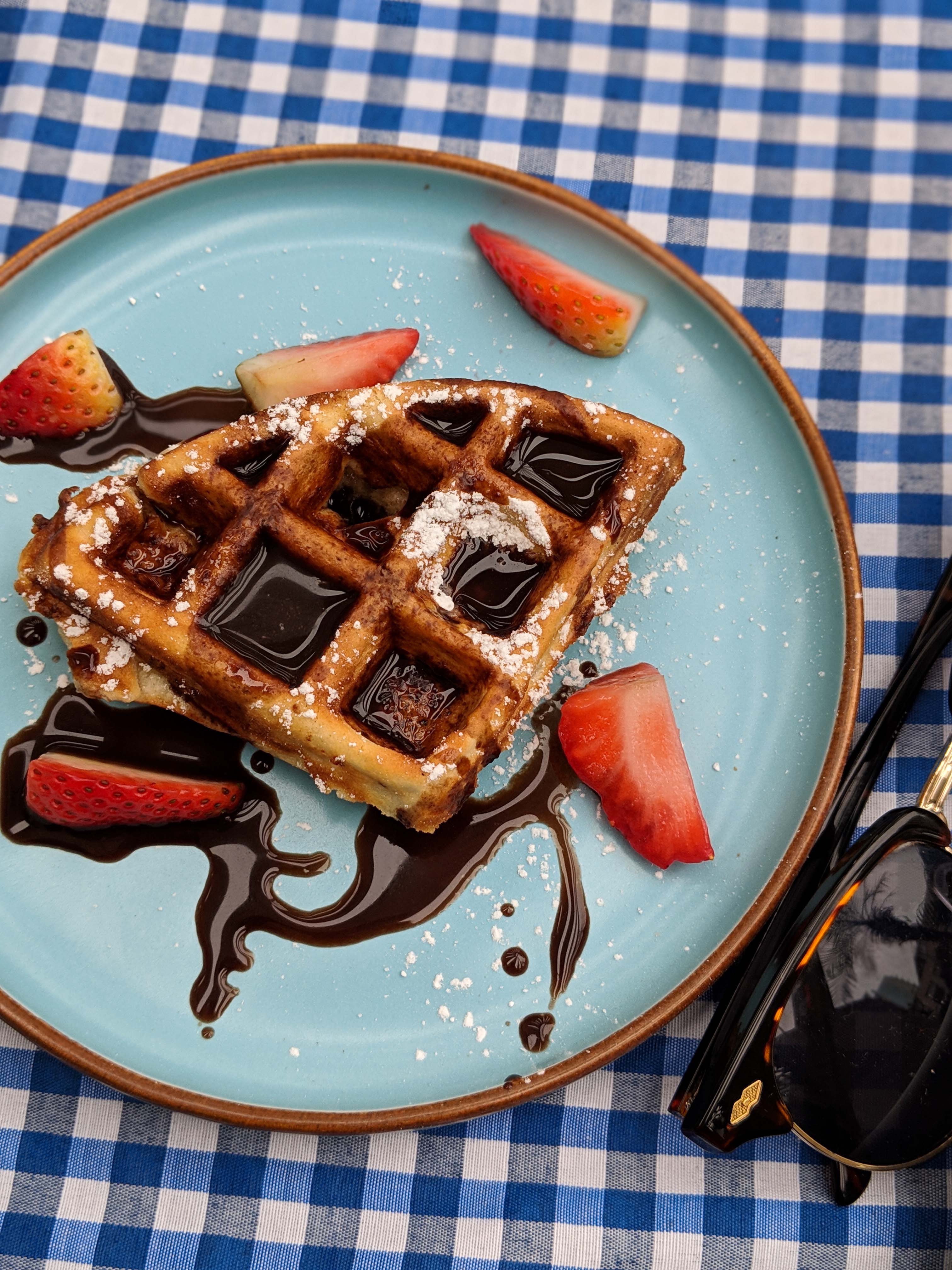 Eggs Benedict – a brioche bun, wilted spinach, perfectly poached egg and drizzled over with hollandaise. I would have absolutely loved some bacon rashers to make this a perfect Eggs Benny. Mushrooms on toast – a sourdough toast, grilled mushrooms, smashed avocado and a drizzle of olive oil. Grilled Sweet Potato – this was a closeted genius. Grilled sweet potato, topped with feta and chilli, and smashed avocado. I absolutely loved how innovative this was. Waffles – fresh waffles, chocolate sauce and fresh, cut strawberries.