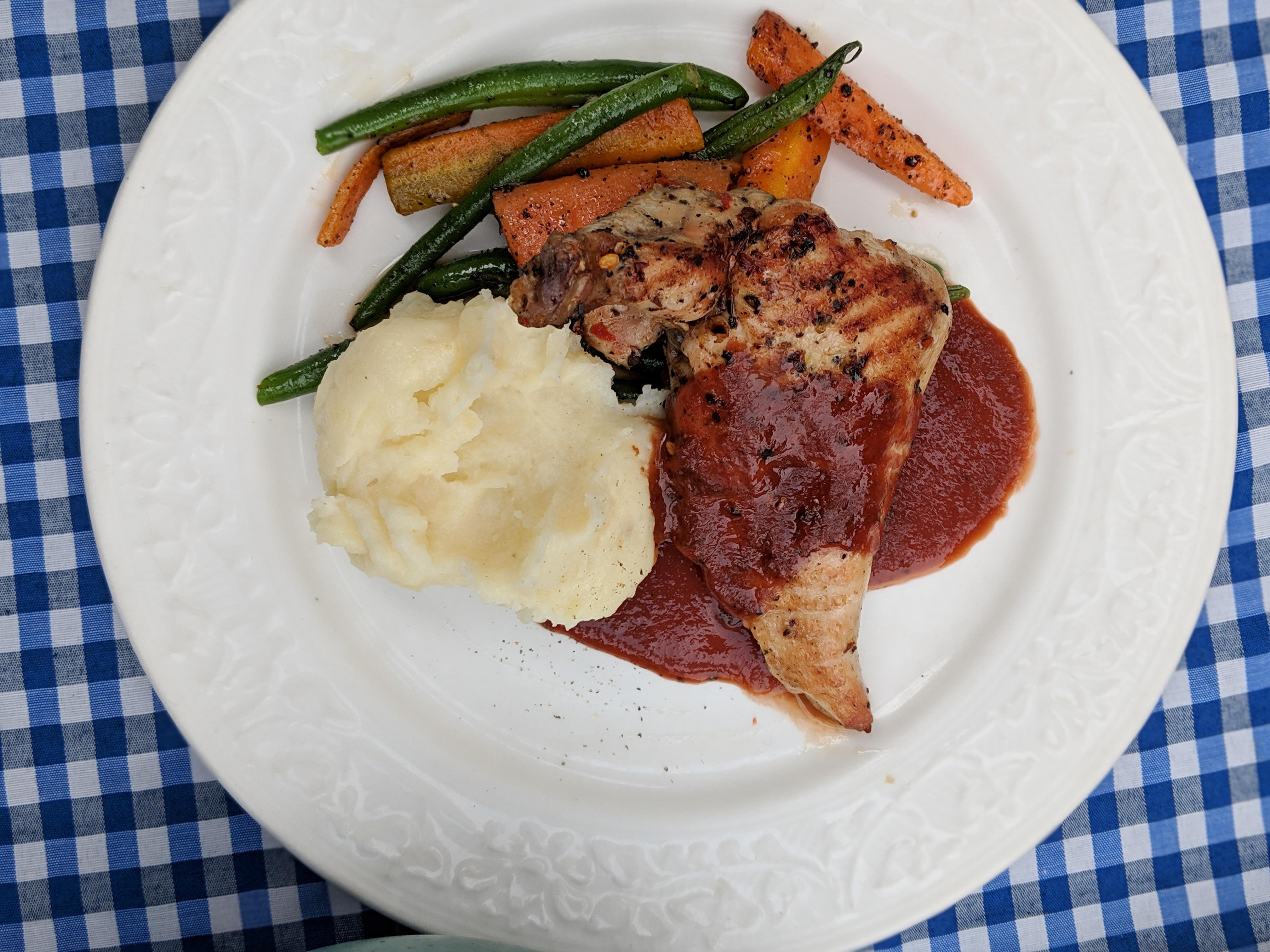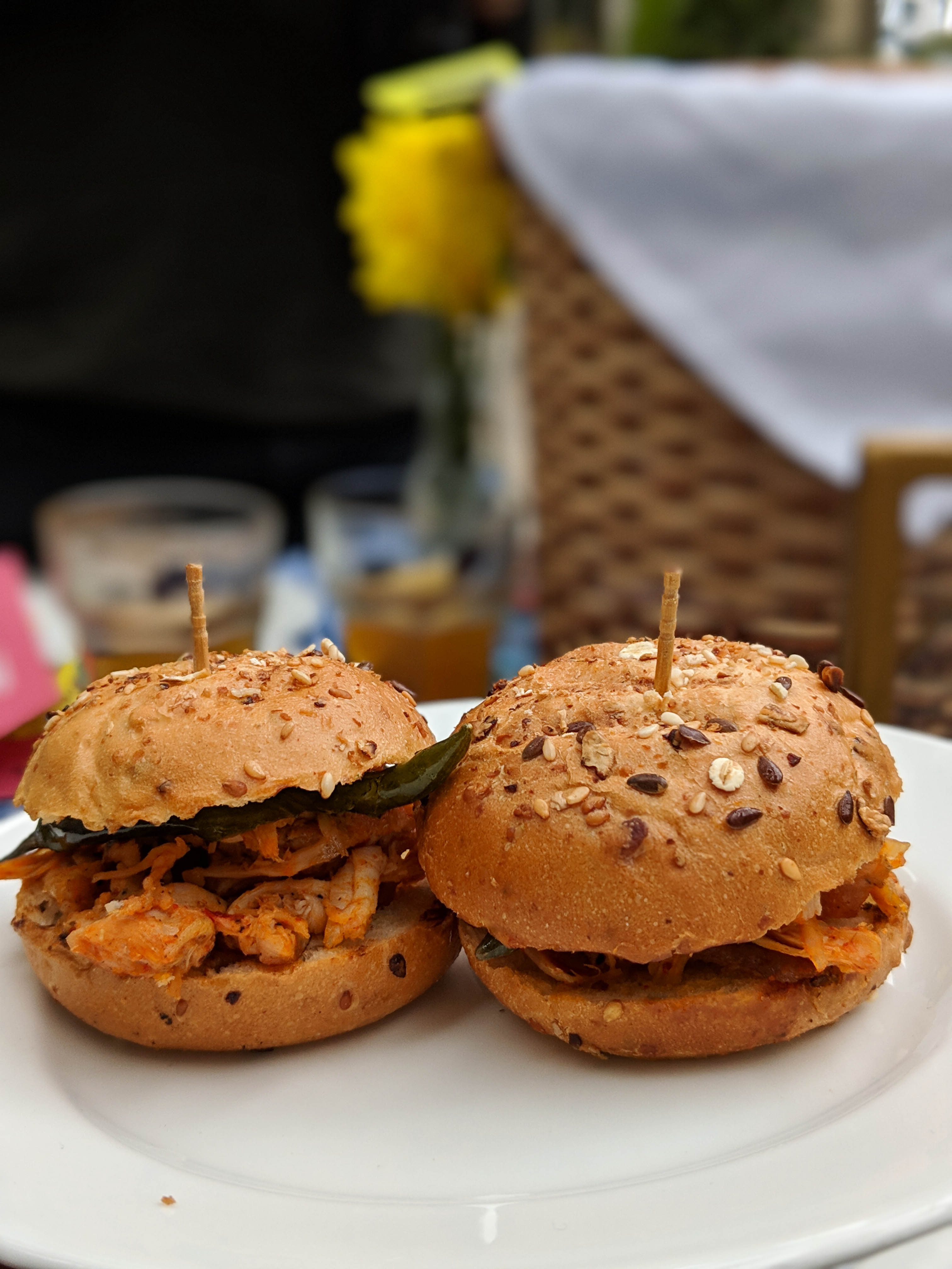 Pulled chicken sliders – multigrain mini bun, pulled chicken, green chilli and BBQ sauce. Bacon wrapped prawns – two of my favourite things on one plate. Prawns wrapped in bacon and tossed, with a drizzle of maple syrup. Loved this.