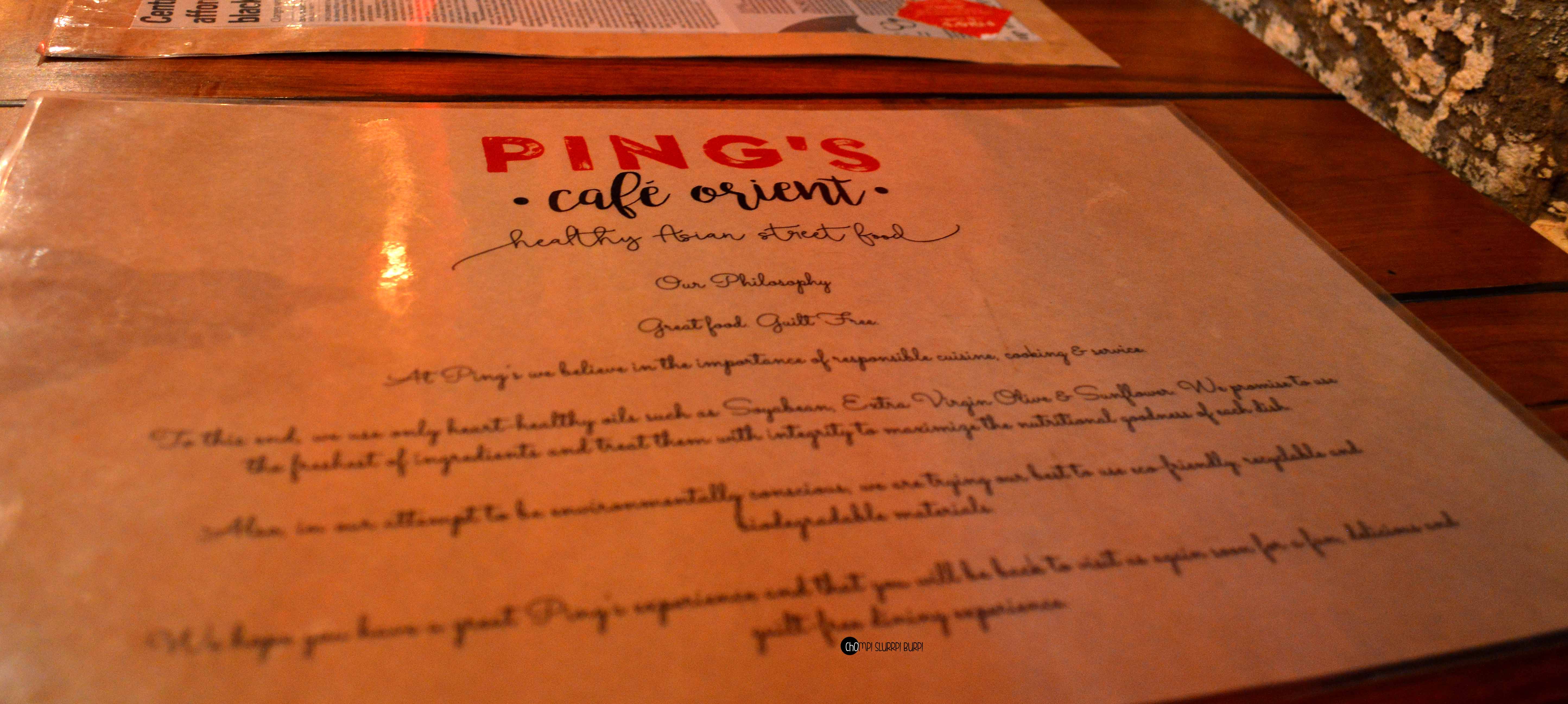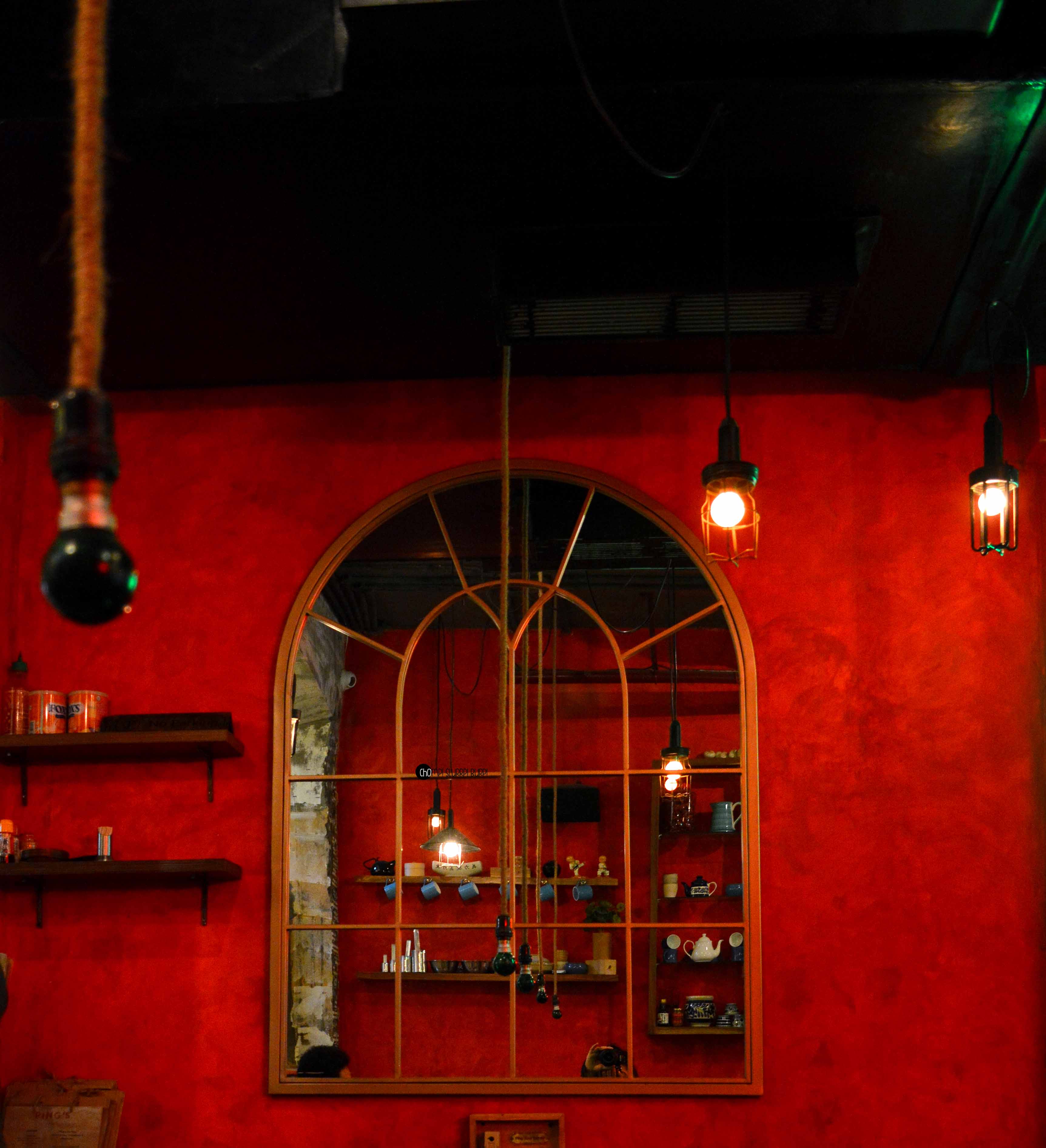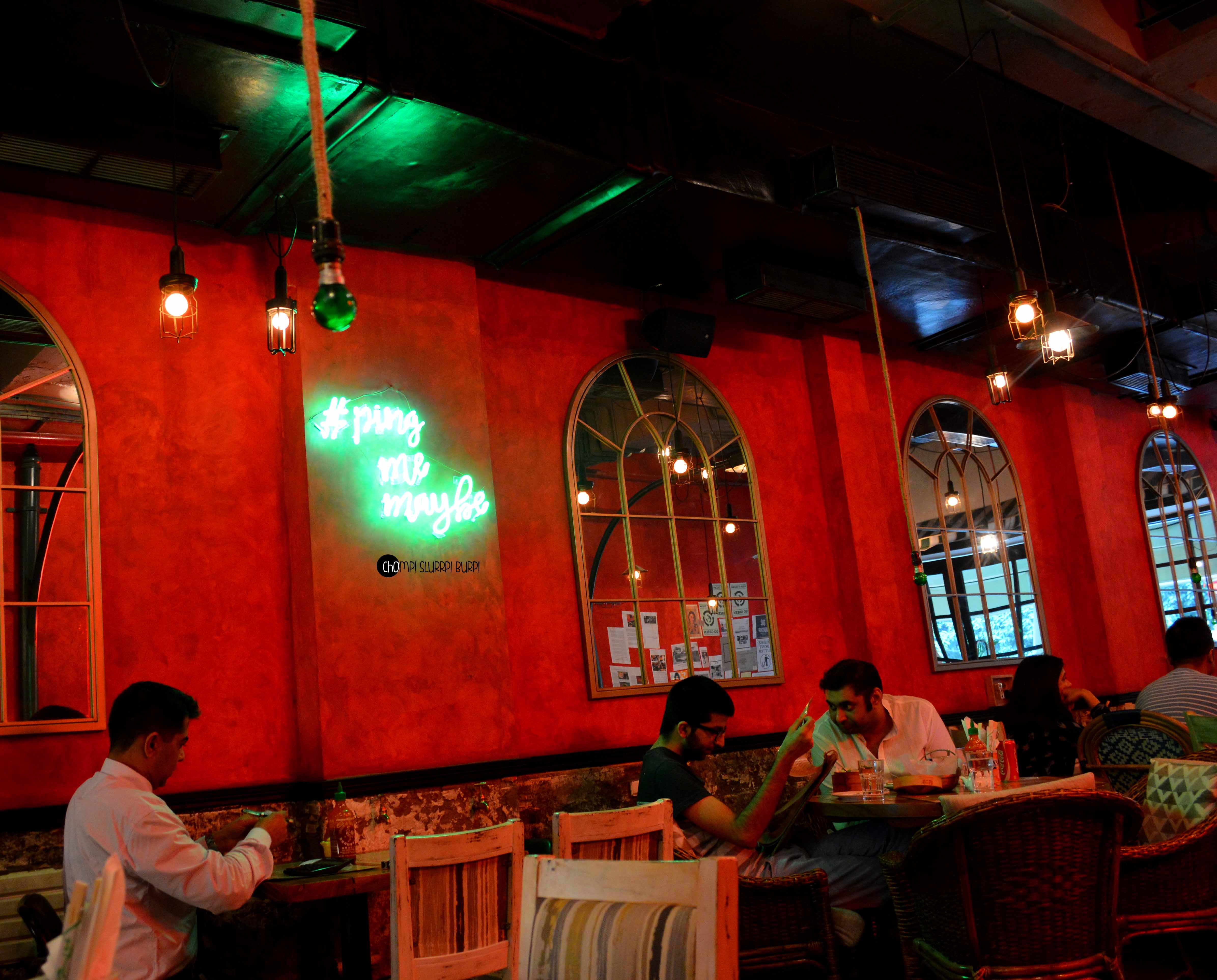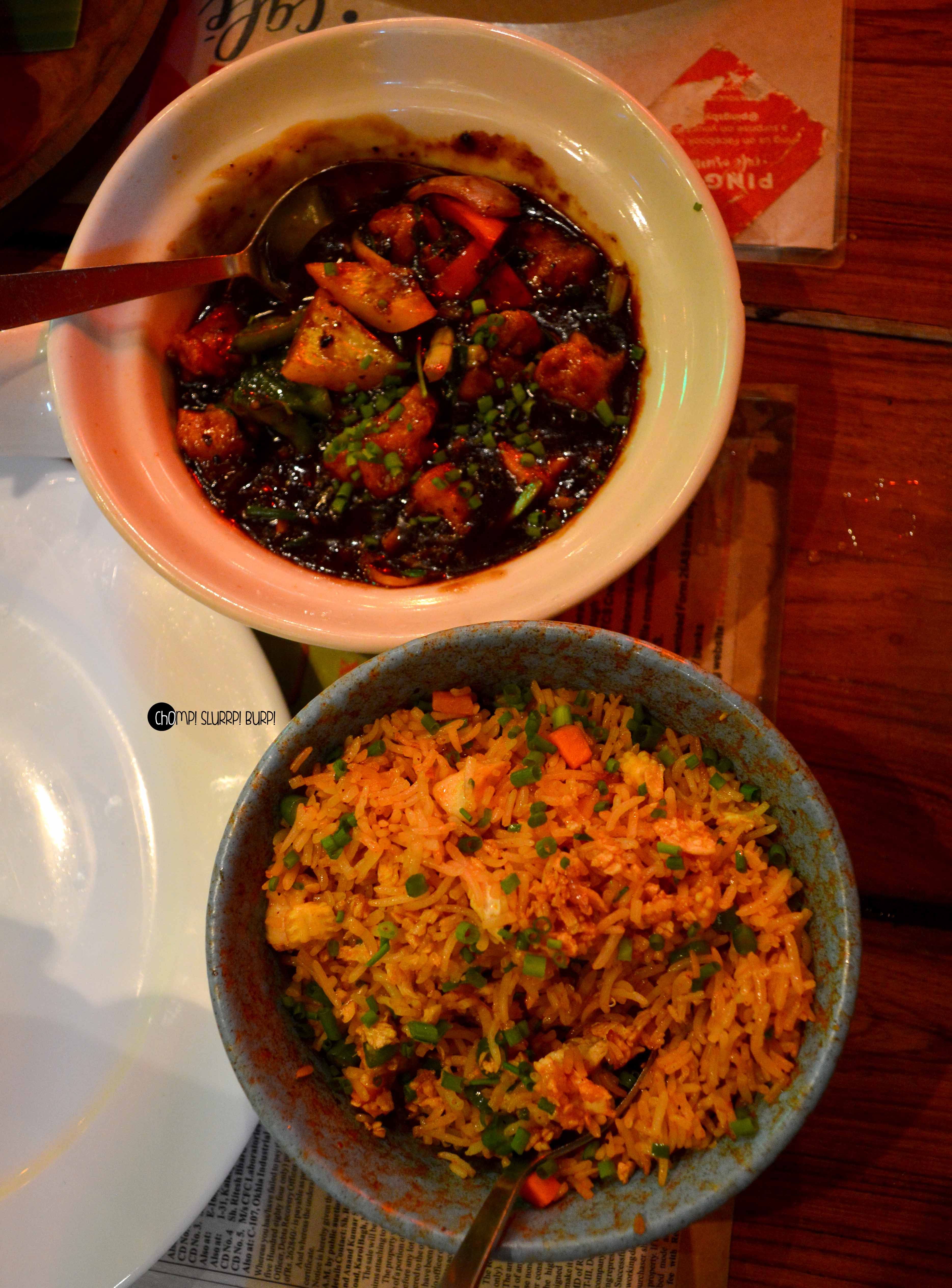 Tucked inside a street in Lodhi Colony is Ping’s Cafe Orient by PCO which immediately hauls you from the rarely peaceful Delhi street to a feet tapping, bright street in ChinaTown. The interiors are done very tastefully in the cosy little cafe – red walls papered with advertisement and flyers with lamp posts and arched mirrors. The antiquities that are lined in the cafe are most exquisite – tea pots, cutlery and bulbs. You can quite literally ping your server by pressing the switch next to your table.