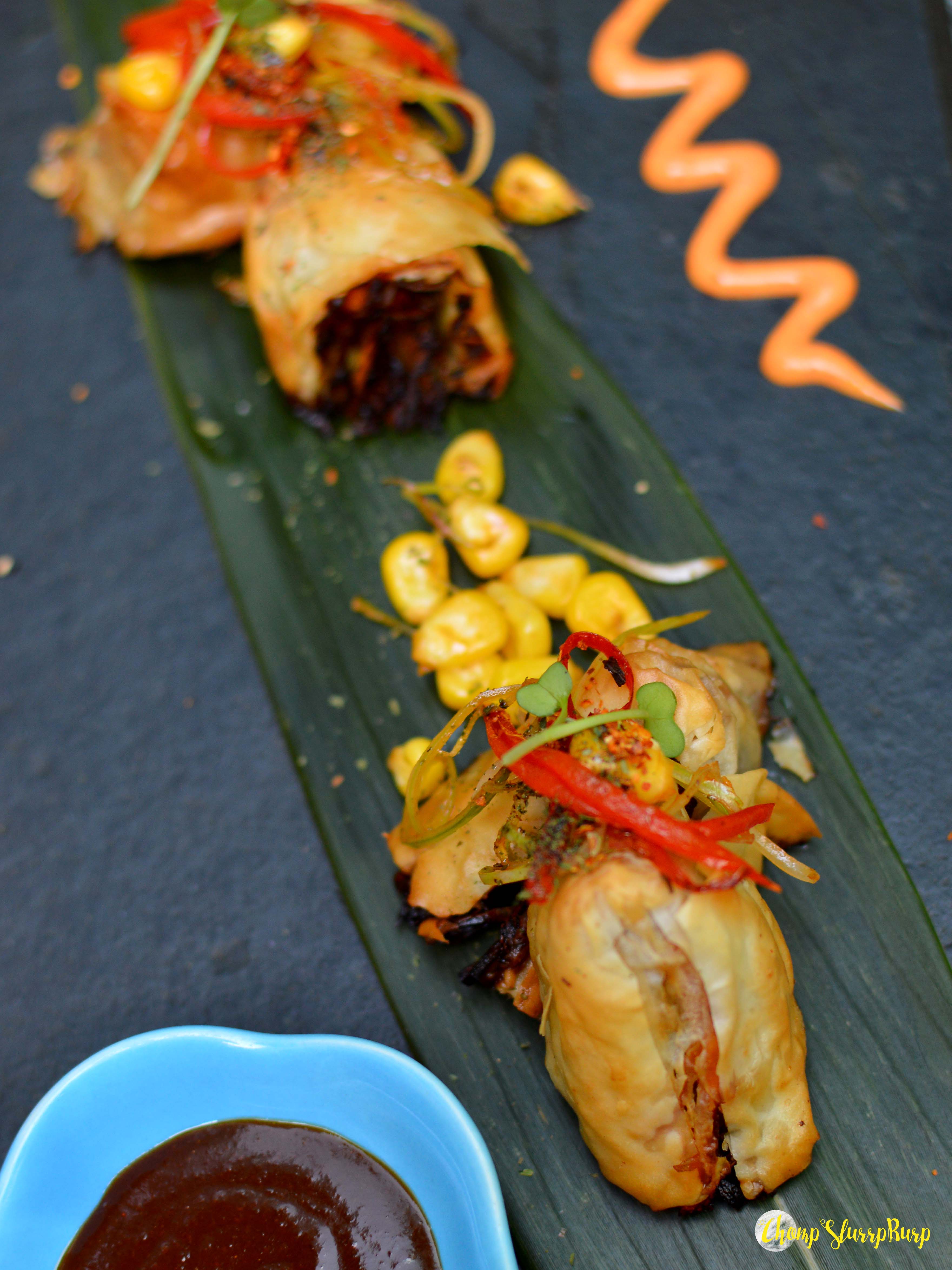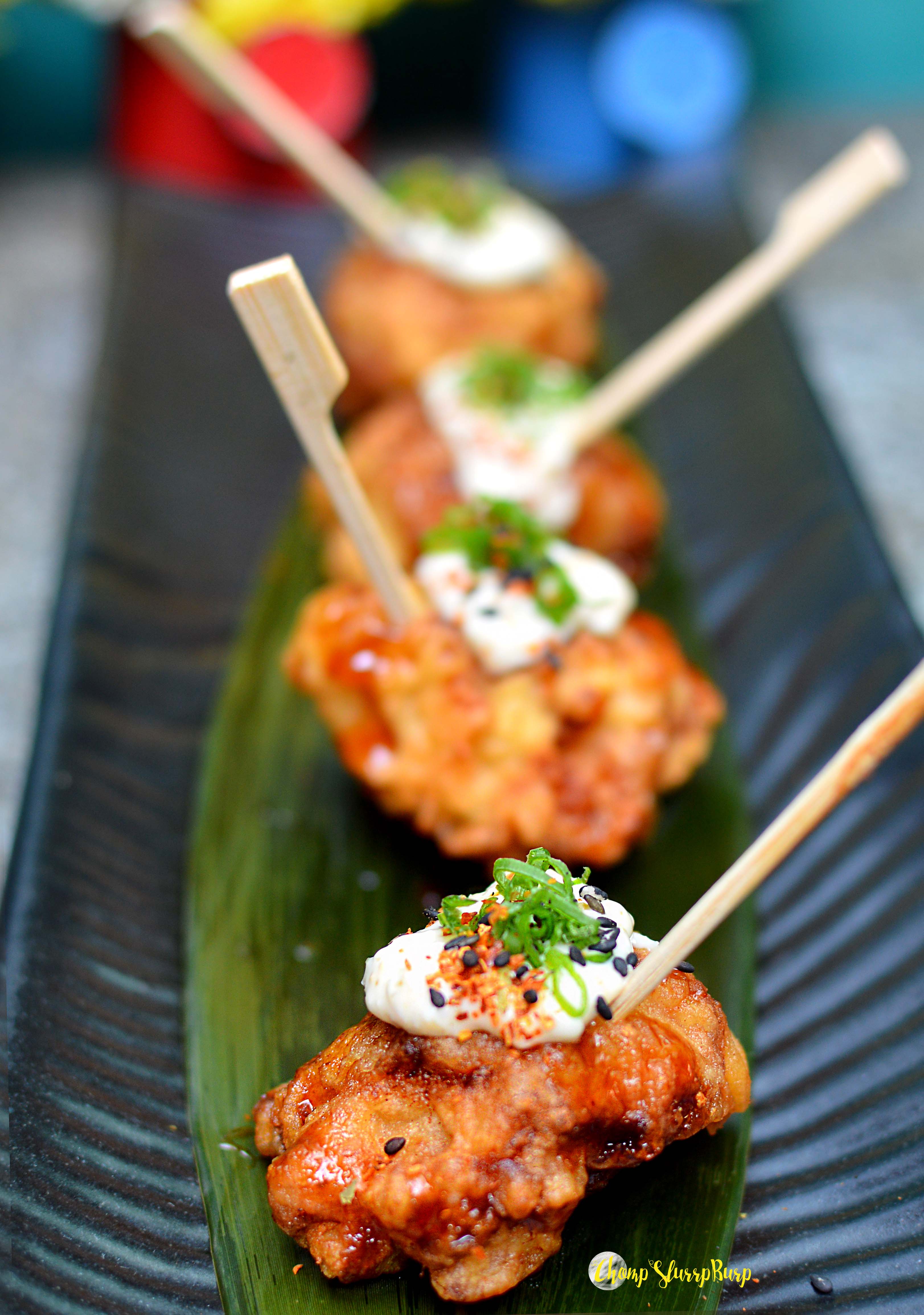 We started with Edamame Sea salt and chilly garlic – fresh edamame beans crunchy tossed with sea salt, garlic and chilly and made for an irresistible start. Chicken Nanban – succulent bits of chicken marinated and tossed in Japanese Worcestershire tonkatsu topped with tartar and black sesame. These juicy and delicious chicken pops are without a doubt yummy. Prawn Gyoza – dumplings stuffed with the freshest tiger prawns and then crispy fried served with chilly ponzu sauce. Crisp Vegetable Haramaki – a crispy puff pastry, stuffed with exotic vegetables and yuzu-miso sauce. Guppy’s Signature Pork Belly – slow braised pork belly glazed with soy honey with a slight punch of wasabi. The luscious meaty pork belly is the best pork belly I have ever had.