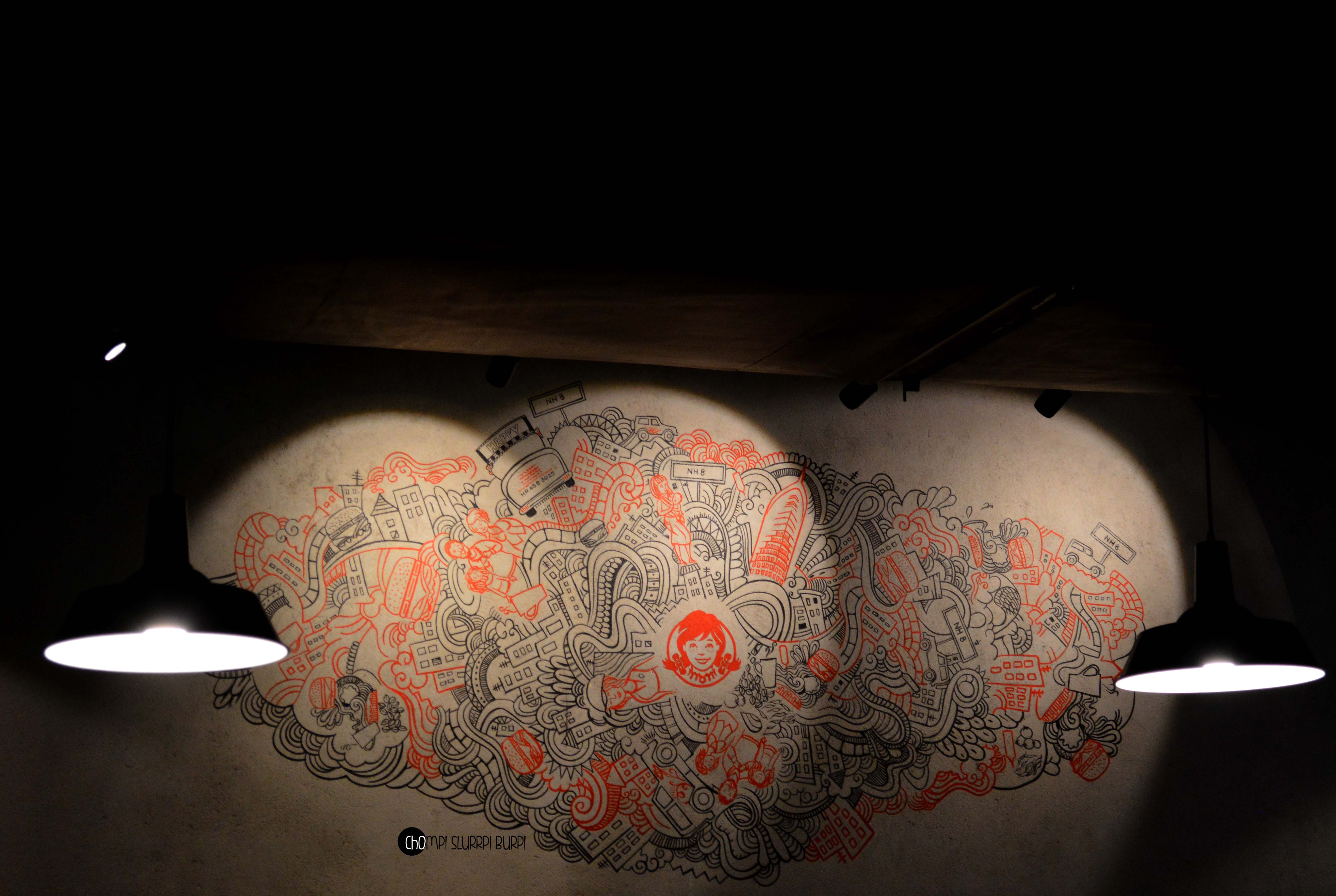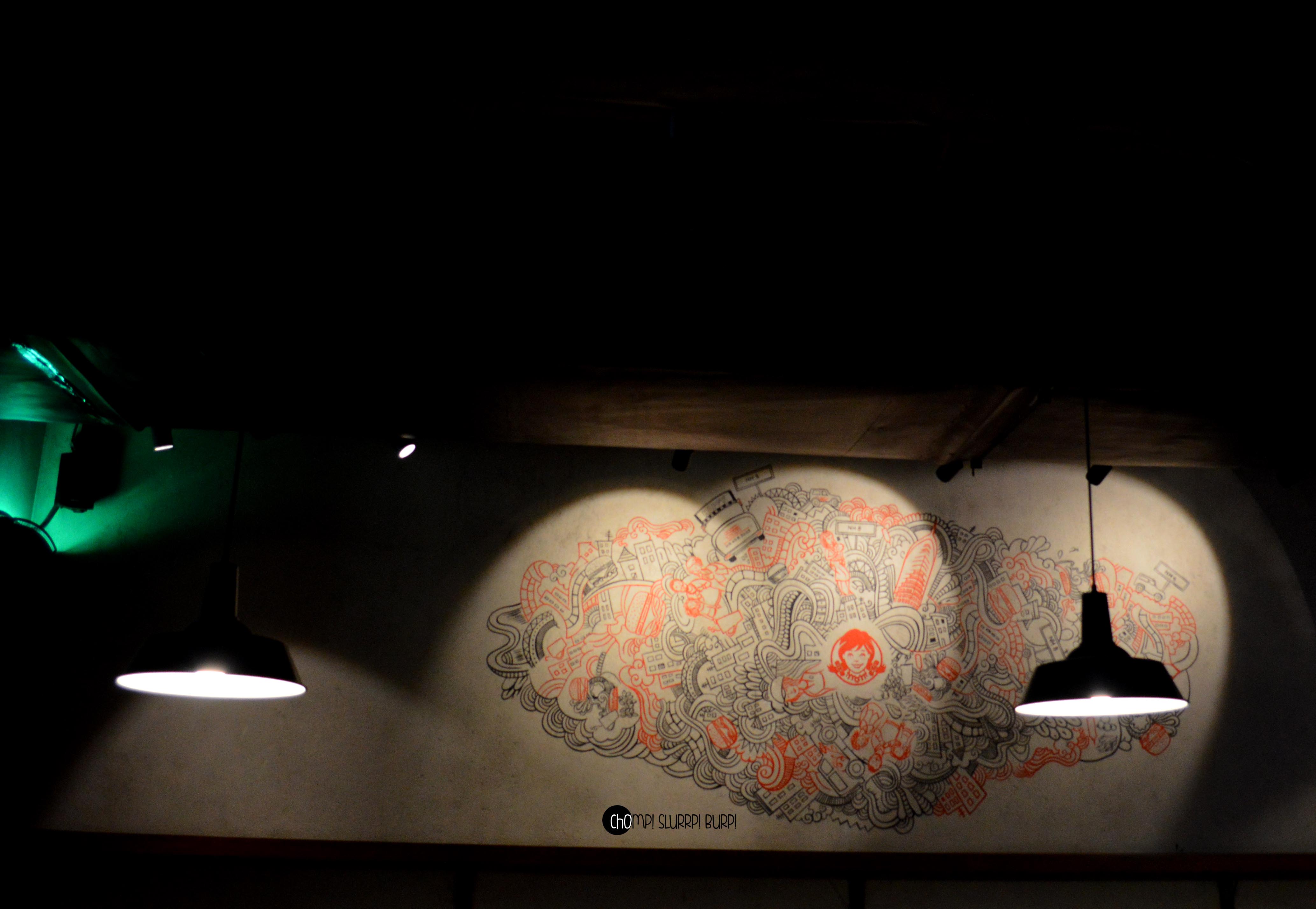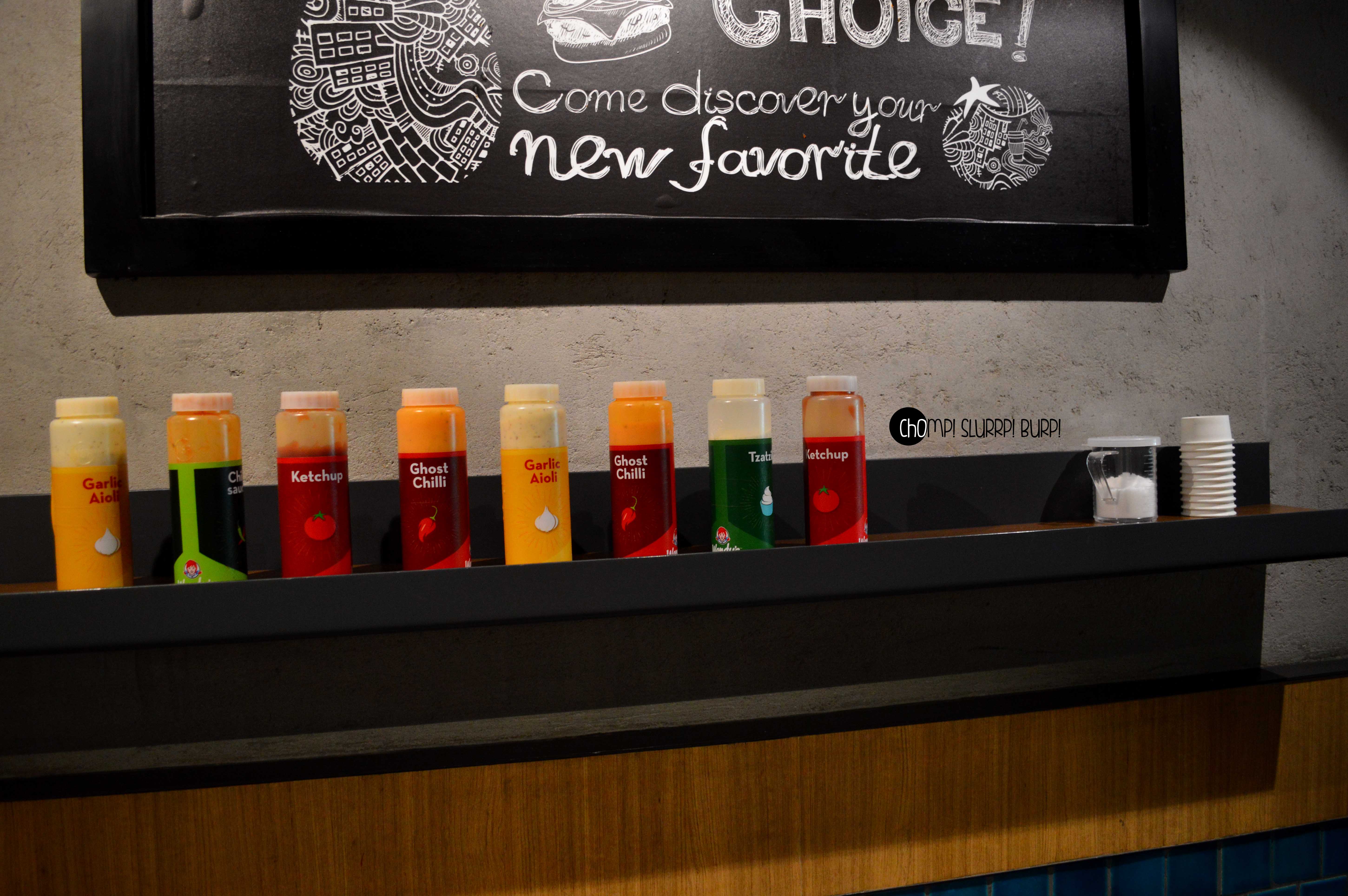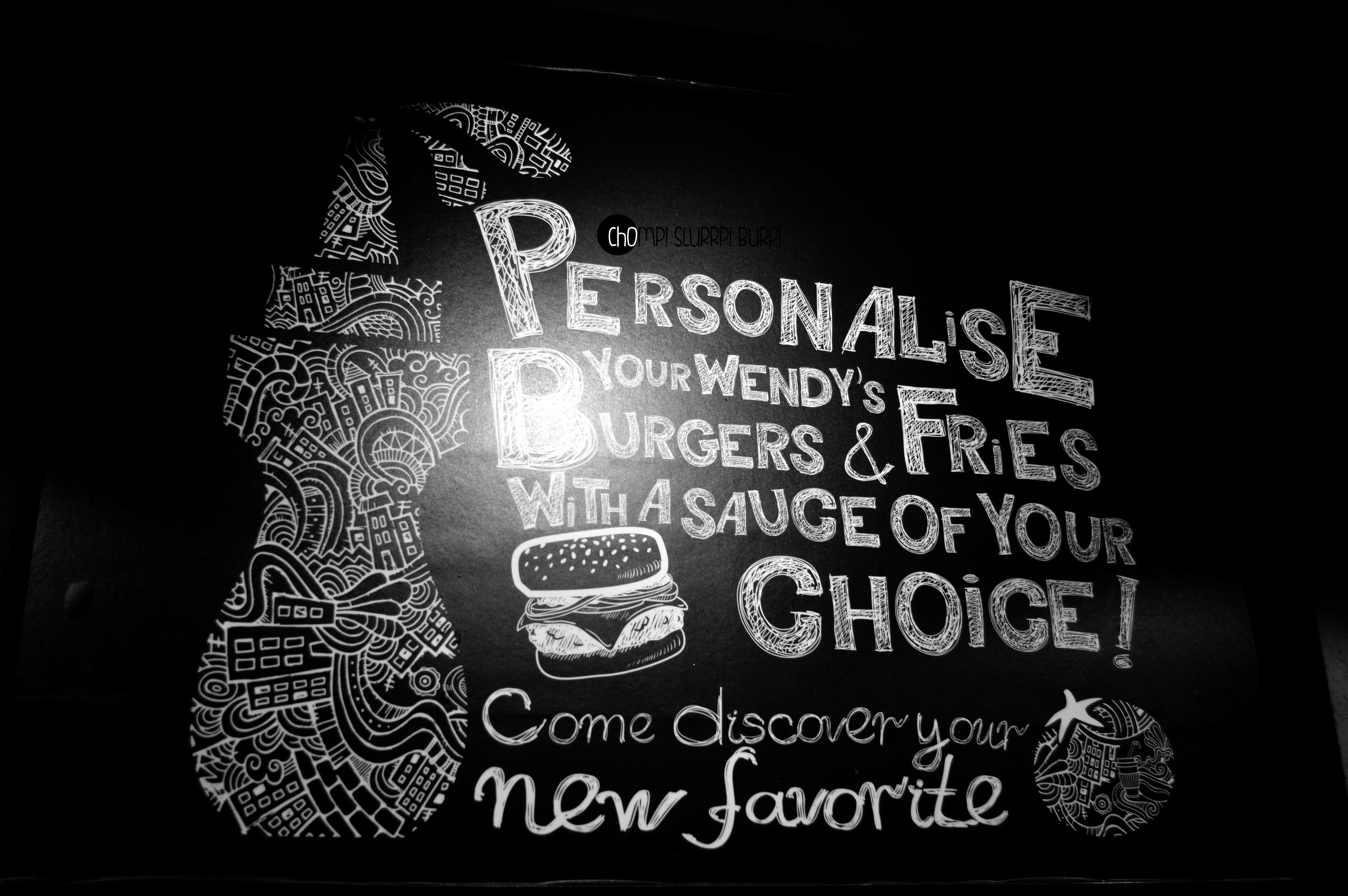 The place has a raw, rustic feel with graffiti cemented walls, teak tables, fixtures and lamps. Like most QSRs these days, you order on the counter and your order is served on your table. Wendy’s offers the most exquisite variety of sauces – ketchup, chilli ketchup, ghost chili, tzatziki and garlic aioli. You can either use them as a side dip or customize your burger with the dressing of your choice.My favourites were the very refreshing tzatziki and garlic aioli.
