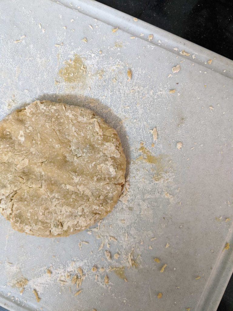 - Slowly add the whisked egg and bring together to form a dough. Use flour to dust to avoid sticking.