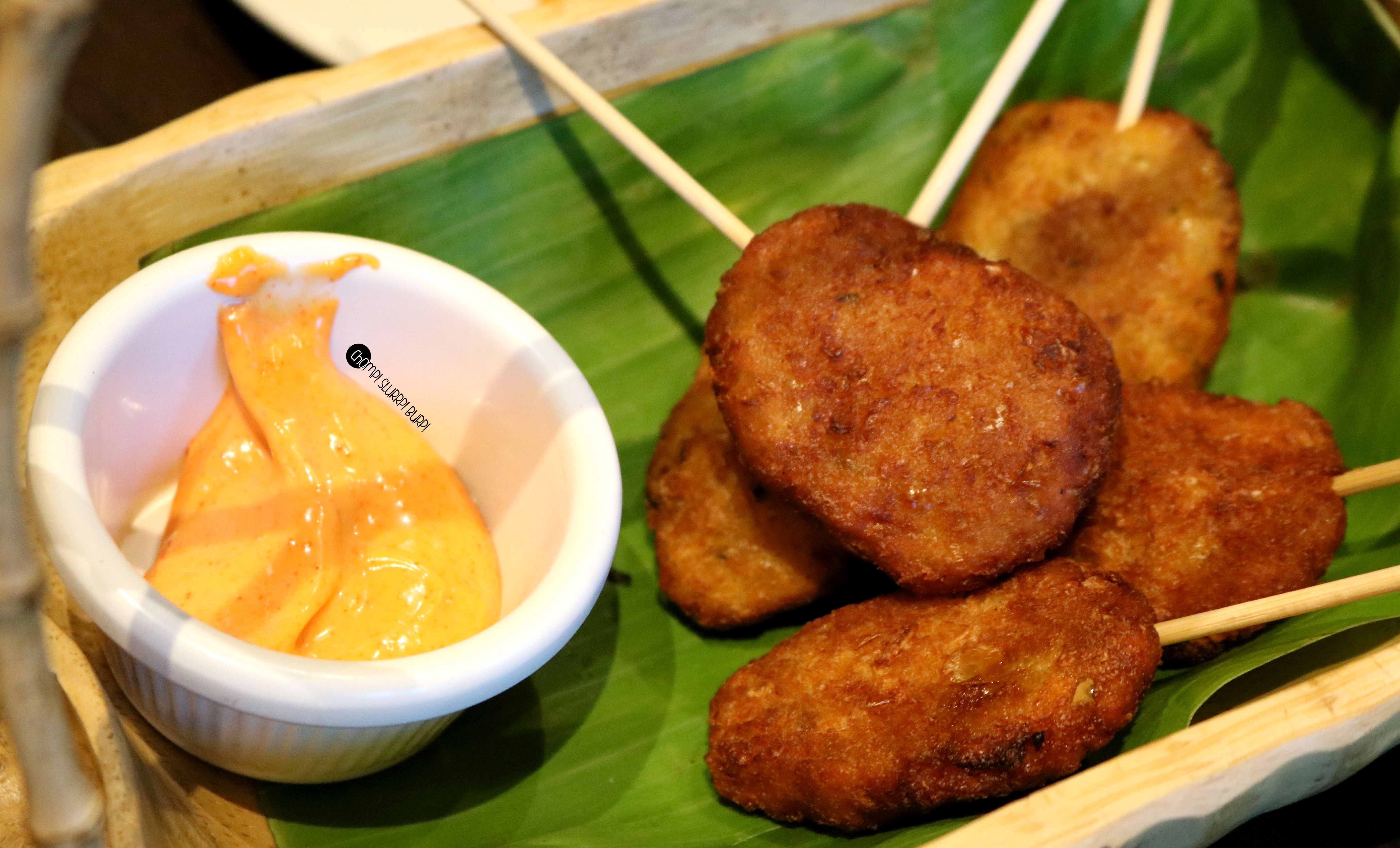 Coming to the food, we started off with Dhai ke Sholey, American corn chop, Dhaniya Lahsooni Murg & Thai basil fish.