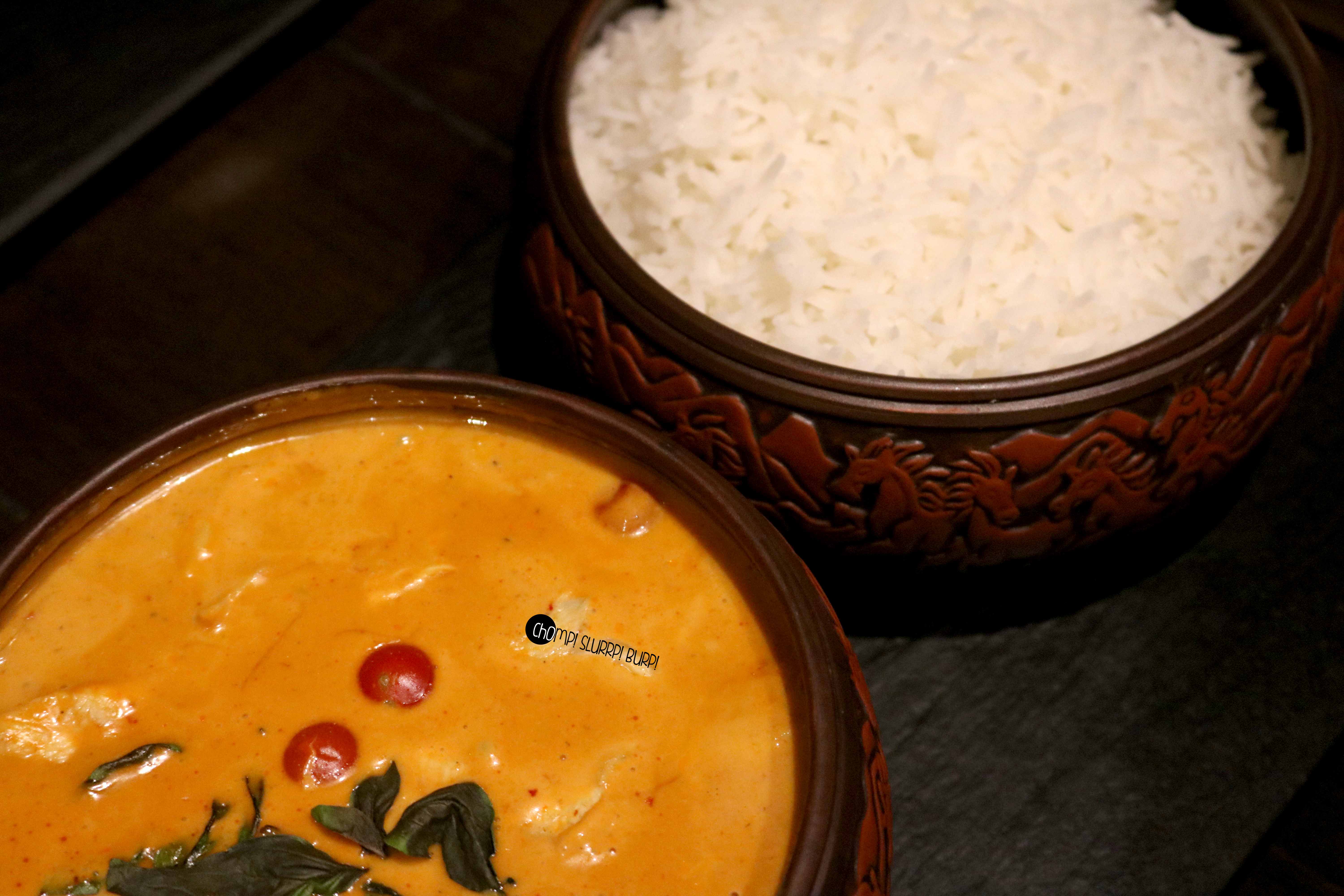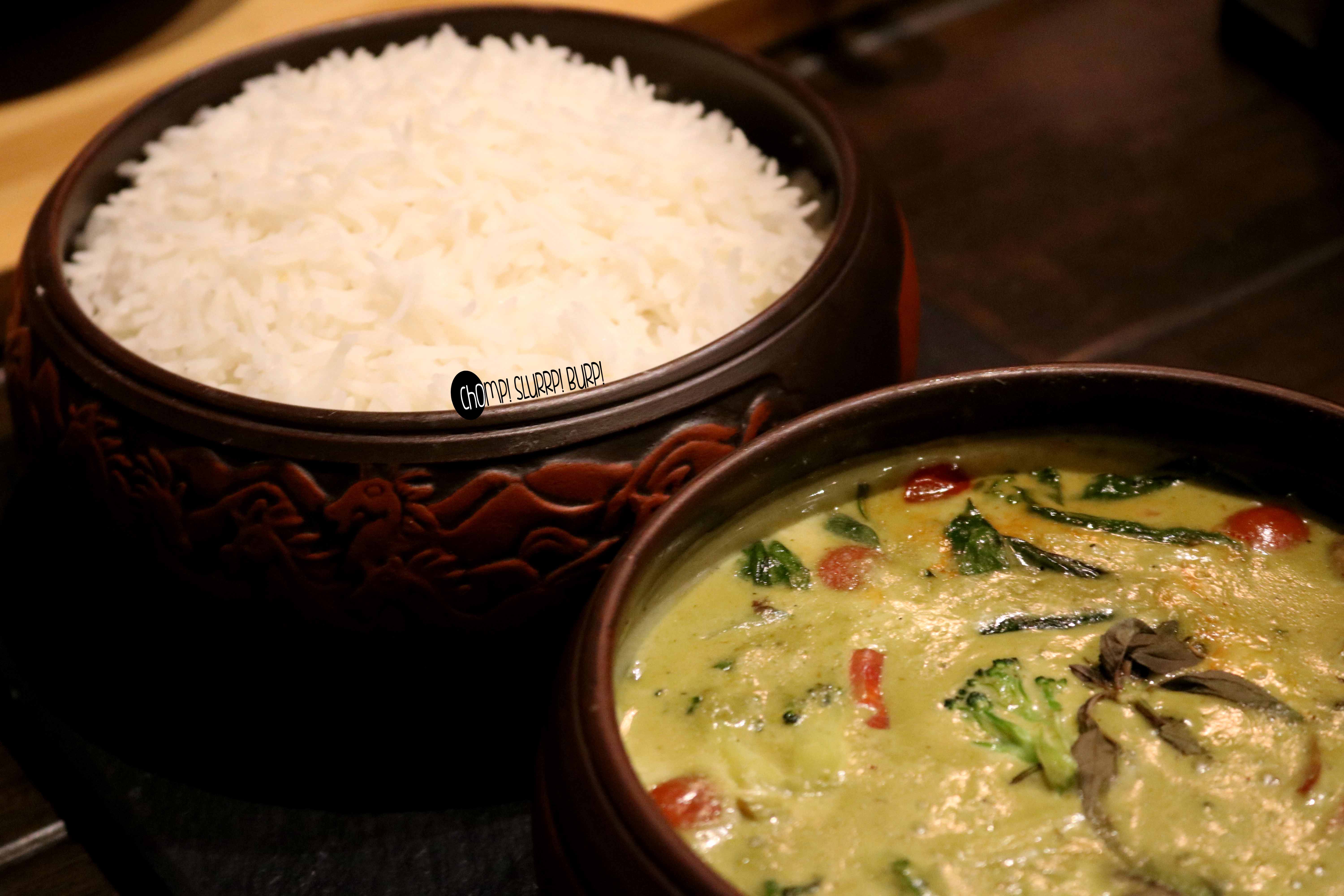 Now was the Chicken Thai Red curry and Veg Thai Green Curry, both the curries were served with rice and were just average, Nothing special here.