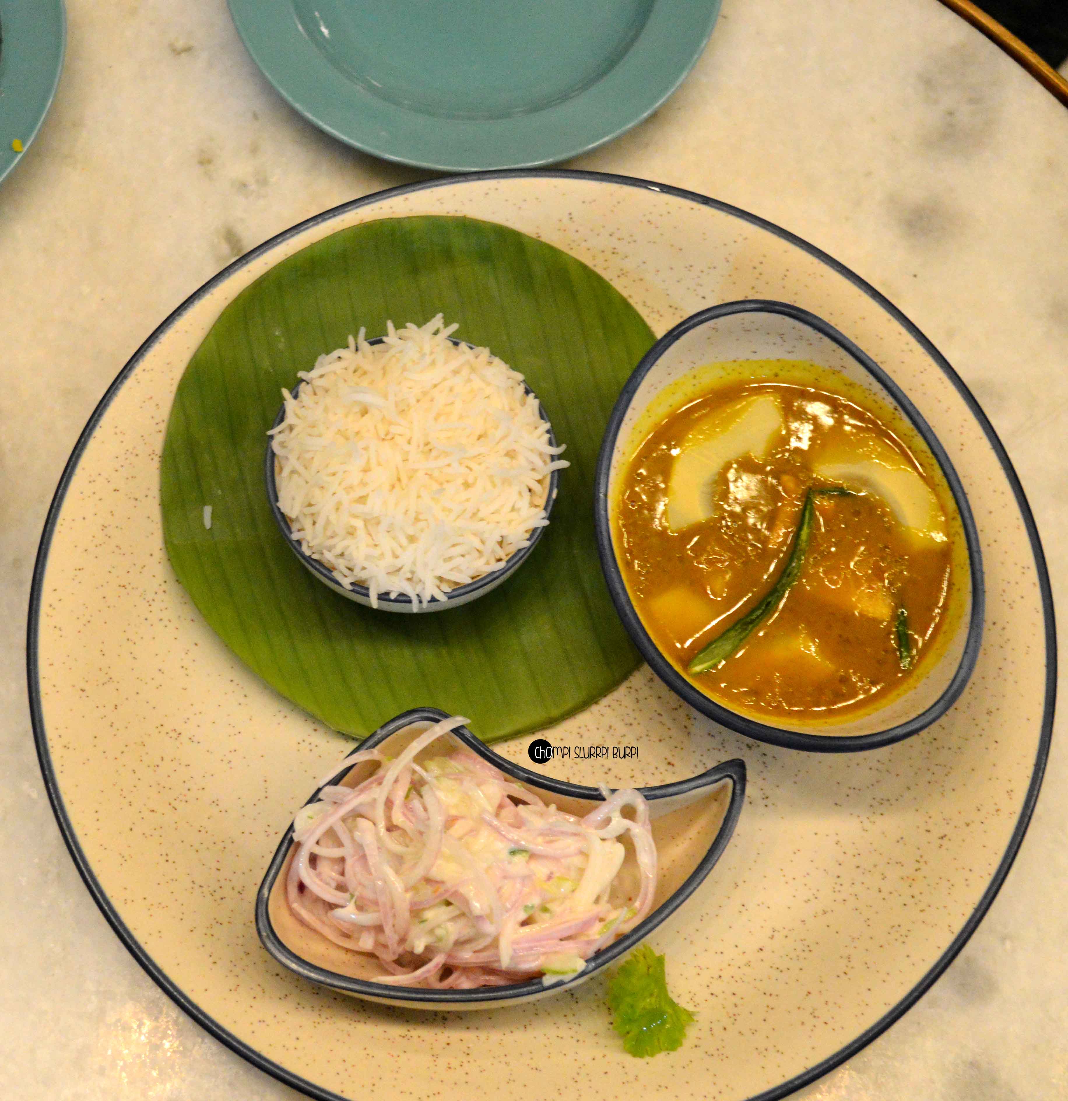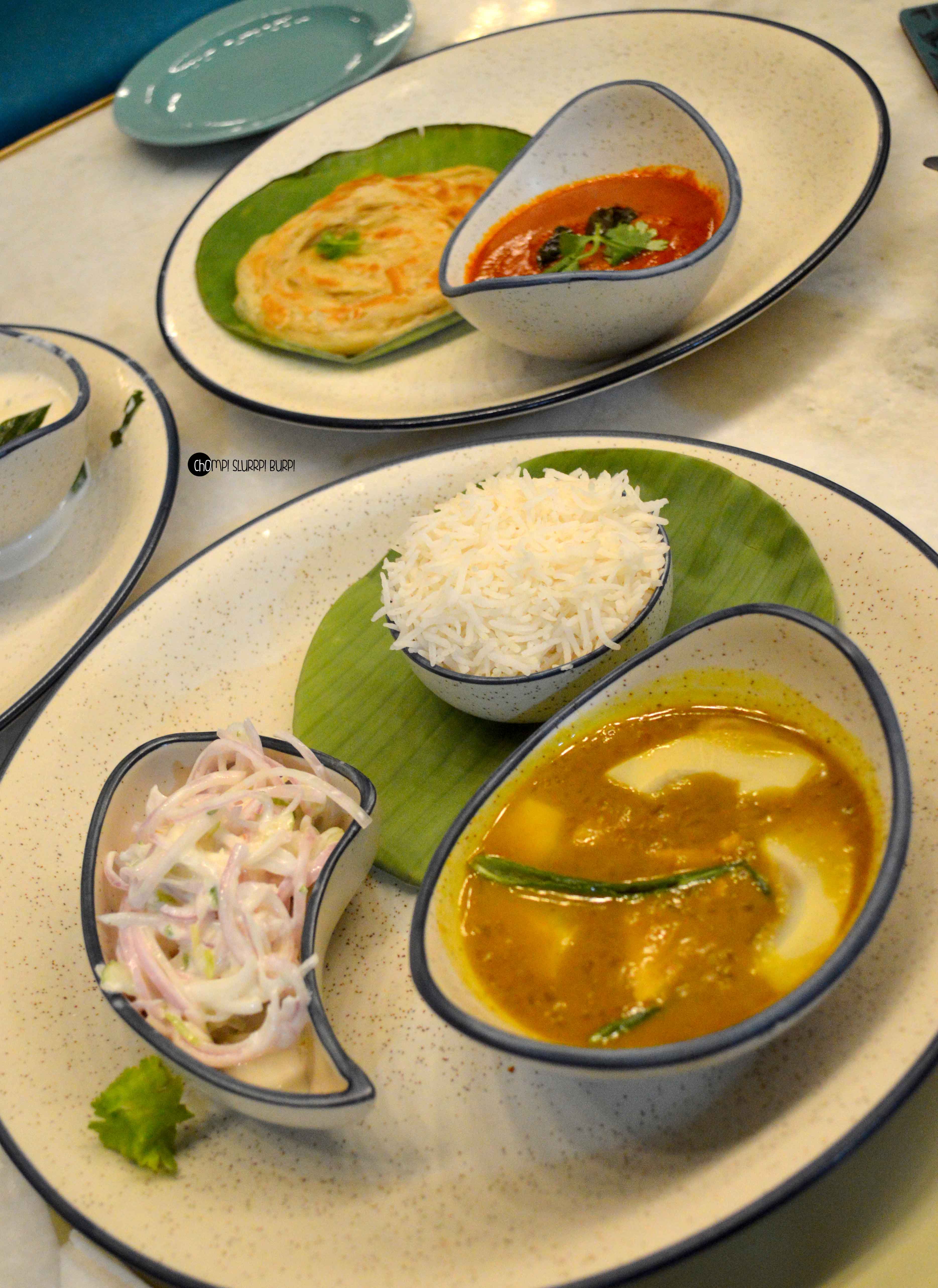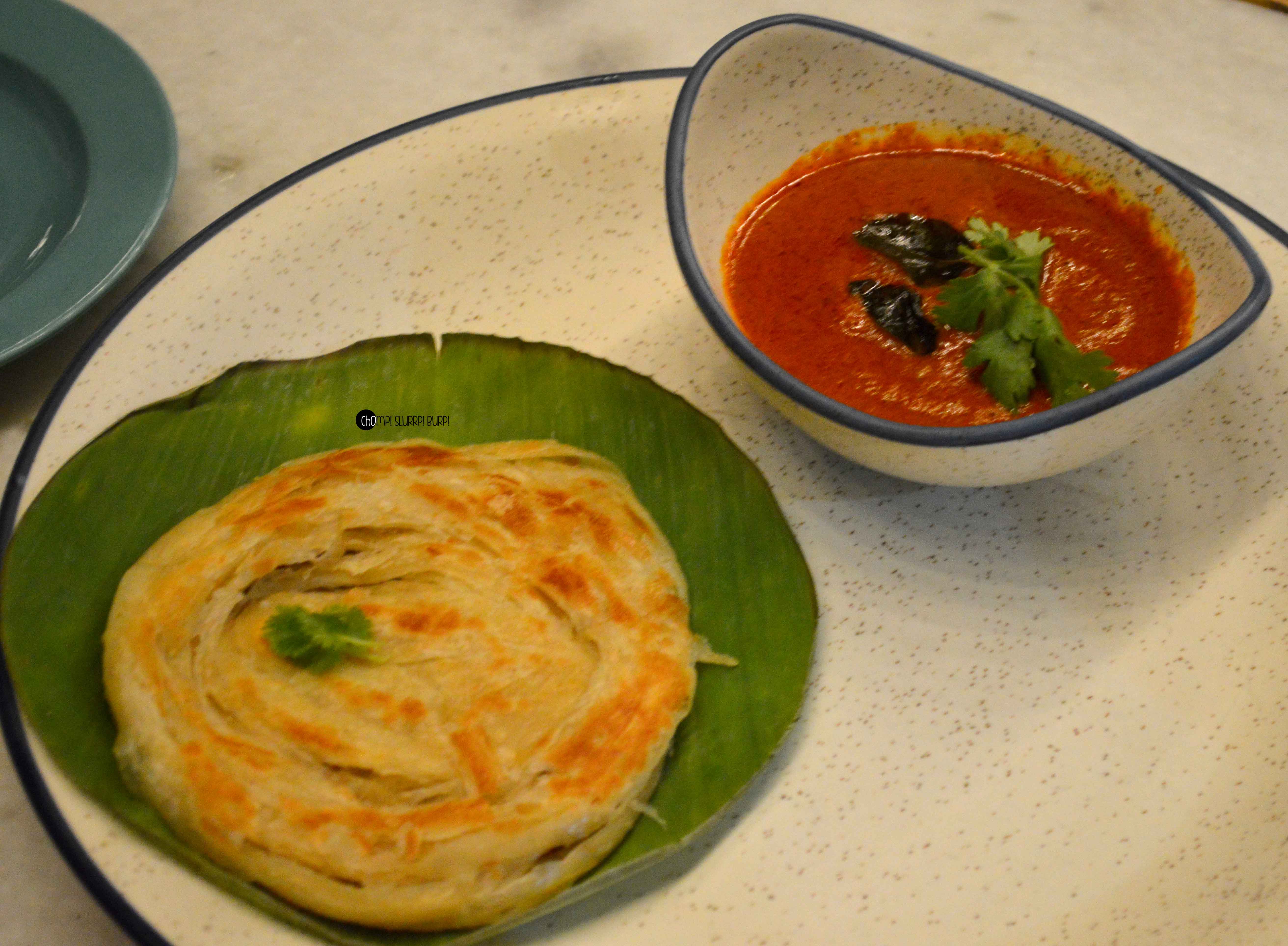 Assamese Kurkura curry served with rice and a creamy onion salad. Again a slight coconut milk zest with bamboo shoots and yummy chicken, the curry tasted heavenly with appam and rice alike. Kolhapuri mutton with malabari parantha – a traditional curry with the best flaky, soft, crispy malabar parantha I have had till date.