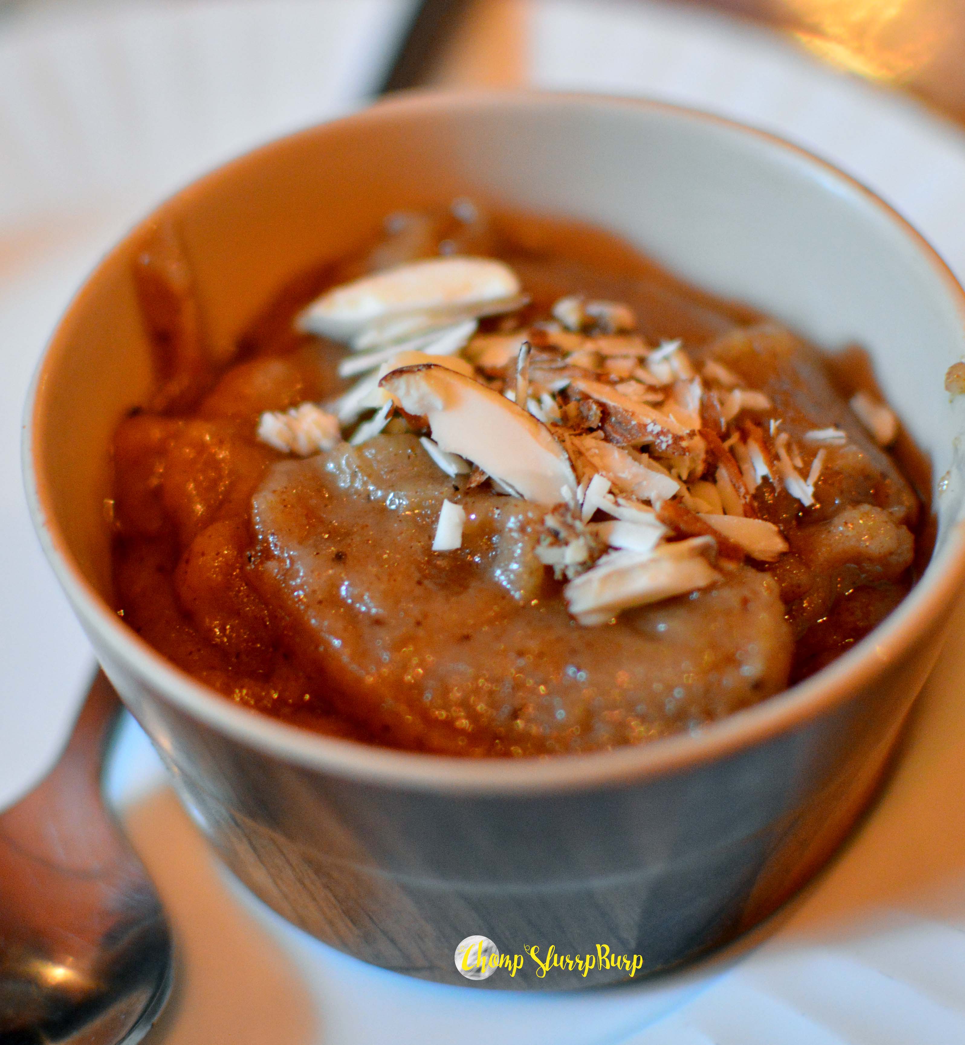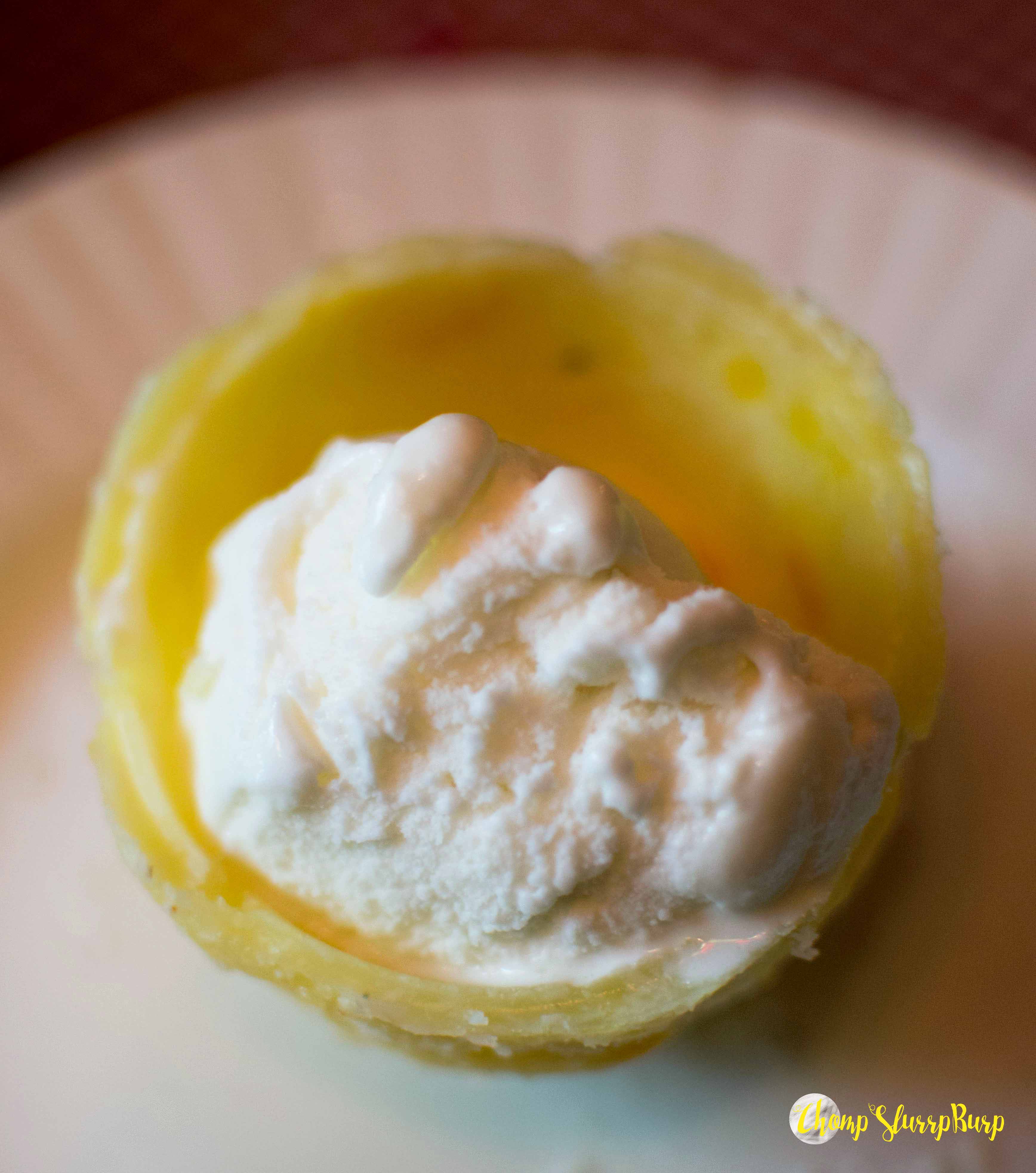 Desserts – finish off with Persian Halwa, much like the kada prashad but served rose water and nuts. The Baslog – a coconut and saffron flavored hard shell with ice cream.