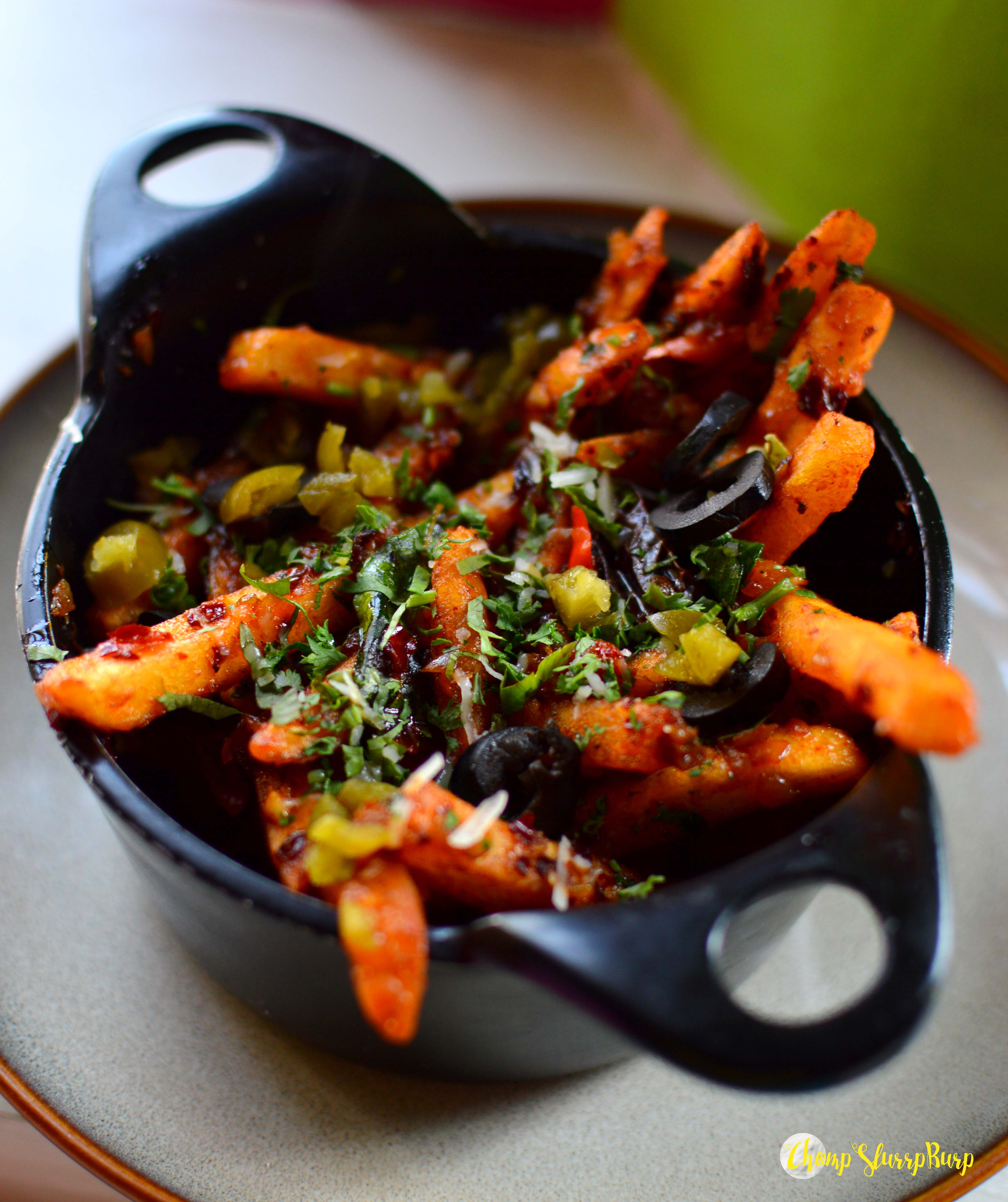 To start with, munch on some Batata Fritas, tried the Lava fries and Bacon fries – crunchy flavorsome fries loaded with goan masalas, curry leaves, jalapenos, black olives and fresh parsley. The bacon fries were INSANE, the sticky delish bacon with an irresistible smoky flavor and topped with mozzarella. Yellow Cheddar with Kale and Cherry Tomatoes Toastie – lots of cheese, crispy kale leaves and punchy cherry tomatoes on a toastie. Cheese and Fig Toastie – dried figs, shallots, mozzarella and mayo – the sweetness of the figs work very well with the cheese and both the toasties are among the best and cheesiest veg bites! Torradas de Camaro – Prawn Toast – round mini toasties topped with cheesy prawns lined with a special Goan sauce. I had one too many helpings of this and it was amazing! FOFOS – Red Snapper Fish Rolls – Fofos are traditional fried Goan fish rolls made with fresh fish. Pair it with one of the saucy dips or prawn achar to bring out the flavors nicely.