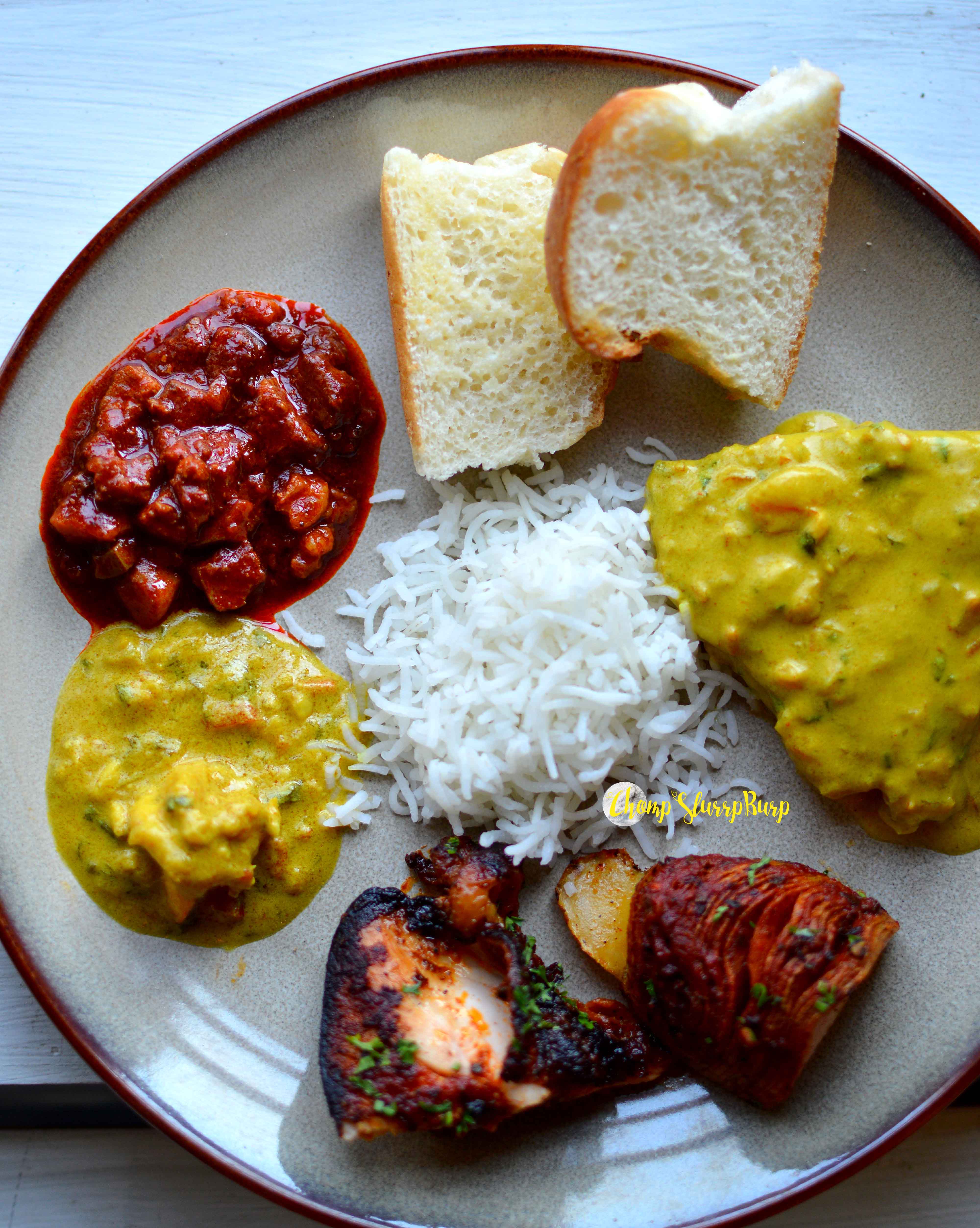 Large Plates – Sunday Roast – a Sunday special curry, this one is almost a home cooked on the bone chicken curry with desi masalas and baby potatoes paired with pav. Pork Sorpotel – a Konkan delicacy, this diced pork curry is super spicy and a tad bit tangy. Packing a lot of flavors, this pair this pork curry with rice to neutralize the flavours. Batata Bravas with Tomato Frittata – flat pancakes with spicy potatoes tossed with tomatoes, onions and cilantro. Caldinha – tried this coconut based yellow curry with fish and prawns both. Lightly spiced and tossed with gherkins, the prawn curry was much more satiating than the fish. Pilaf with Chicken – rice cooked with turmeric a tomato based thick, spicy chicken curry. Peri Peri Grilled Chicken – the African-Portuguese spicy infused chicken, grilled with herbs and potato twisties.
