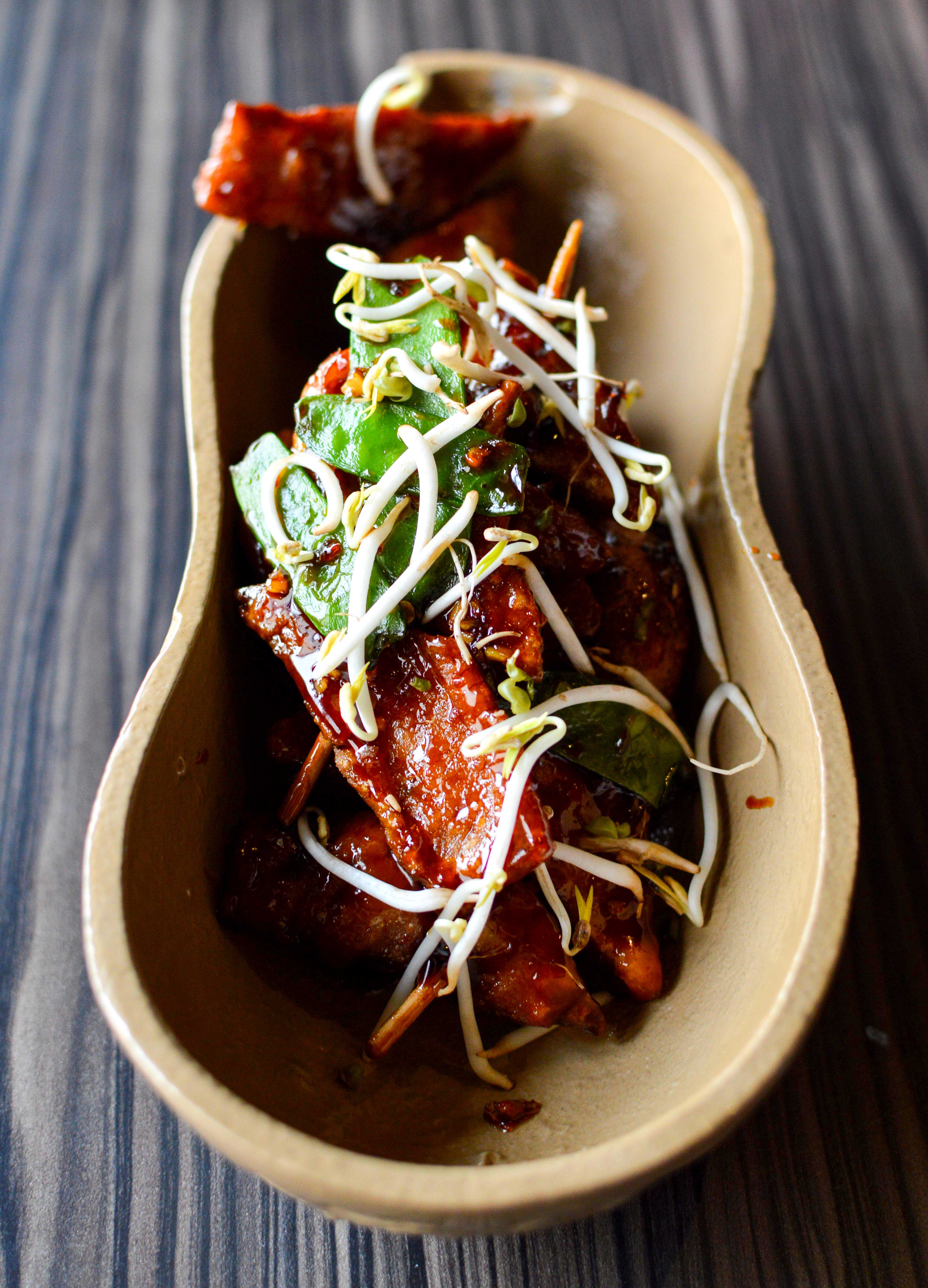 Another extraordinary preparation was the charred Soya wings. Even though I have never liked Soya but this really changed my perspective, perfect, crispy Soya wings and potato wedges served with ample dressing and greens. We also had Korean Chicken which was a decent preparation but had a bit of oil in the crust but the flavors were good enough. The Tummy Chicken Kulfi was not entirely apt for an Asian Restaurant. Really well minced and pickled chicken served as a kulfi on skewers with makhini gravy all over. Although the dish was very unique and interesting, it didn’t fit into the Pan-Asian setting.